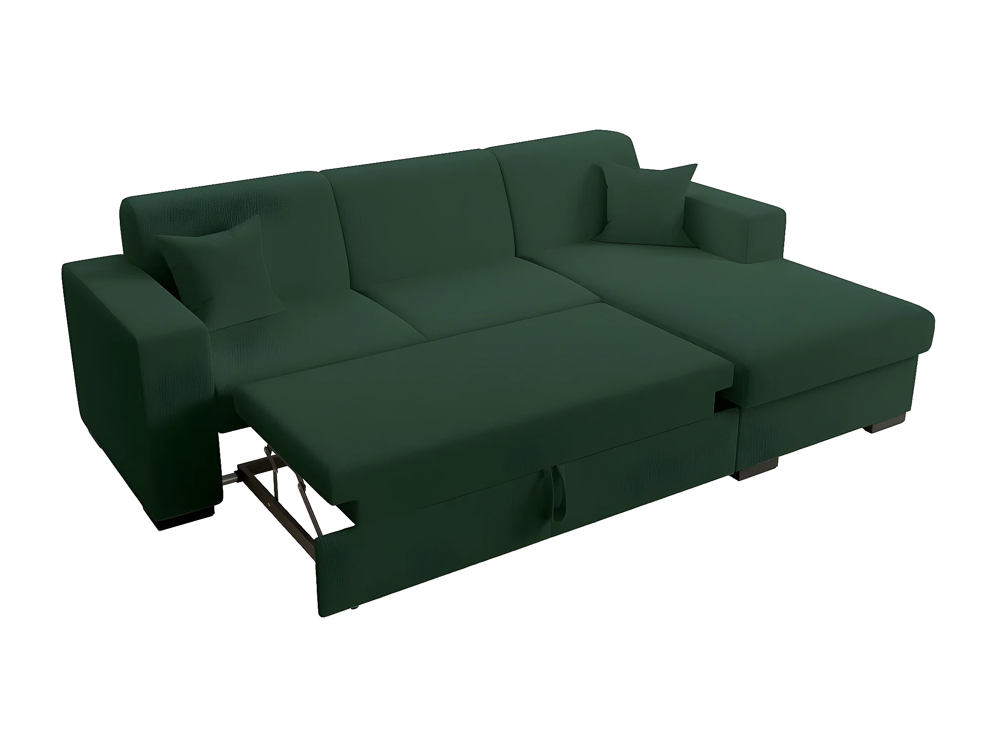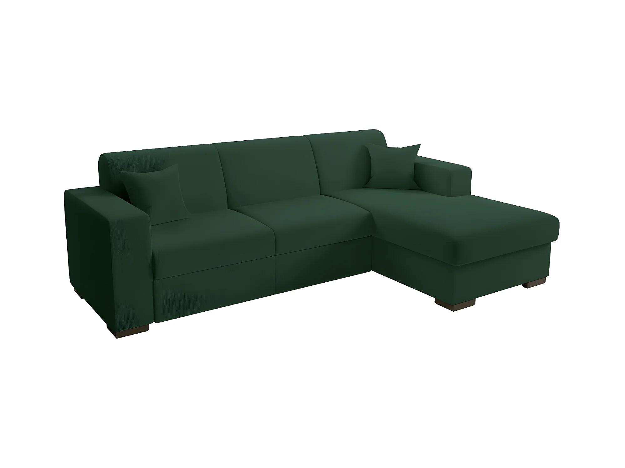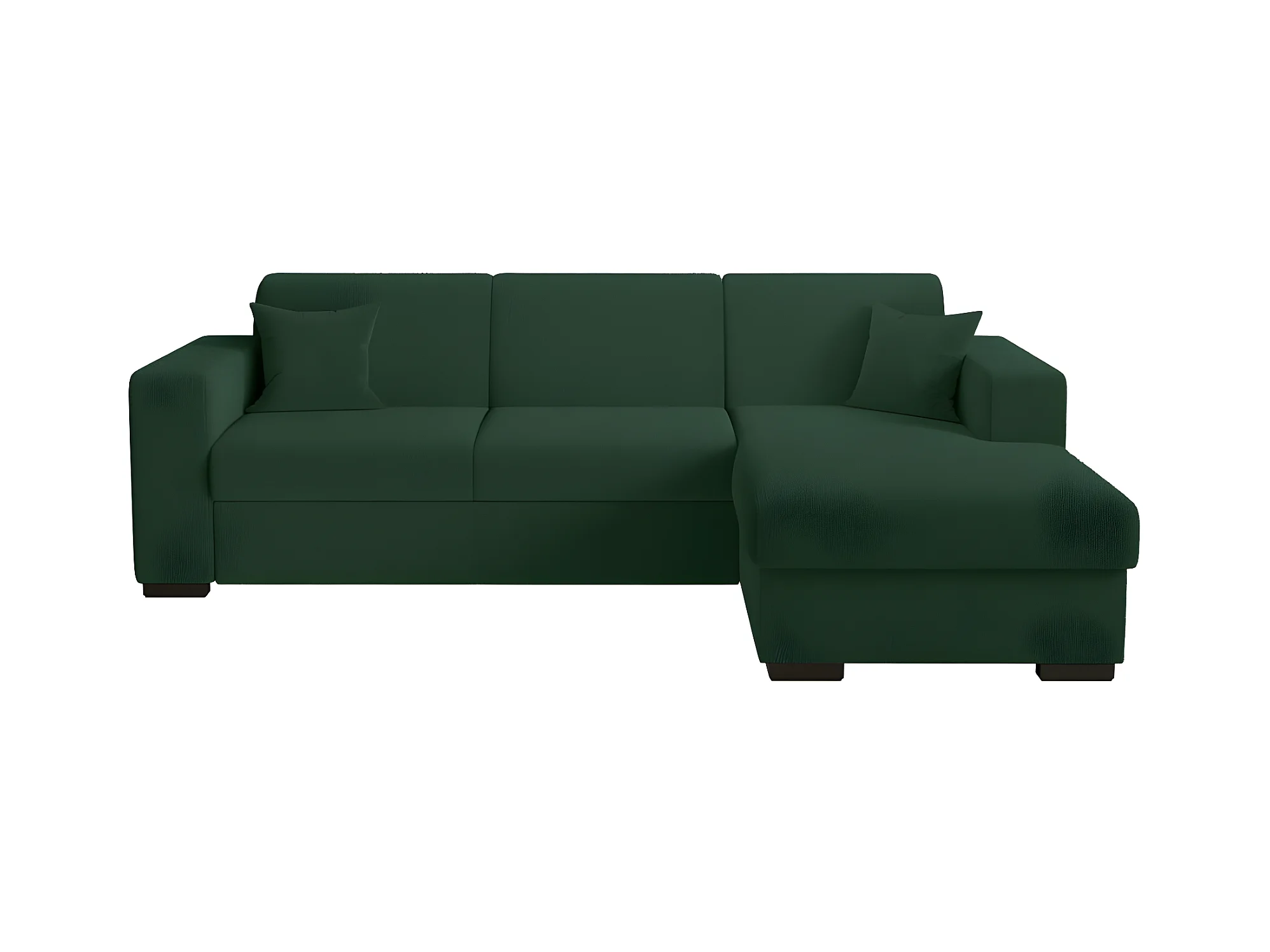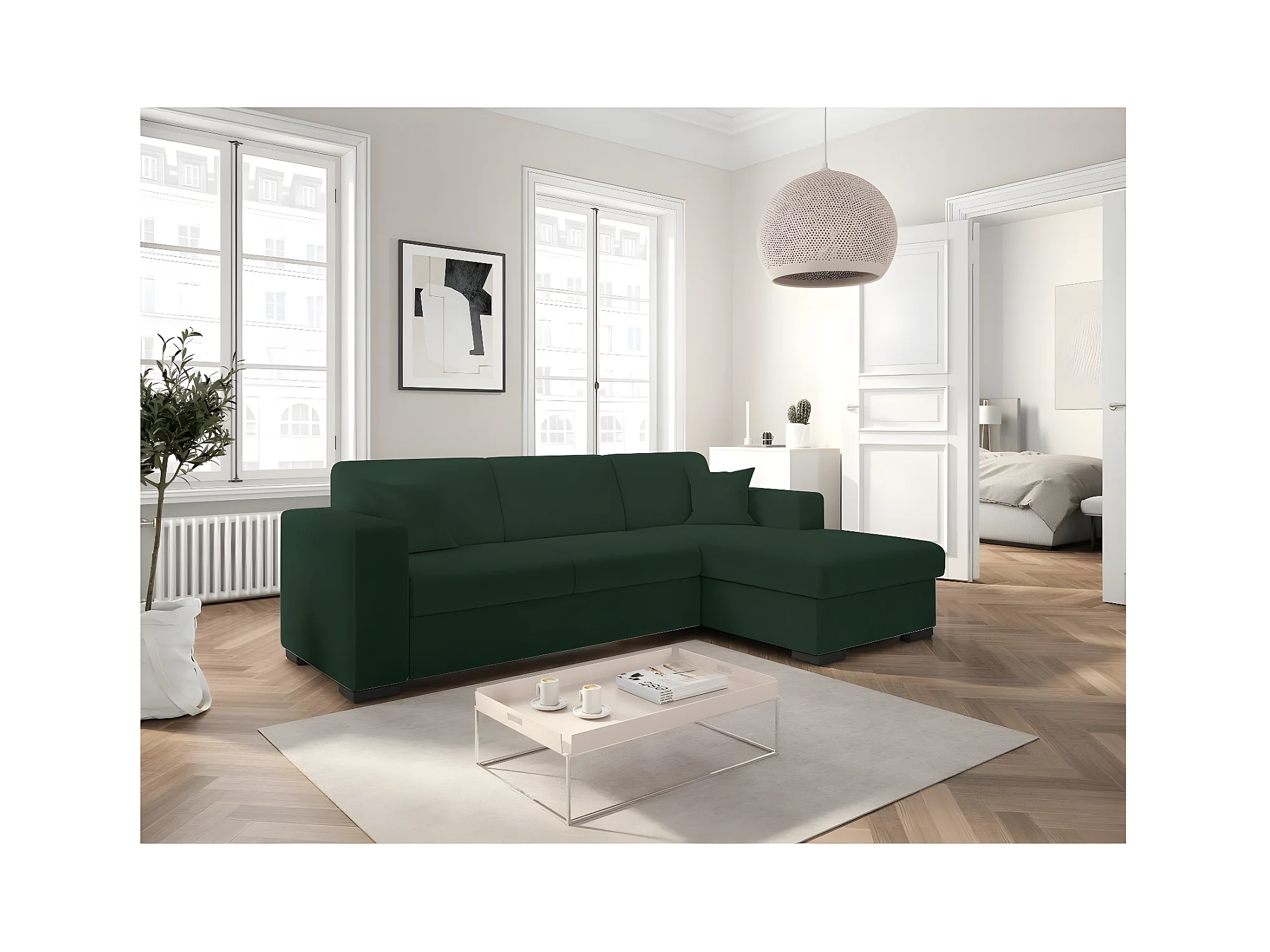 Canapé d'angle droit 4 places Fuji XL convertible avec coffre en tissu bouclette - Vert - L262 x P157 x H83cm - Loungitude