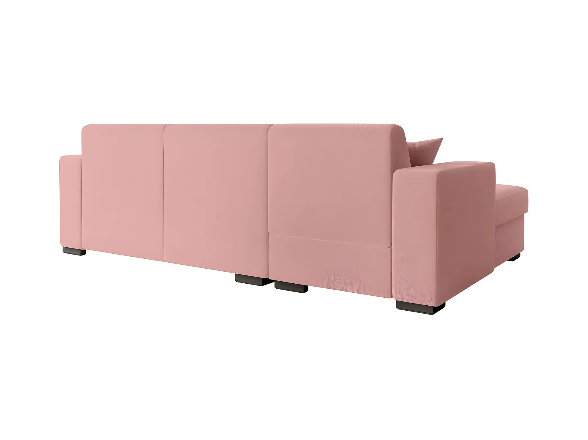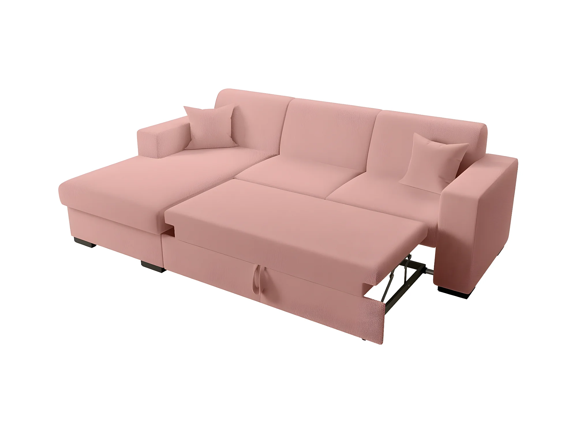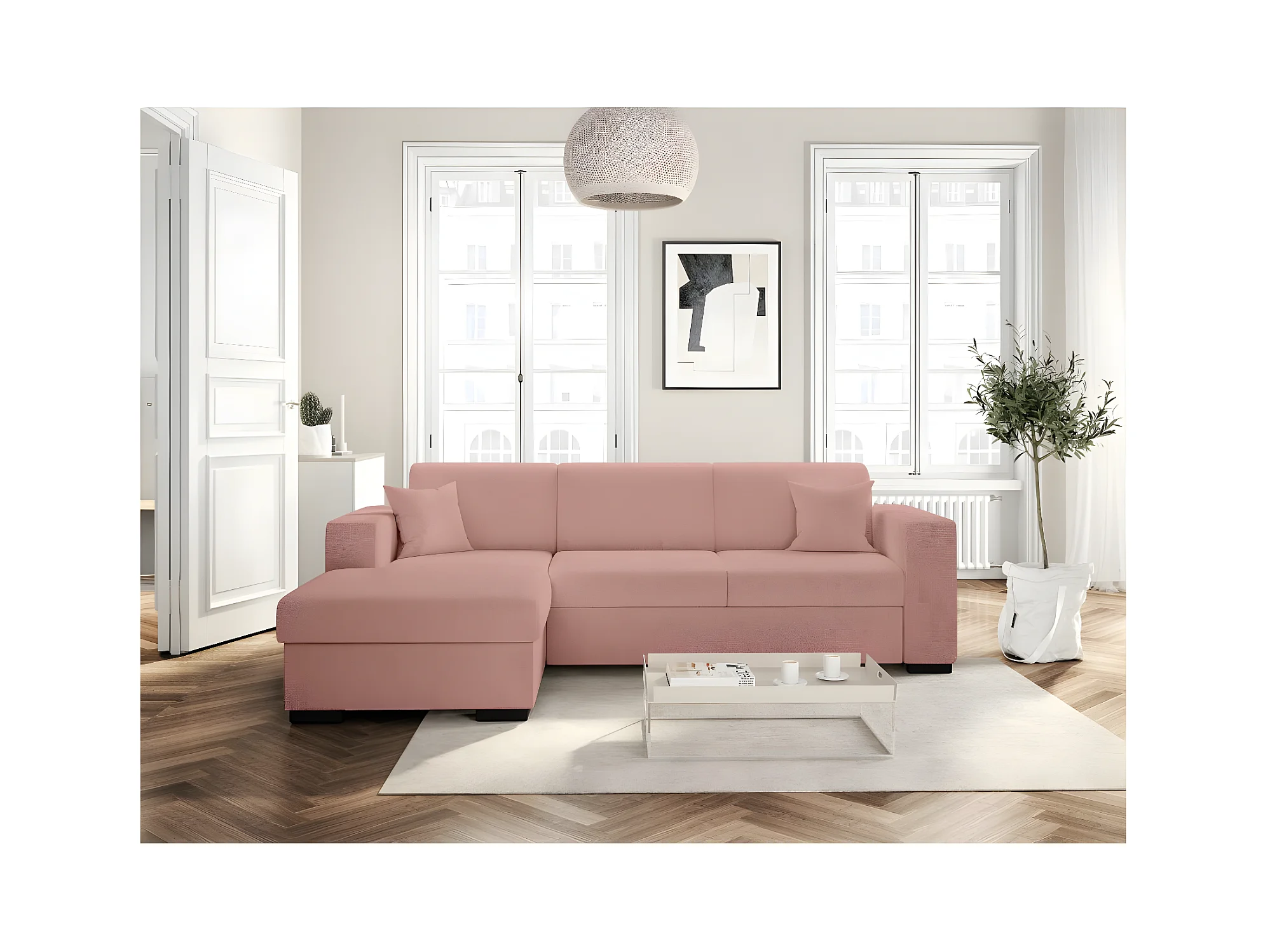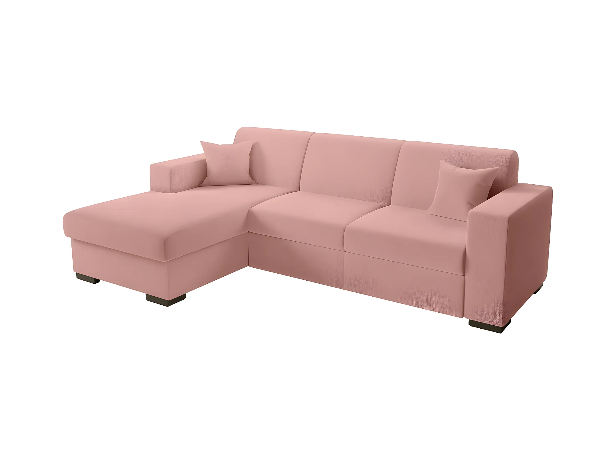 Canapé d'angle gauche 4 places Fuji XL convertible avec coffre en tissu bouclette - Rose - L262 x P157 x H83cm - Loungitude