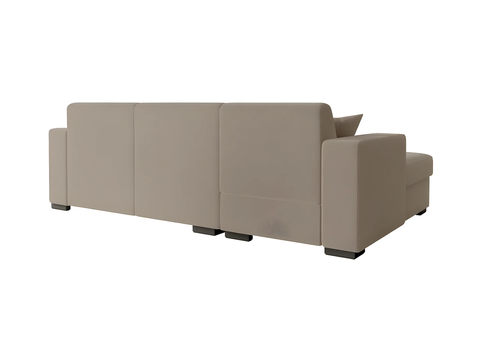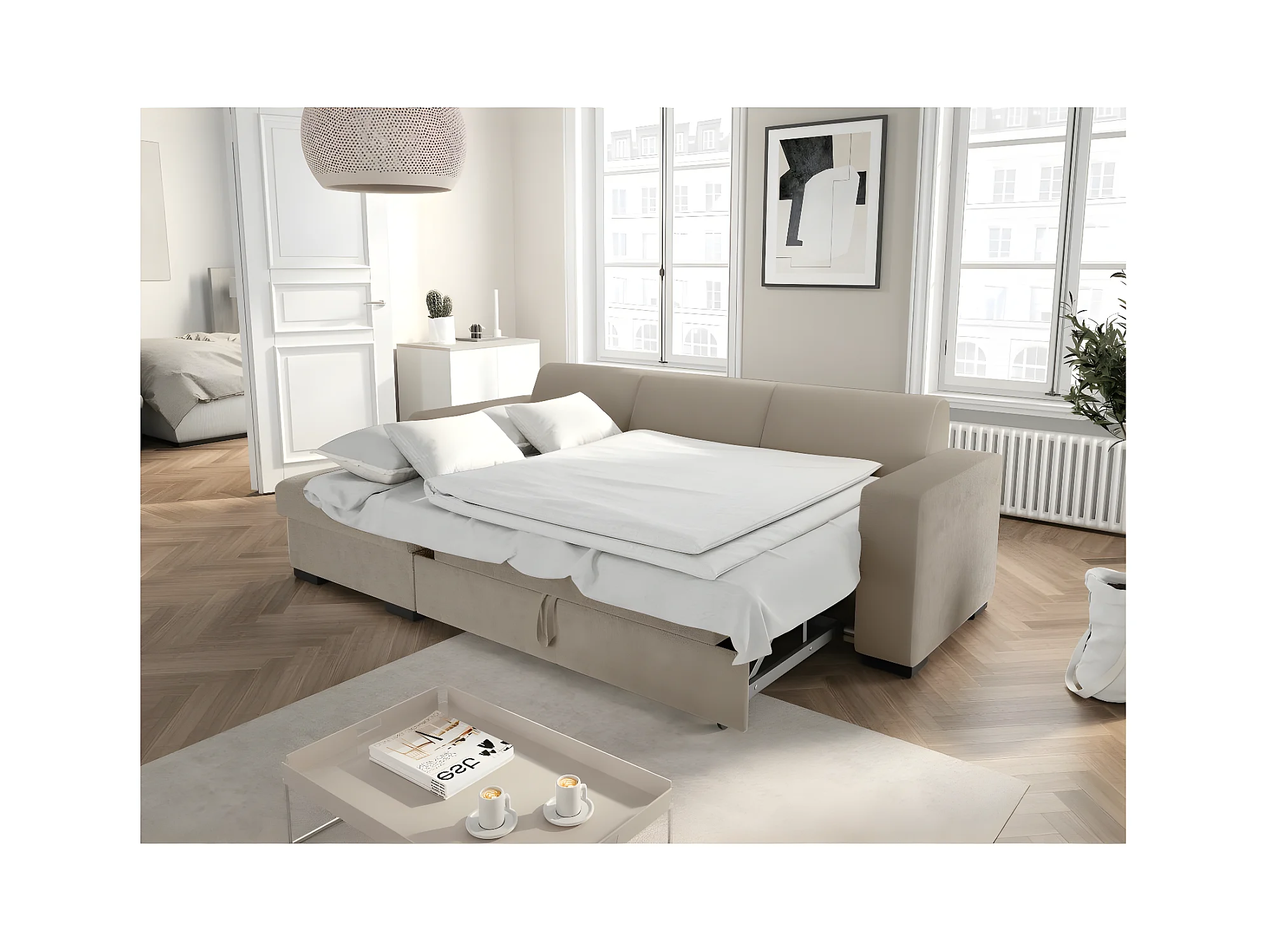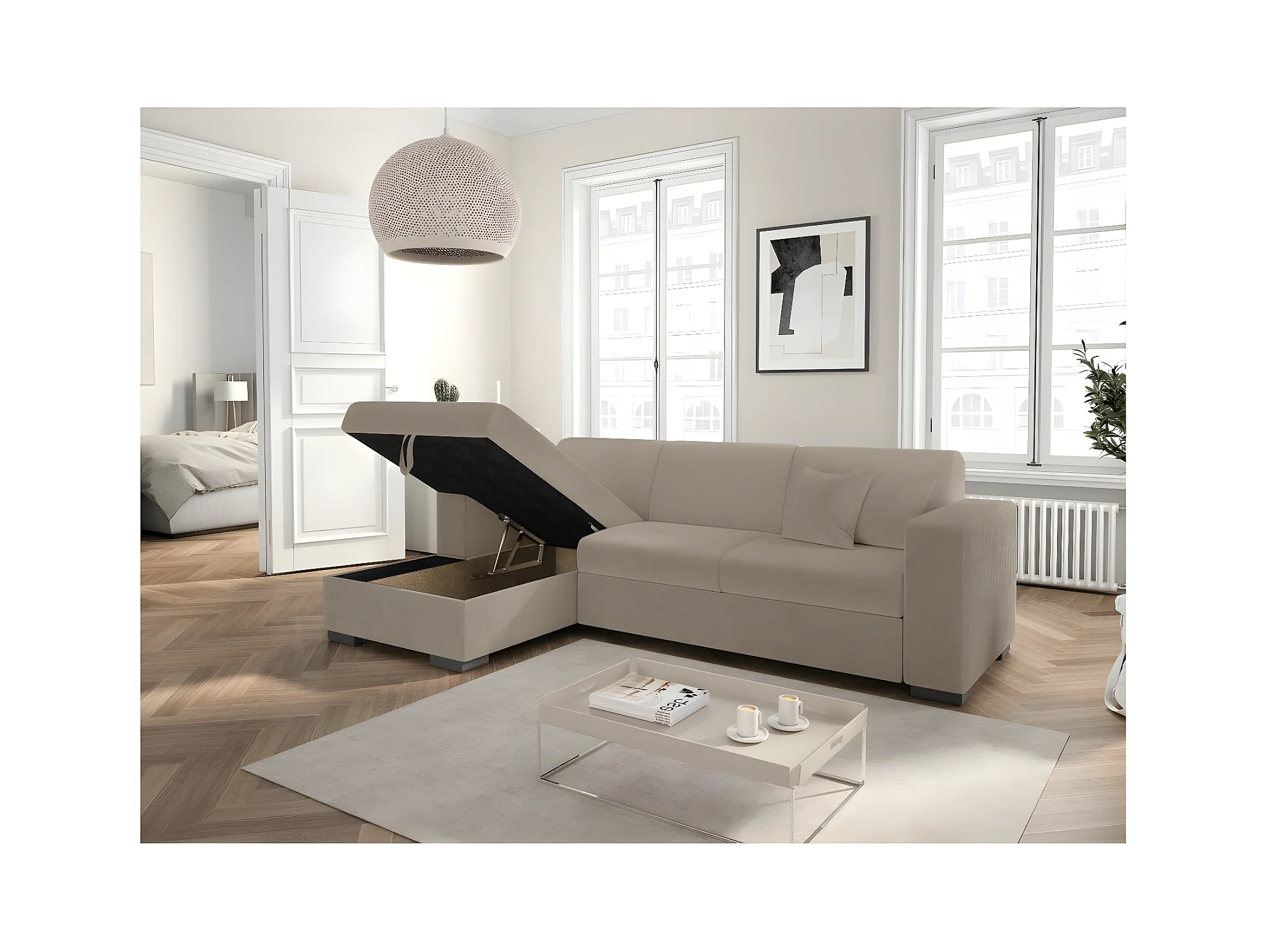 Canapé d'angle gauche 4 places Fuji XL convertible avec coffre en tissu bouclette - Taupe - L262 x P157 x H83cm - Loungitude