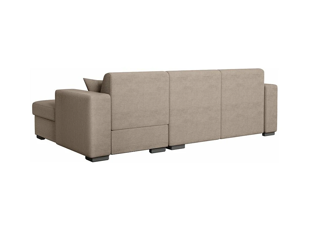 Canapé d'angle droit 4 places Fuji XL convertible avec coffre en velours côtelé - Taupe - L262 x P157 x H83cm - Loungitude