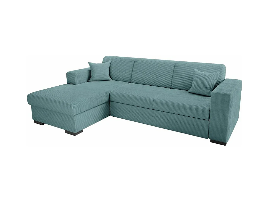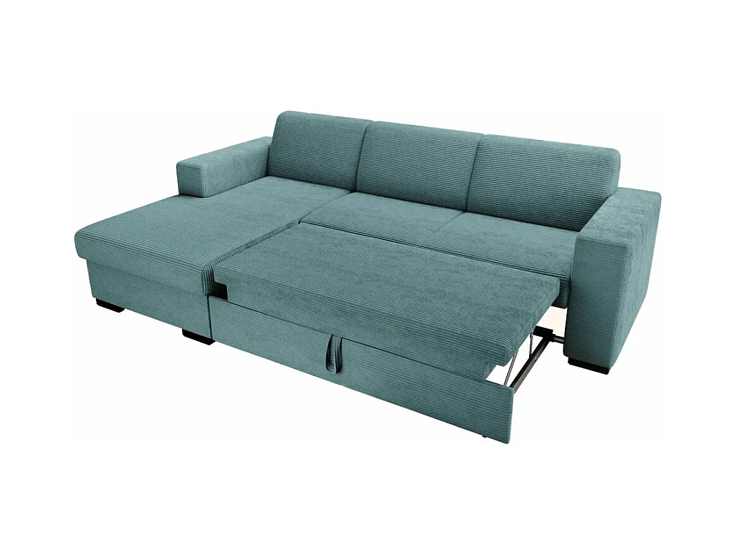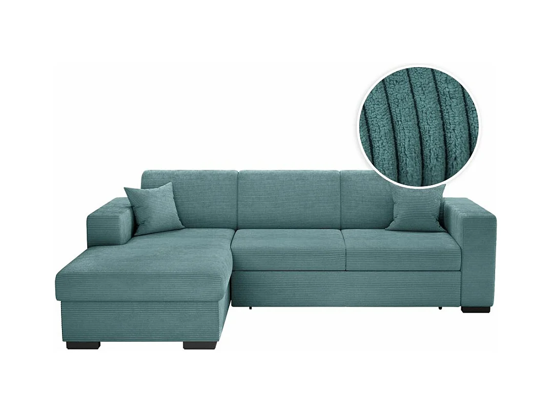 Canapé d'angle gauche 4 places Fuji XL convertible avec coffre en velours côtelé - Bleu clair - L262 x P157 x H83cm - Loungitude