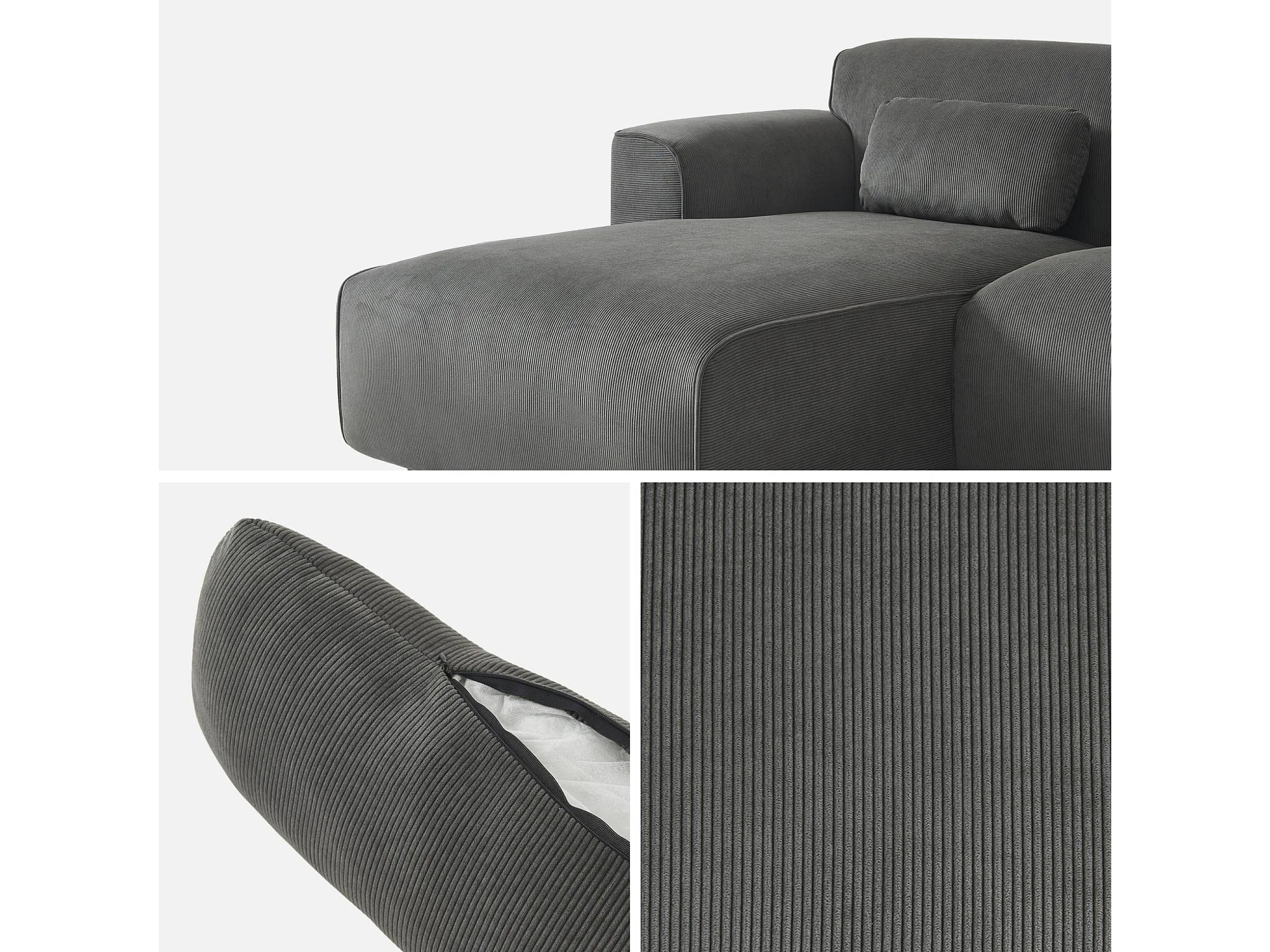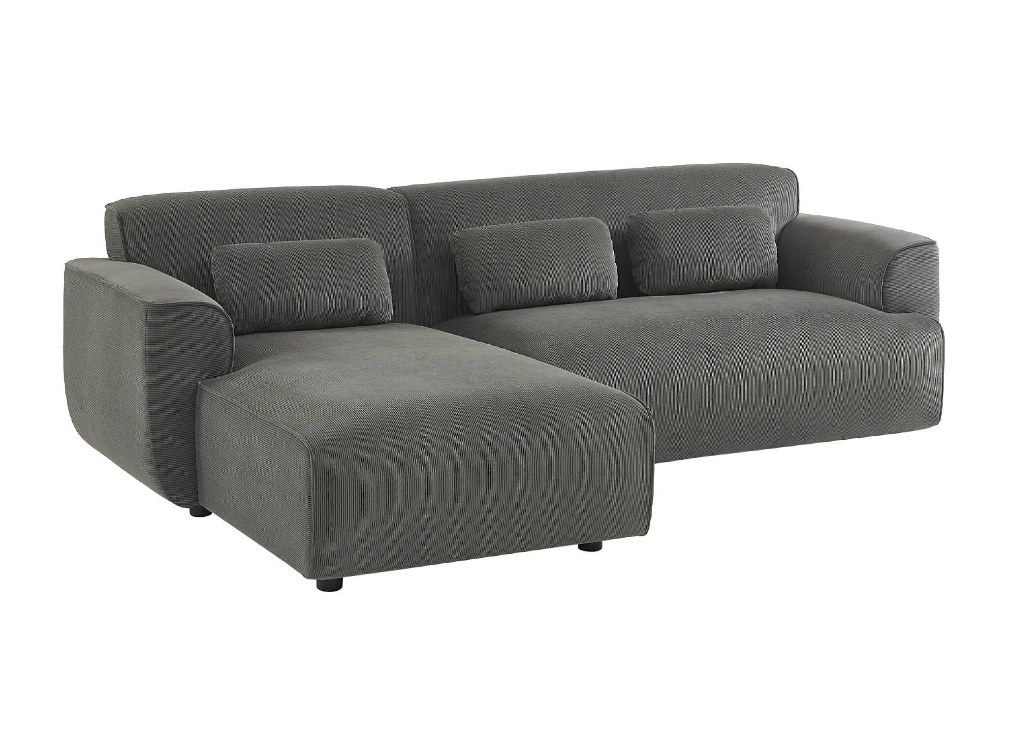 Canapé d'angle gauche. 2 à 3 places. velours côtelé gris. Wallas L 196 x P 151 / 91 / x H 73cm
