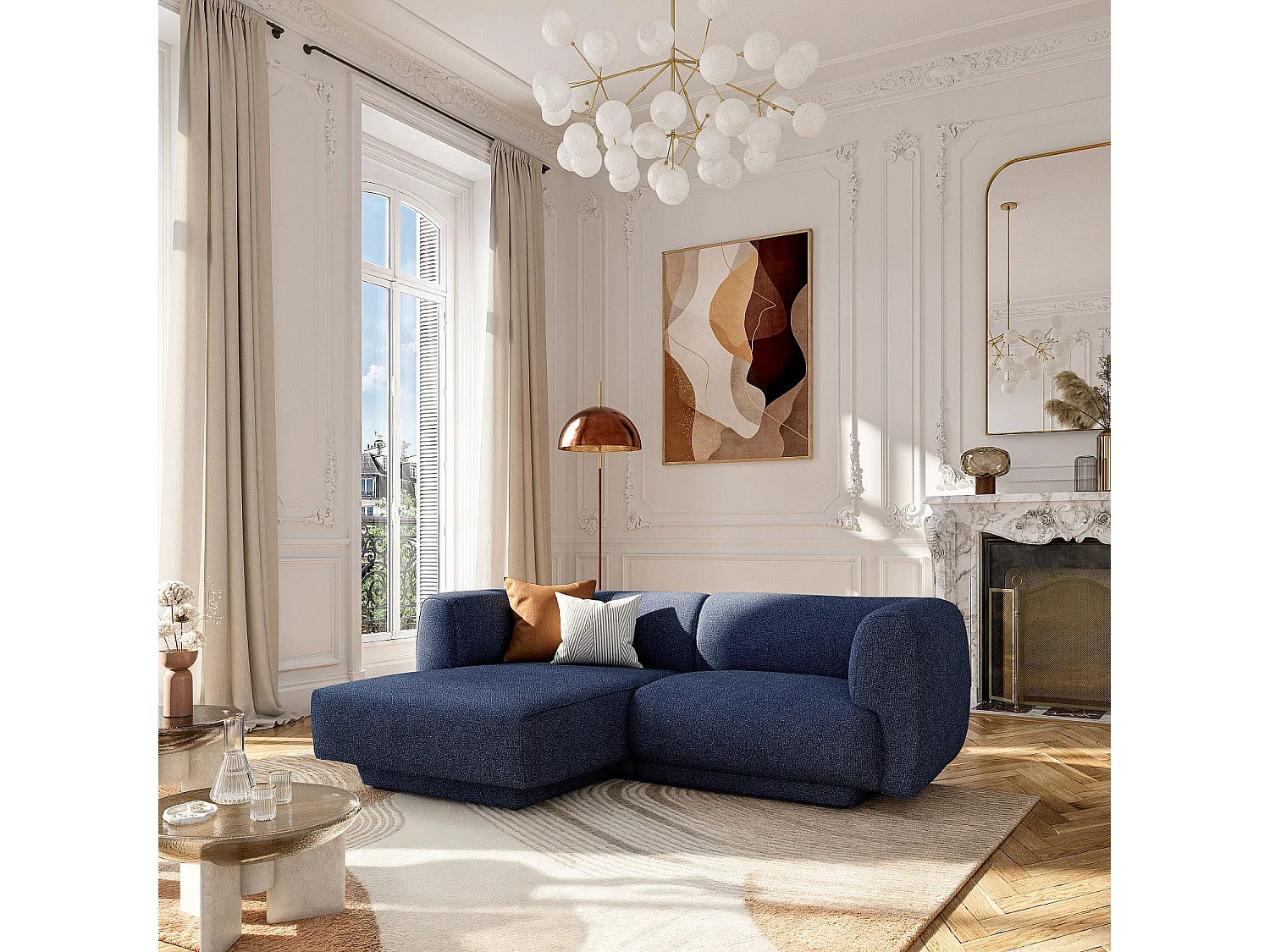 Habitat - Canapé d'angle gauche en tissu texturé - Bleu marine - Design by Federica Francini - Austin