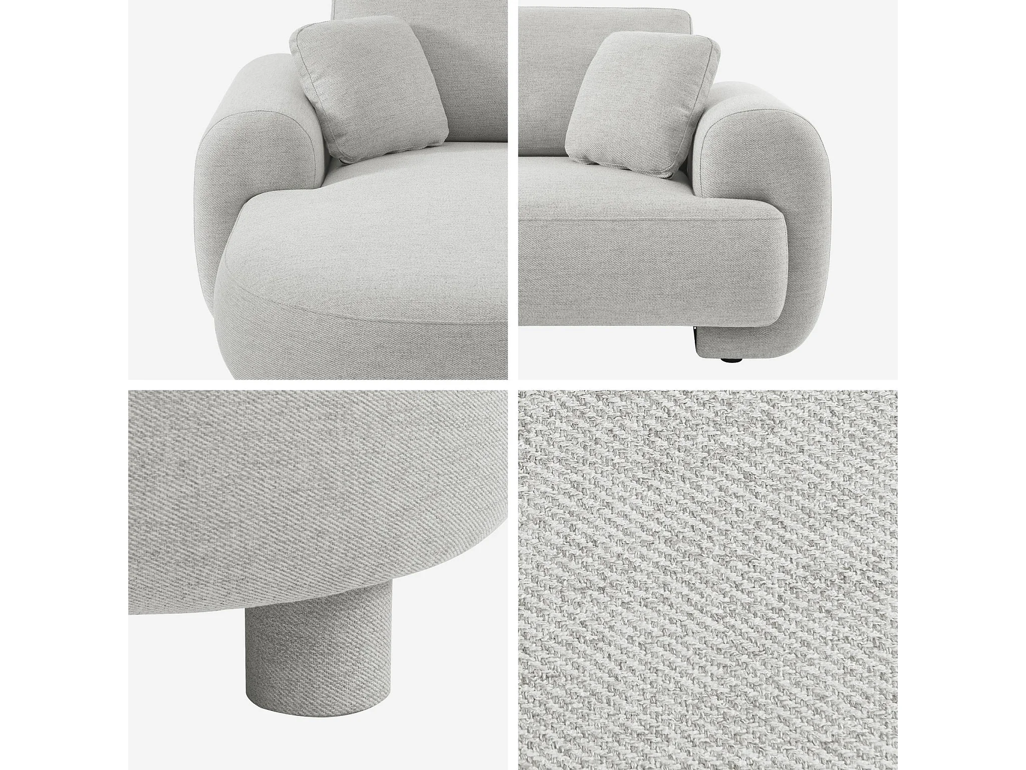 Canapé d'angle gauche 3 places tissu gris clair. pieds ronds L 231 x P 160 / 88 cm - Zenio