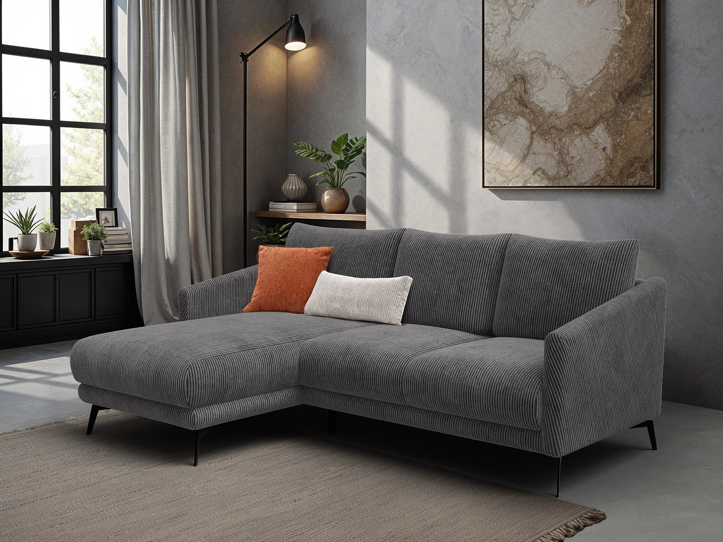 Canapé d'angle gauche 3 places VILT, tissu gris foncé