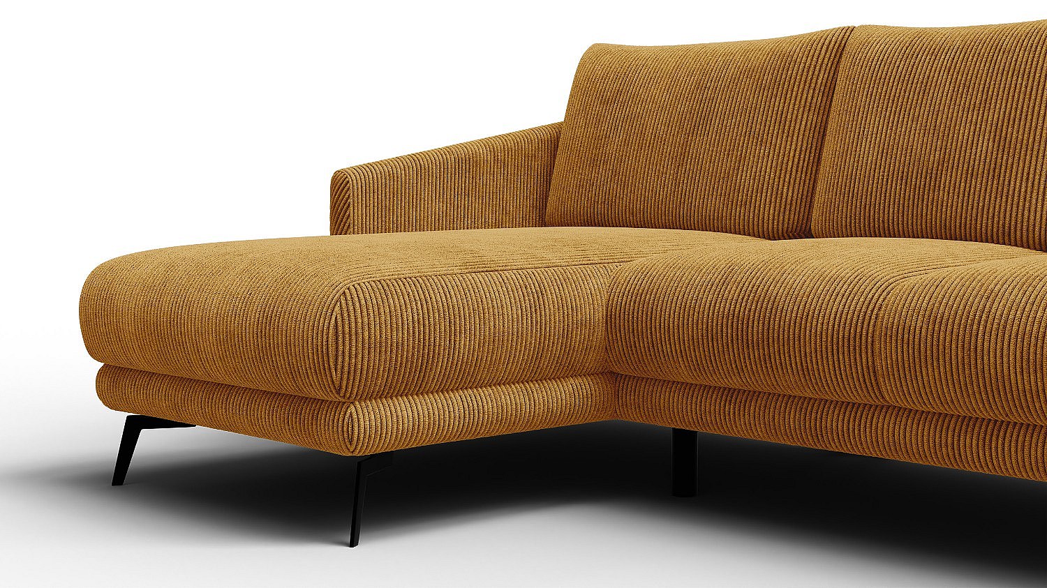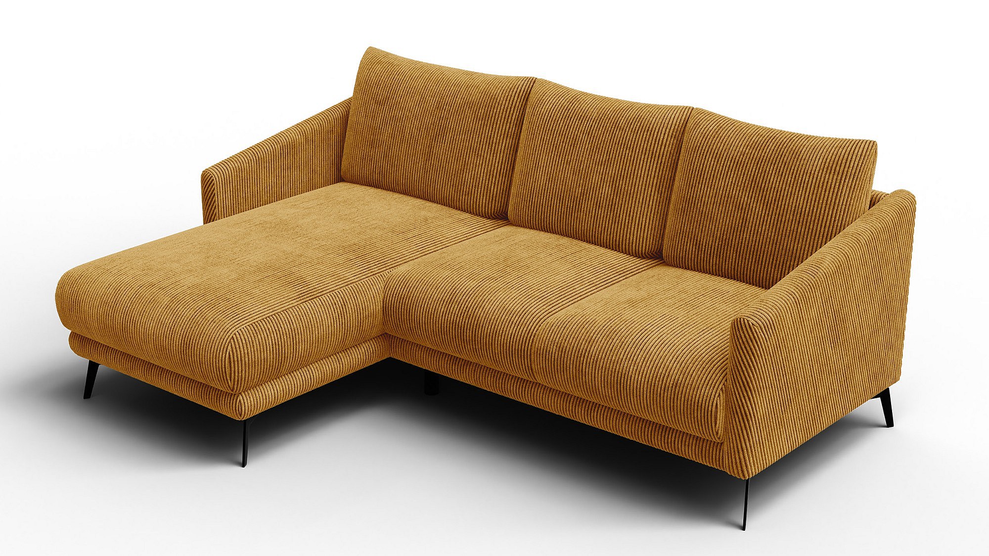 Canapé d'angle gauche 3 places VILT, tissu jaune foncé