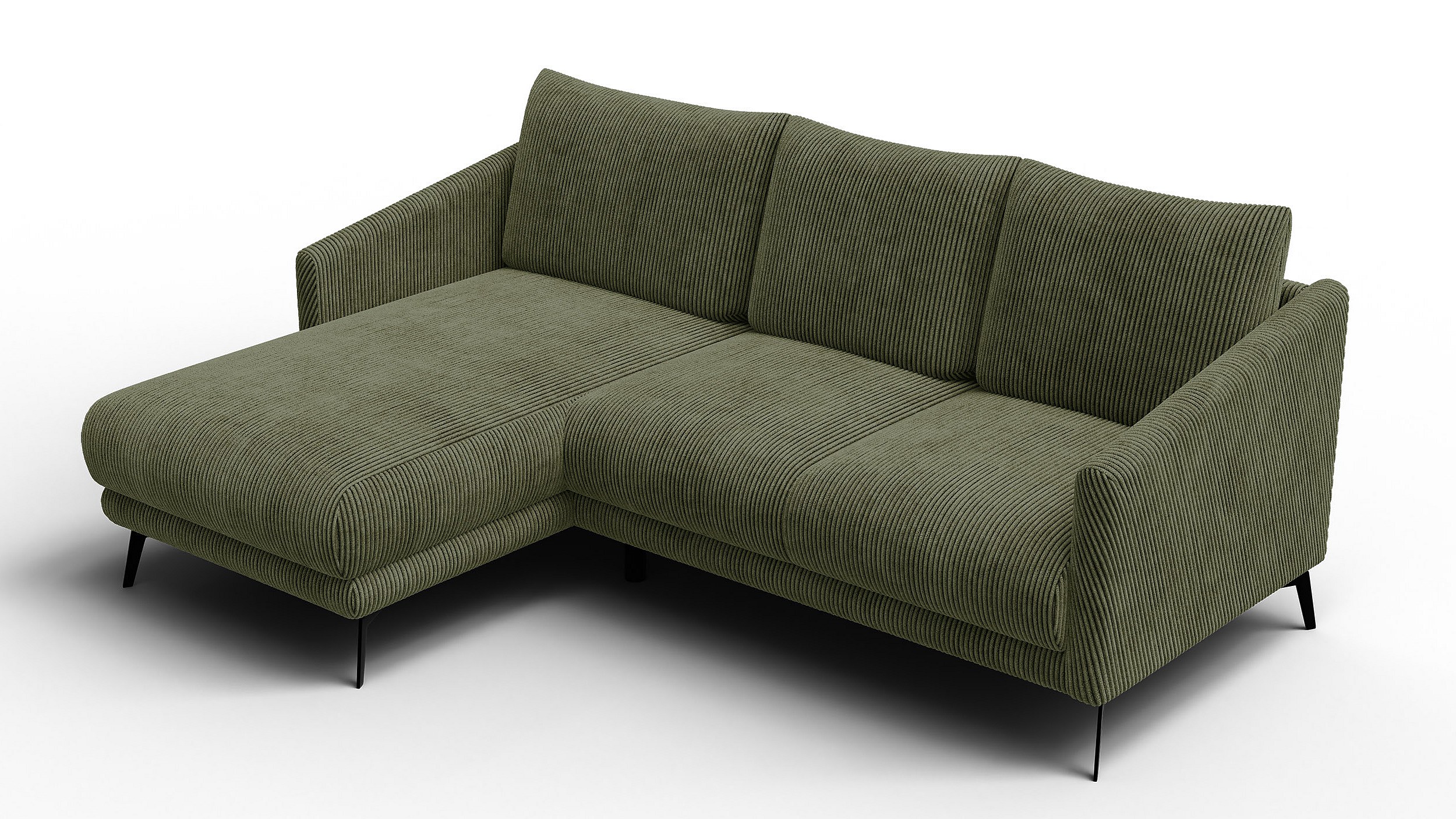 Canapé d'angle gauche 3 places VILT, tissu olive