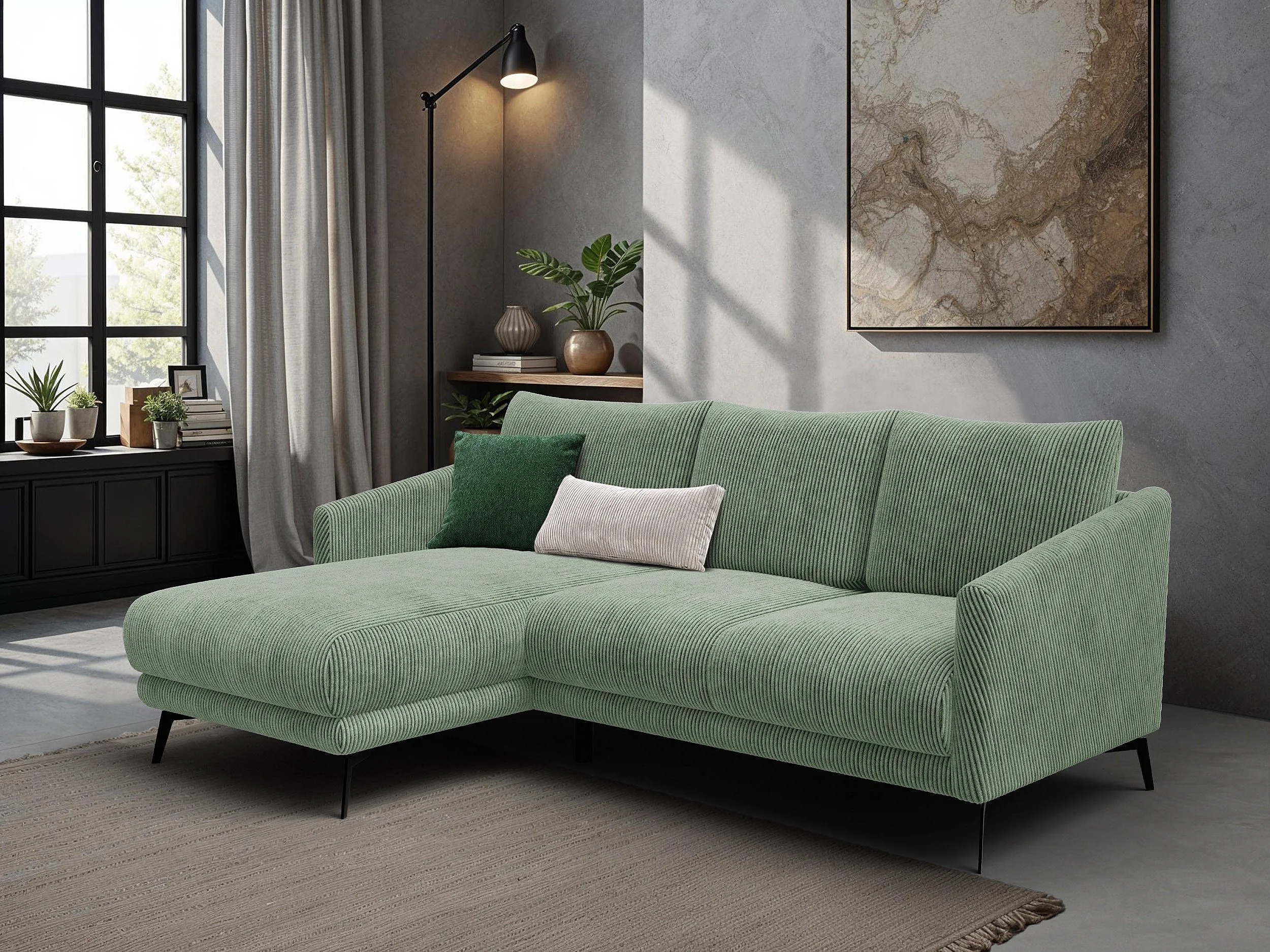 Canapé d'angle gauche 3 places VILT, tissu sauge