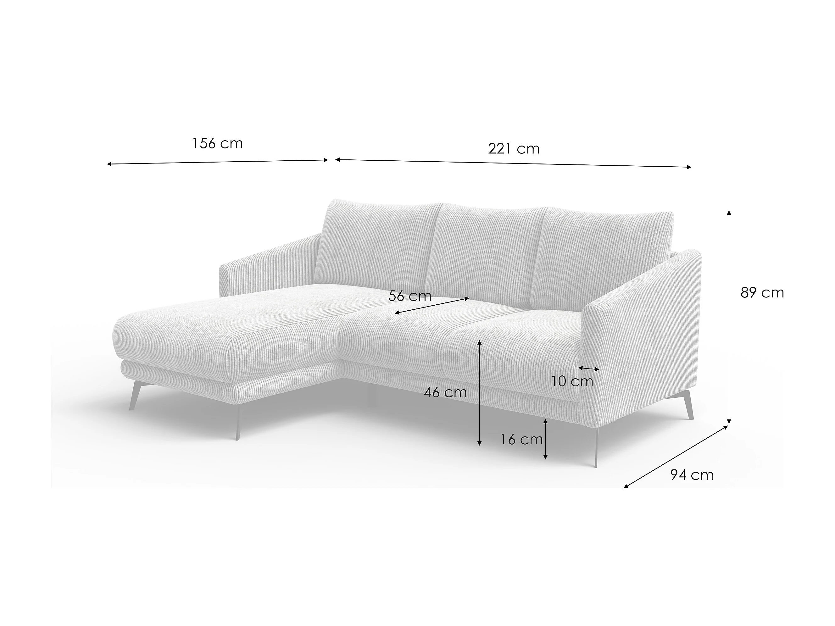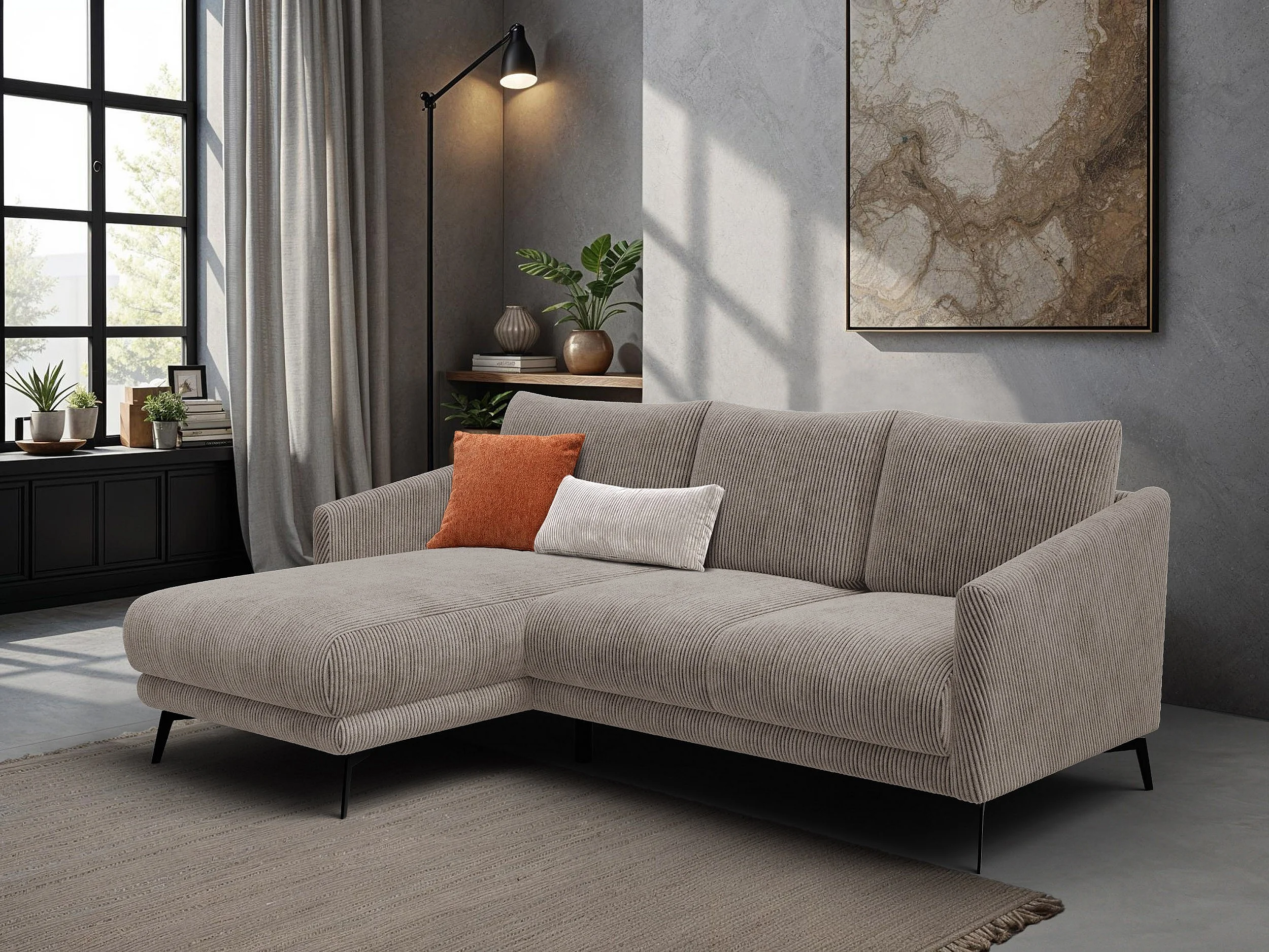 Canapé d'angle gauche 3 places VILT, tissu taupe