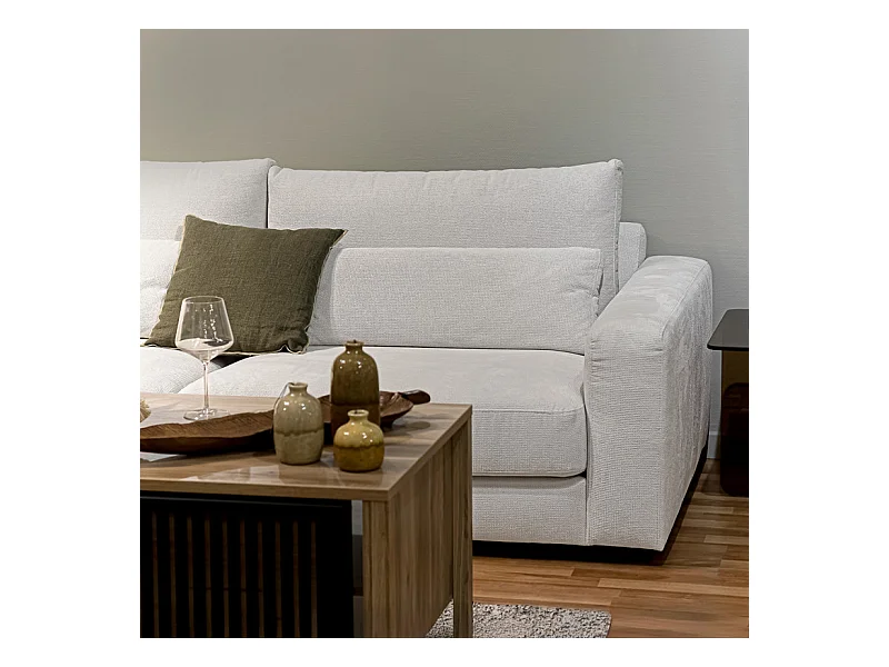 Canapé d'angle gauche 325 cm en tissu microfibre ivoire - CECILE