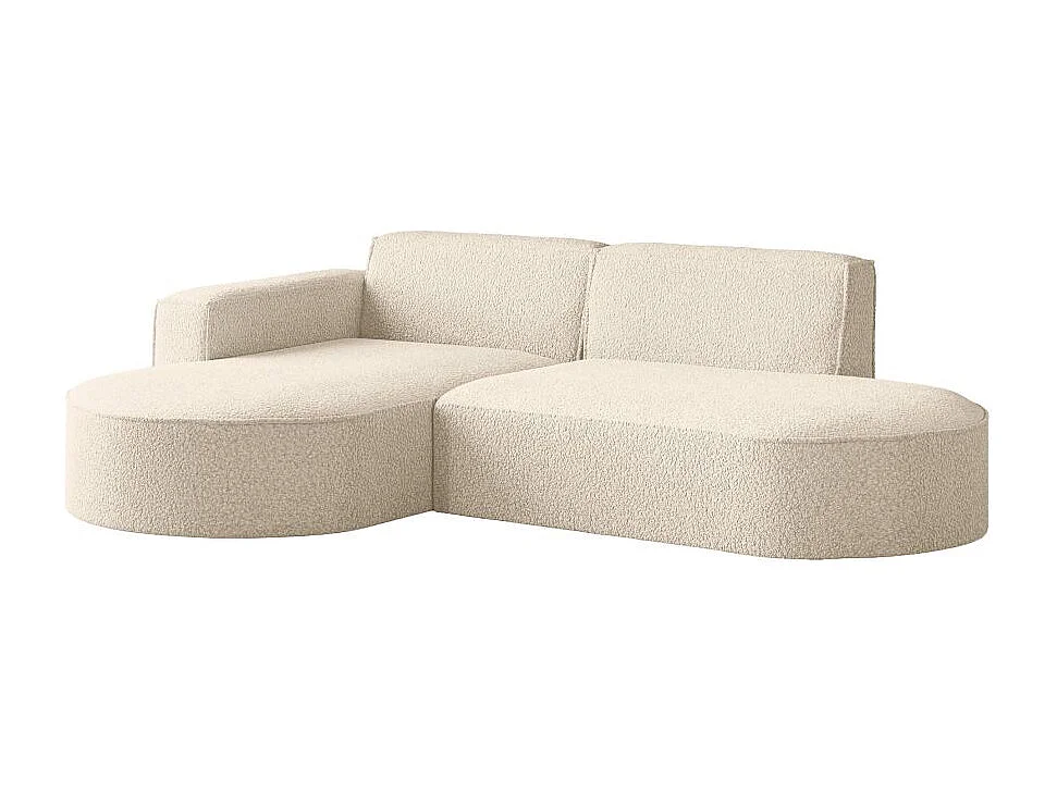 Canapé d'angle gauche 4 places MARLA en tissu bouclette - Blanc