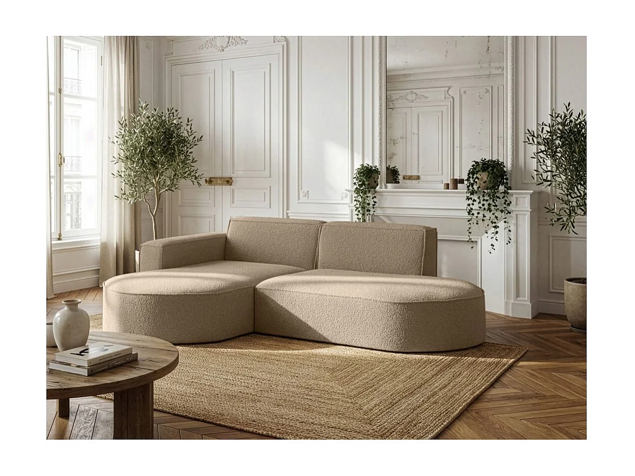 Canapé d'angle gauche 4 places MARLA en tissu bouclette - Taupe