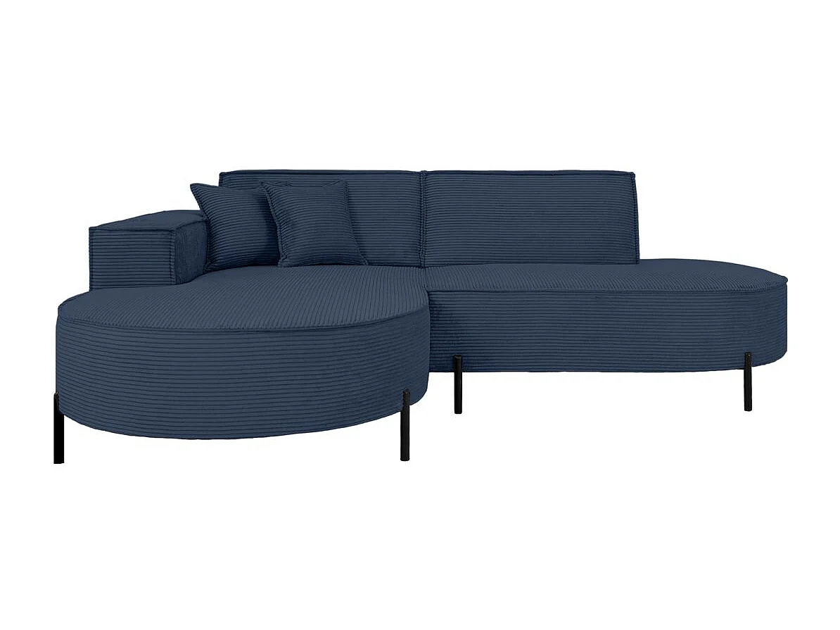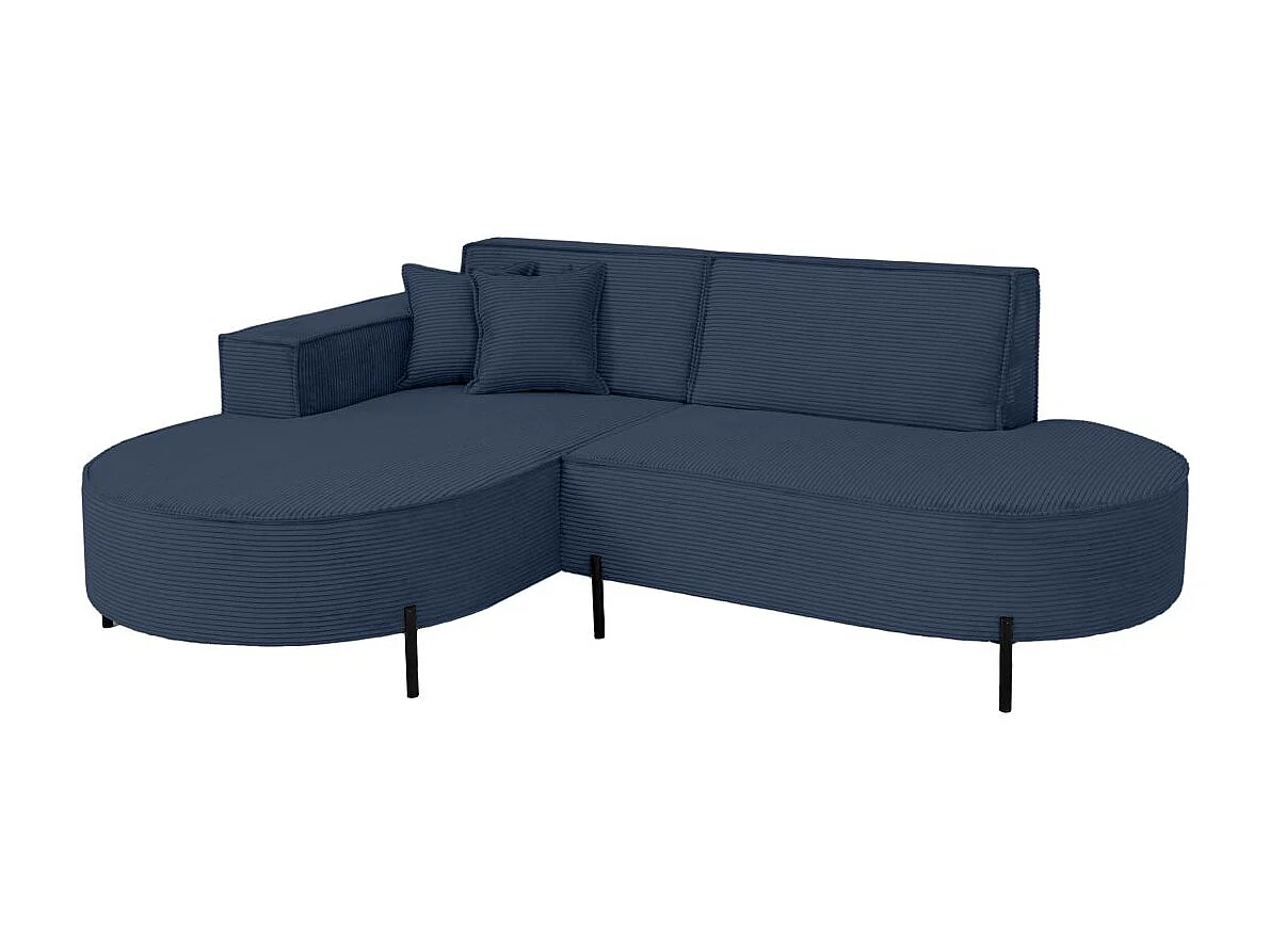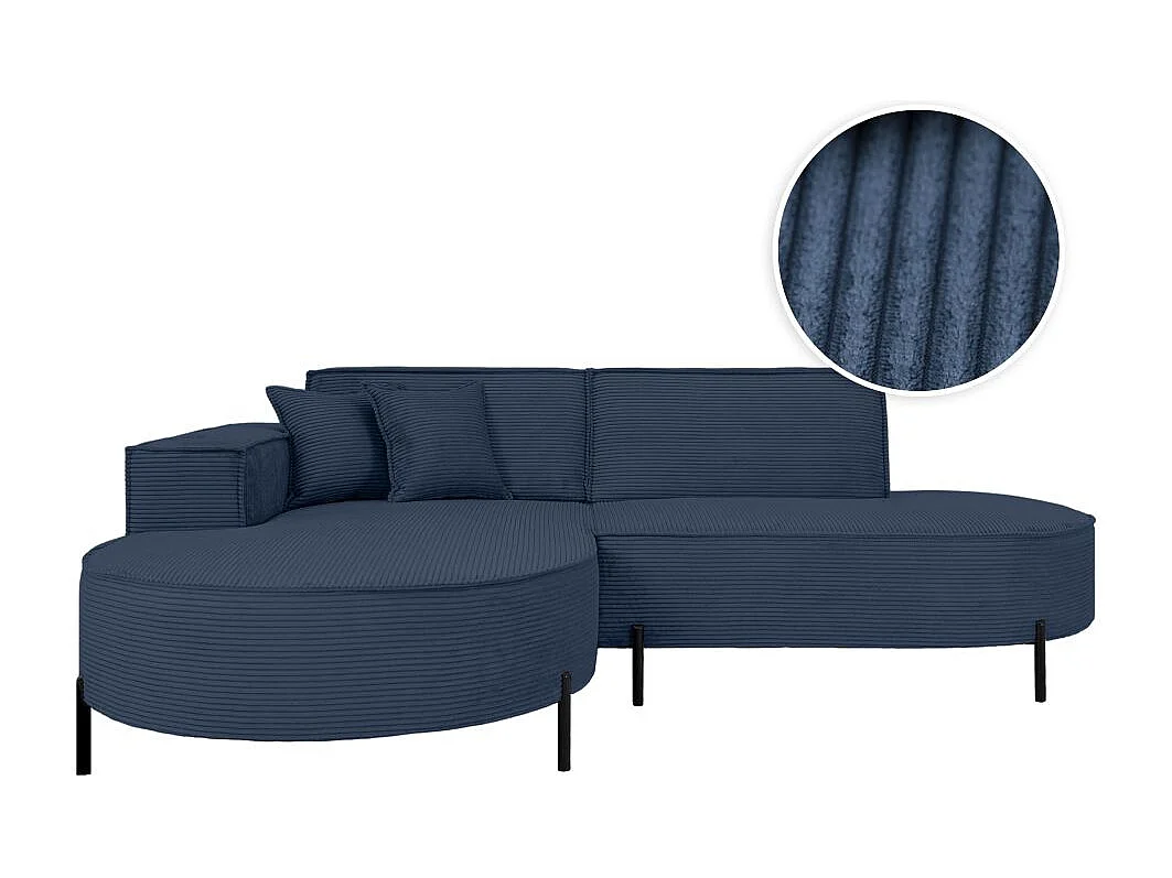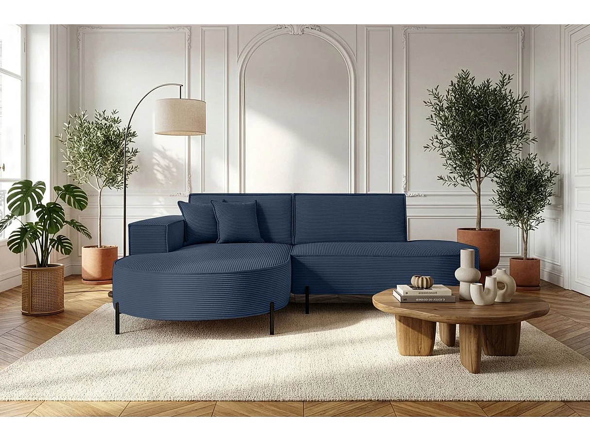 Canapé d'angle gauche 4 places MARLON en velours côtelé - Bleu foncé