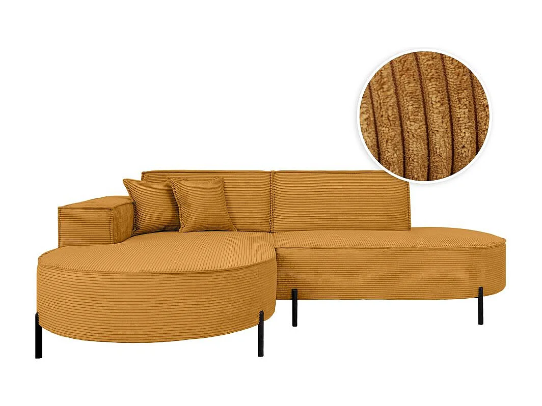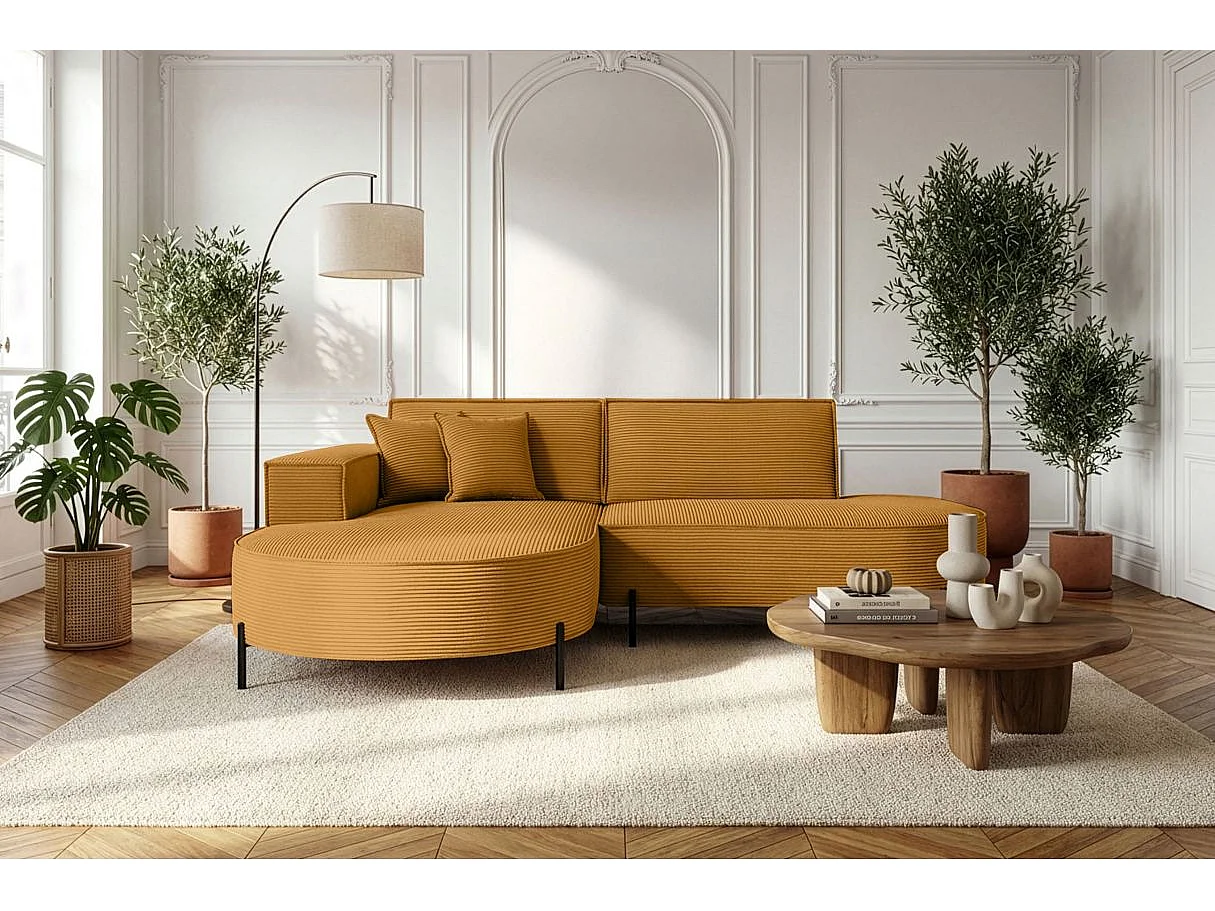 Canapé d'angle gauche 4 places MARLON en velours côtelé - Jaune