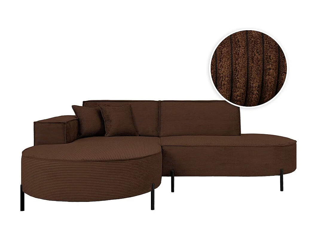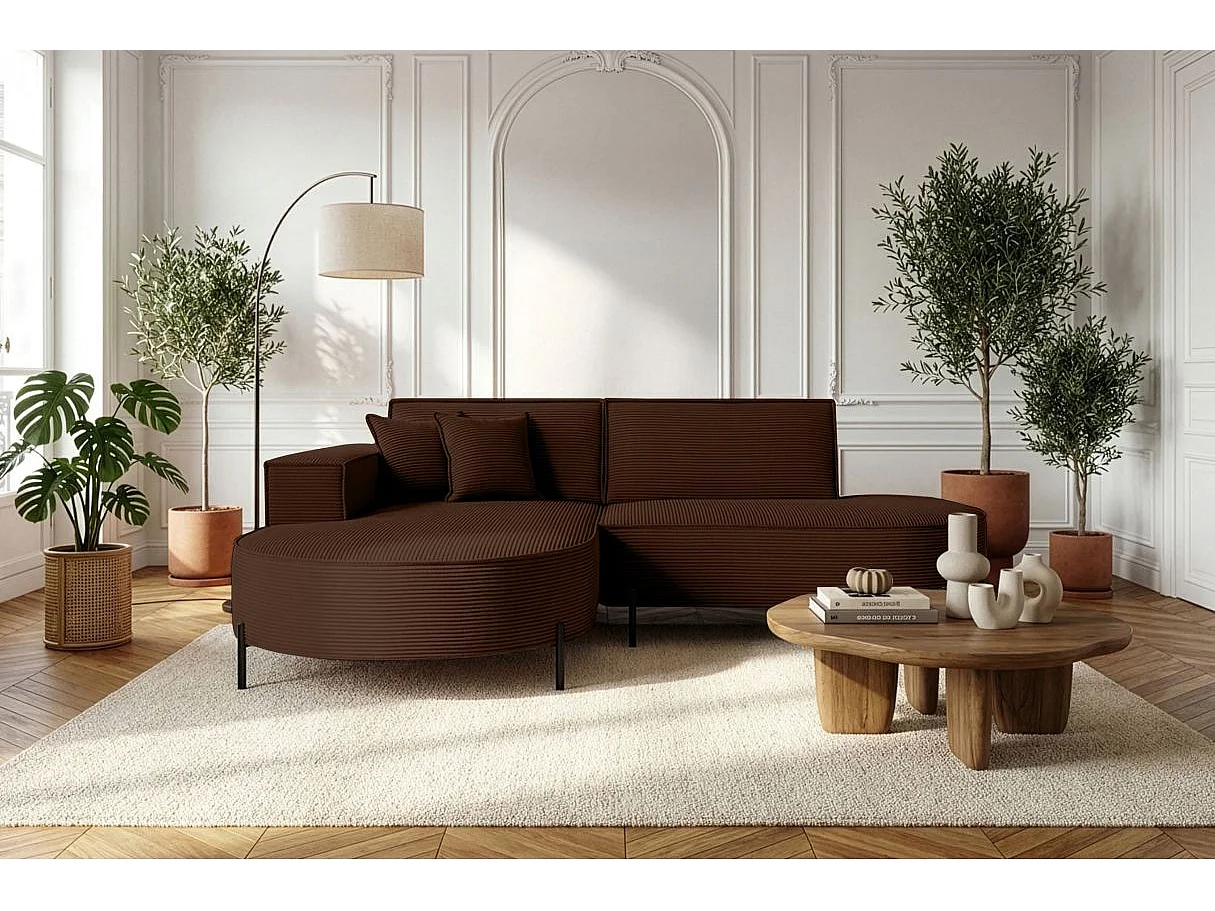 Canapé d'angle gauche 4 places MARLON en velours côtelé - Marron
