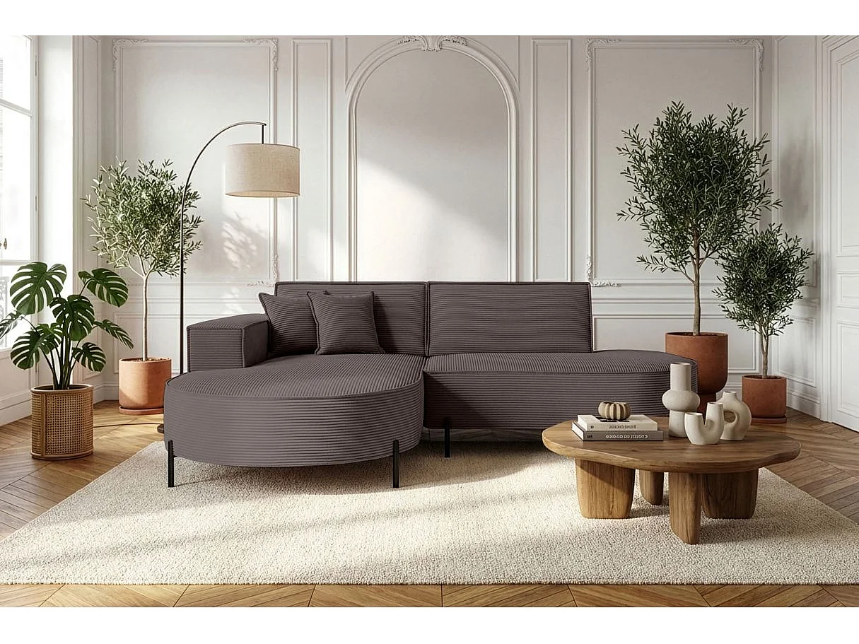 Canapé d'angle gauche 4 places MARLON en velours côtelé - Marron glacé