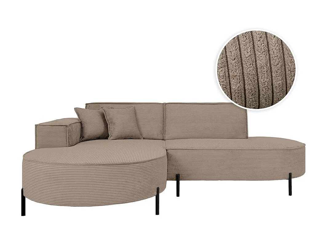 Canapé d'angle gauche 4 places MARLON en velours côtelé - Taupe