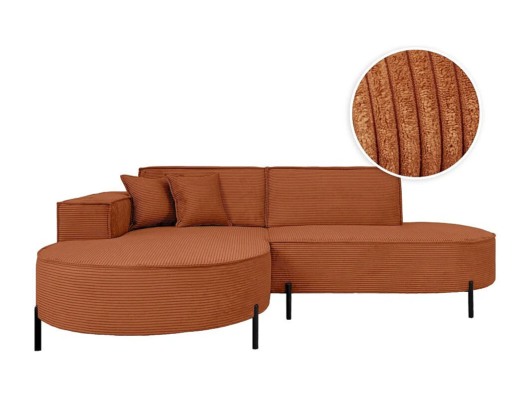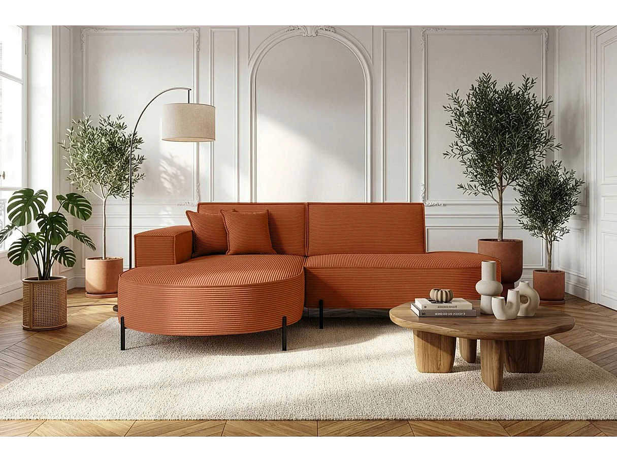 Canapé d'angle gauche 4 places MARLON en velours côtelé - Terracotta
