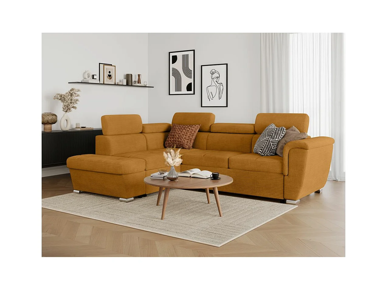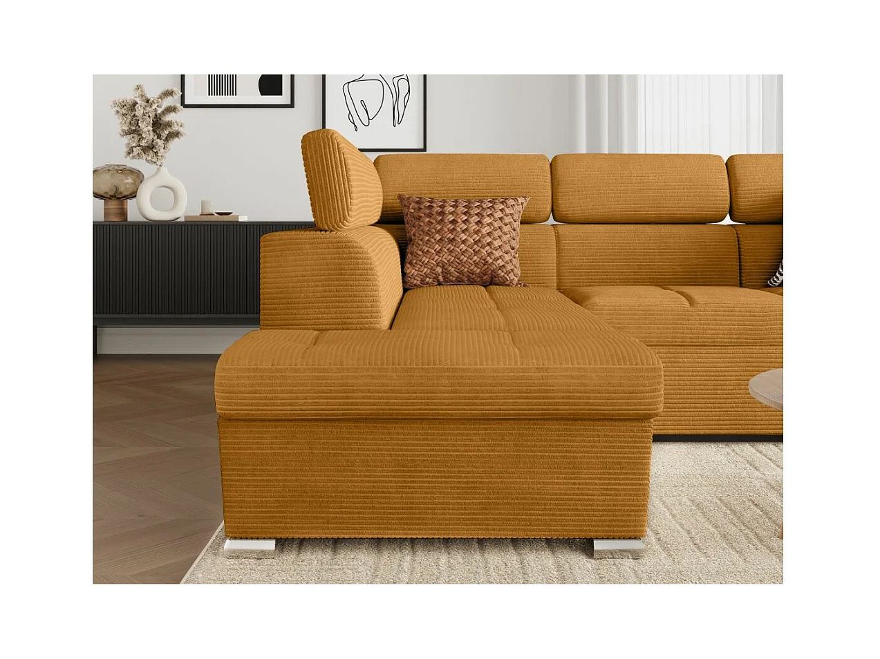 Canapé d'angle gauche 4 places Paola convertible avec coffre en velours côtelé - Jaune - L252 x P188 x H76cm - Loungitude