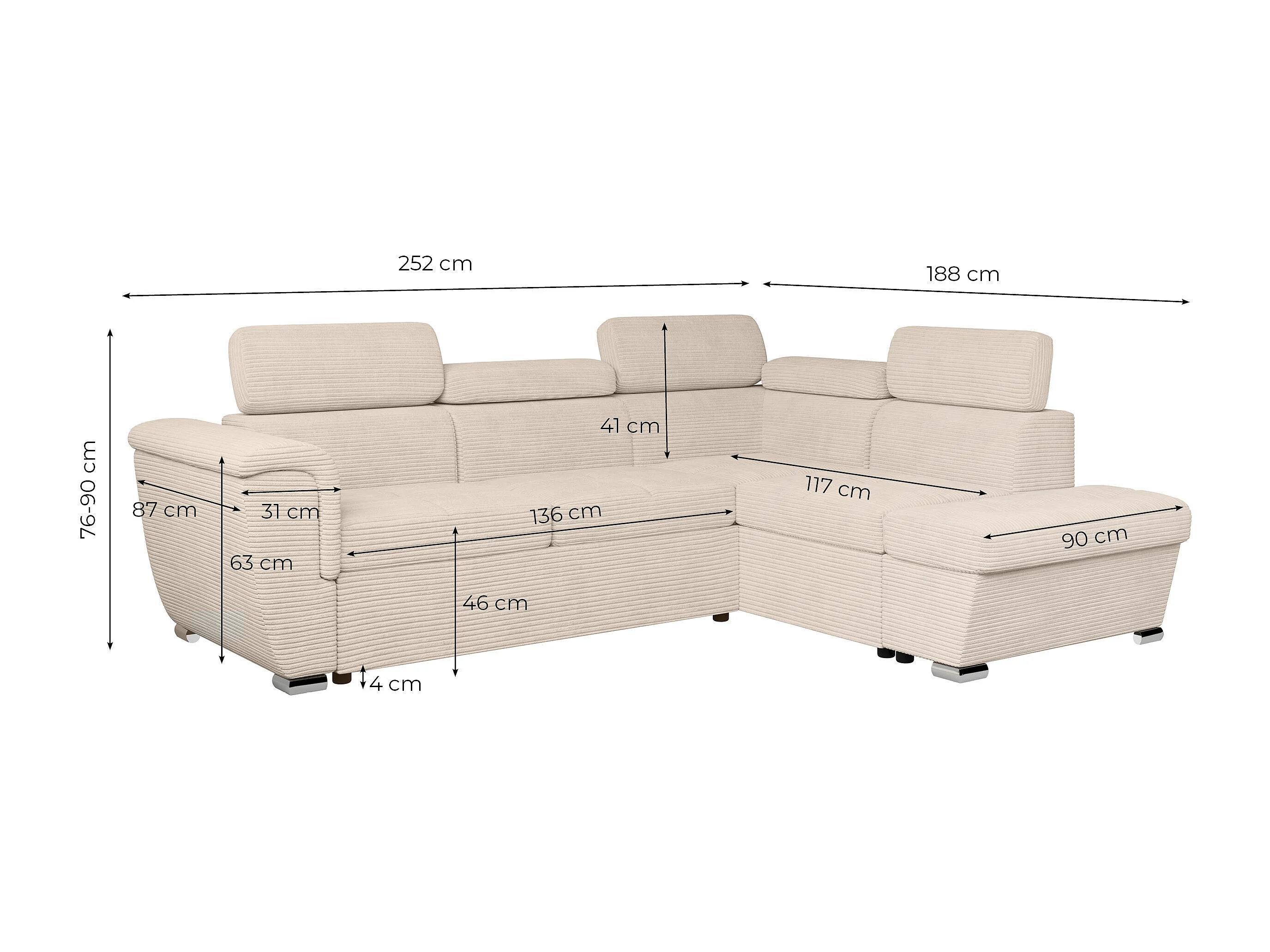 Canapé d'angle gauche 4 places Paola convertible avec coffre en velours côtelé - Rose - L252 x P188 x H76cm - Loungitude