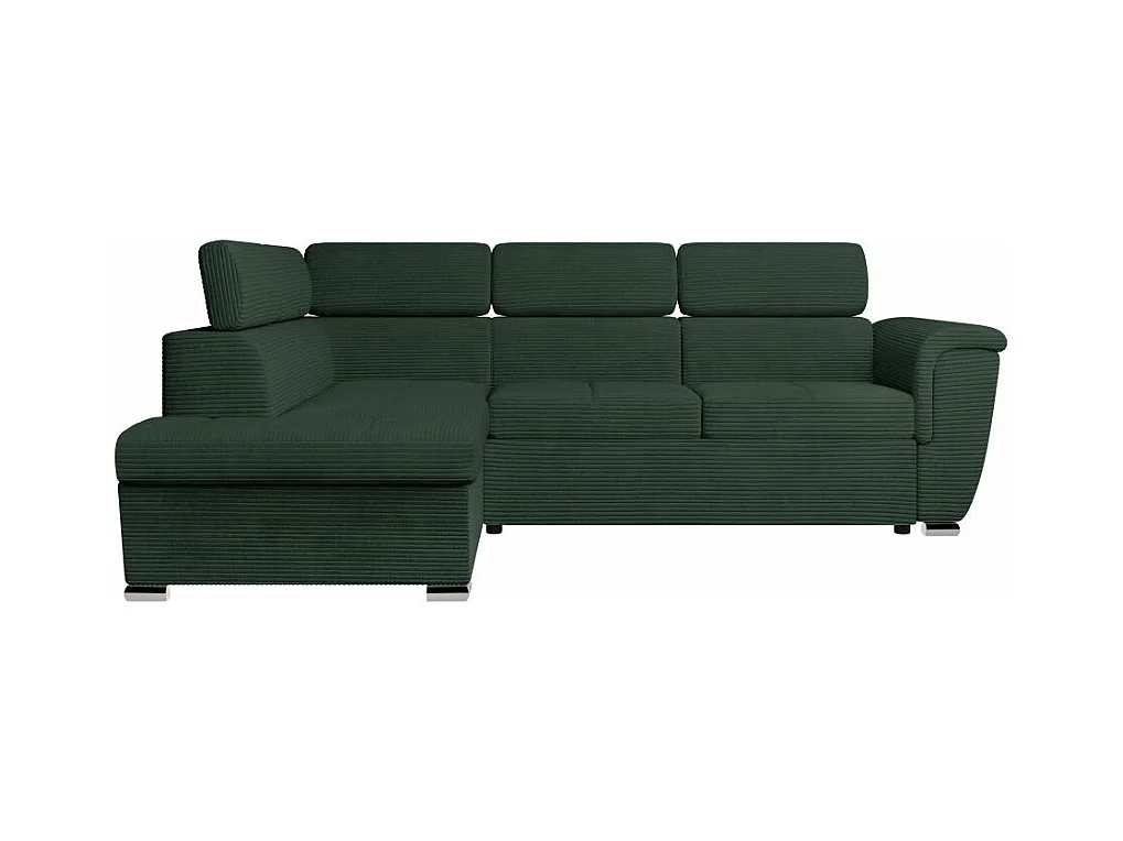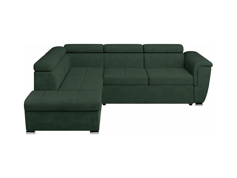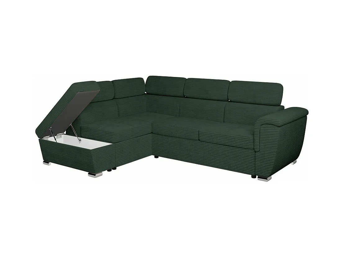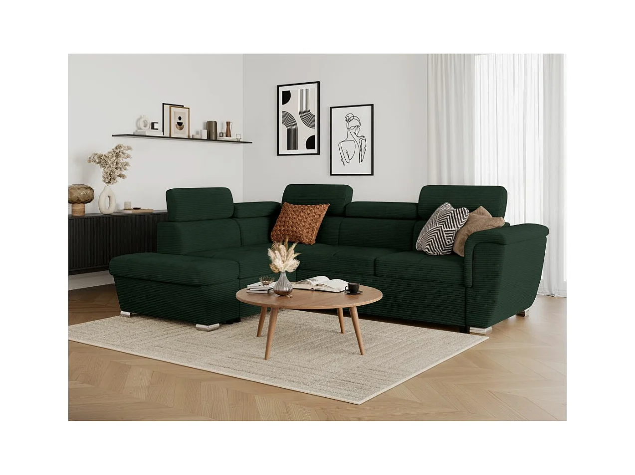 Canapé d'angle gauche 4 places Paola convertible avec coffre en velours côtelé - Vert foncé - L252 x P188 x H76cm - Loungitude