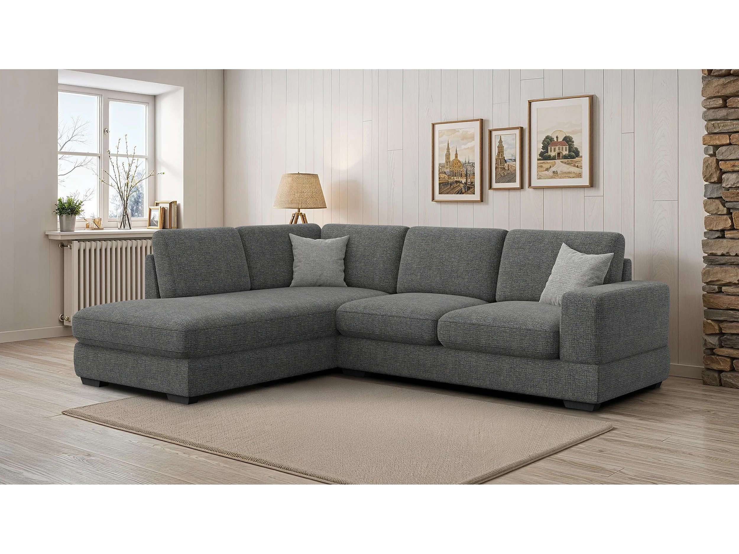 Canapé d'angle gauche 5 places OTTO, tissu anthracite