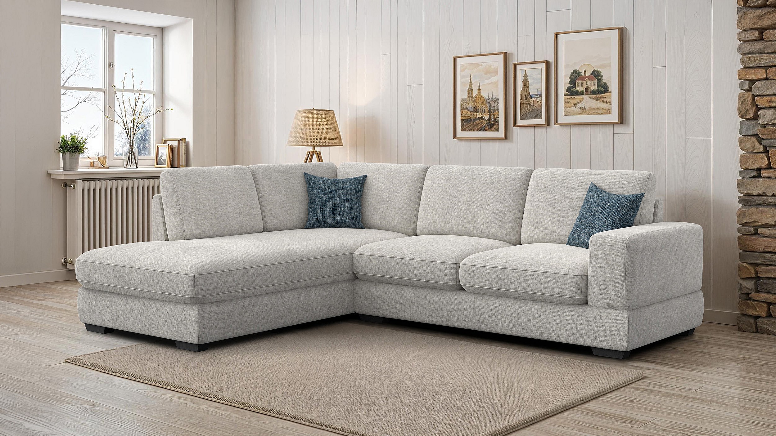 Canapé d'angle gauche 5 places OTTO, tissu crème