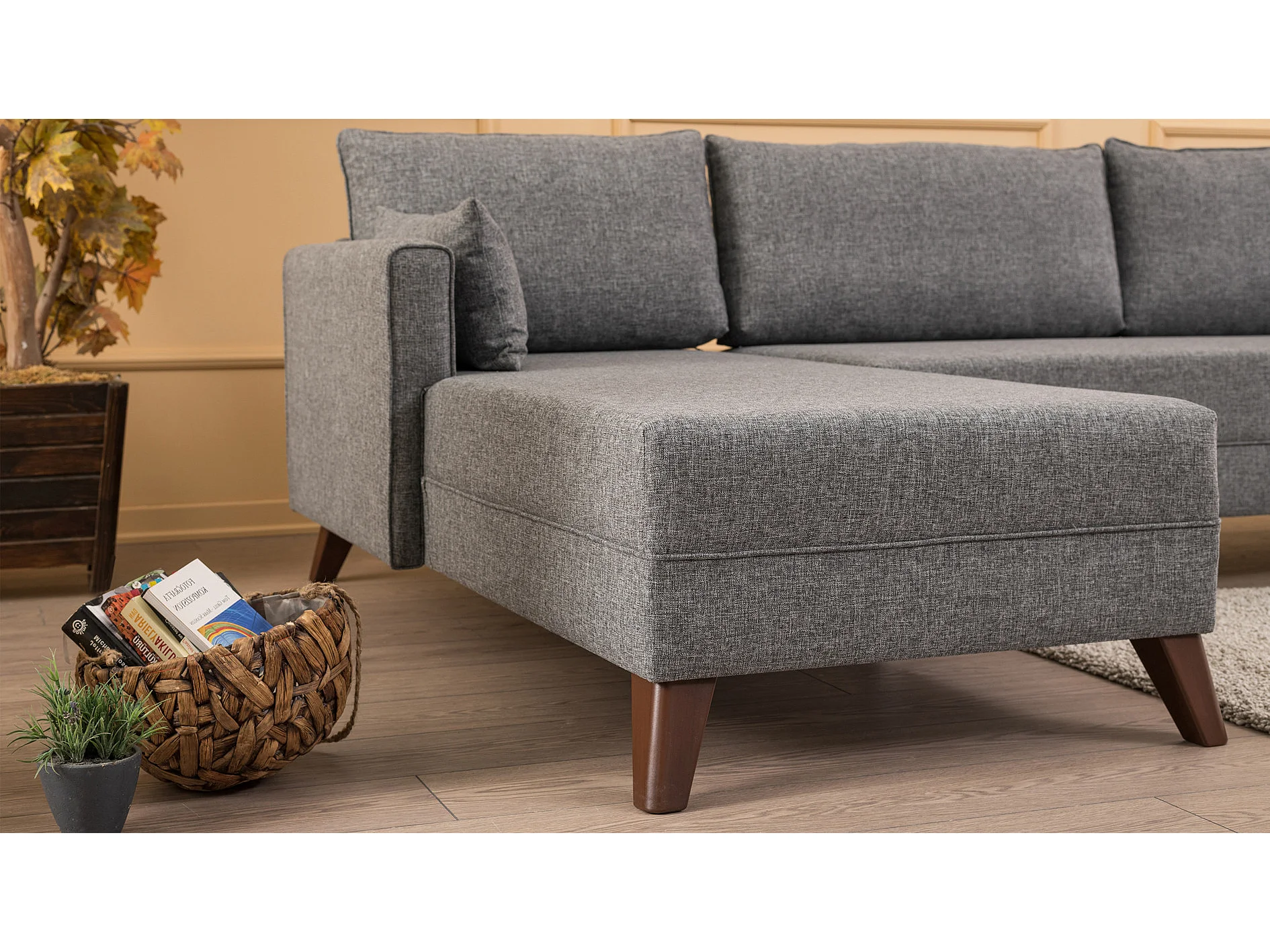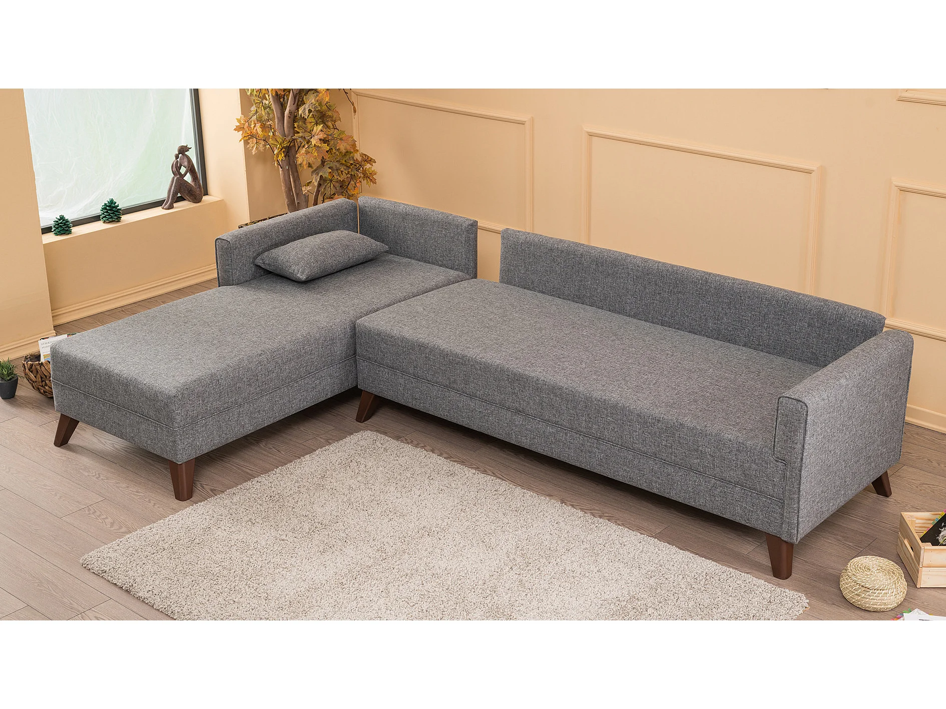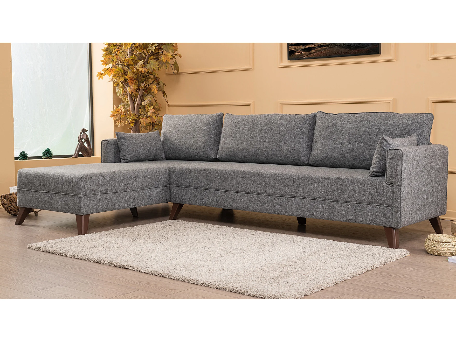 Canapé d'angle gauche 5 places tissu gris Kandy 275cm