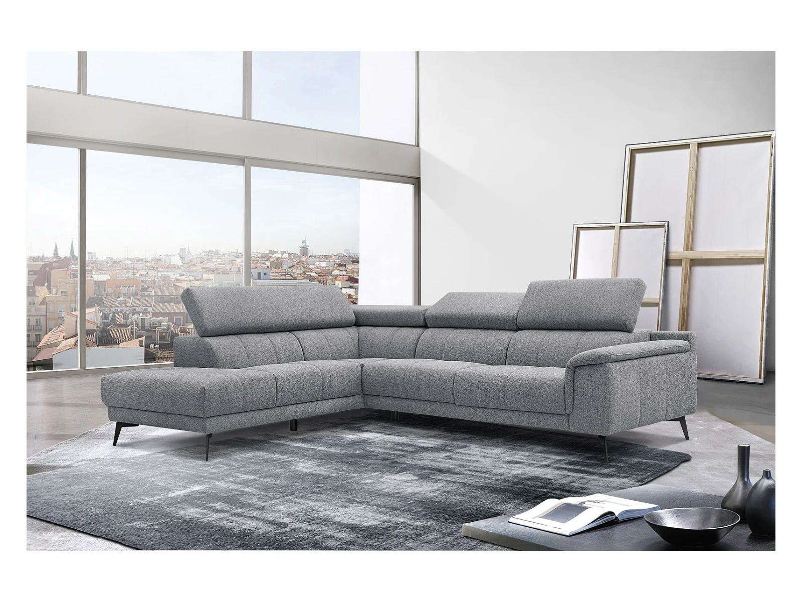Canapé d'angle gauche 5 places tissu gris moyen - Fiero