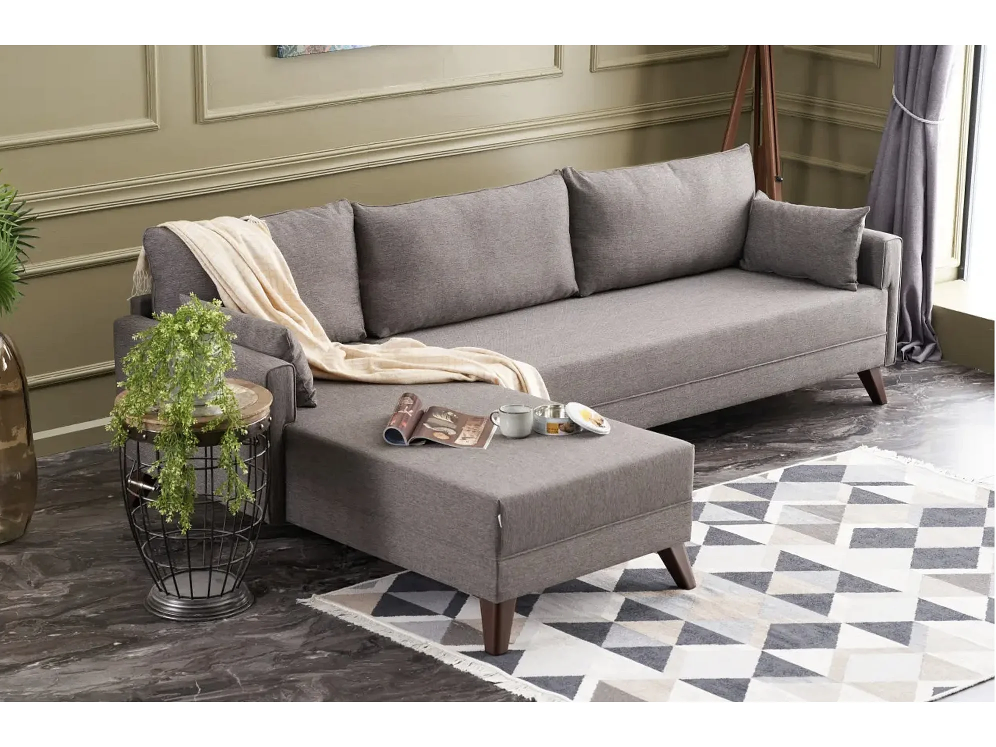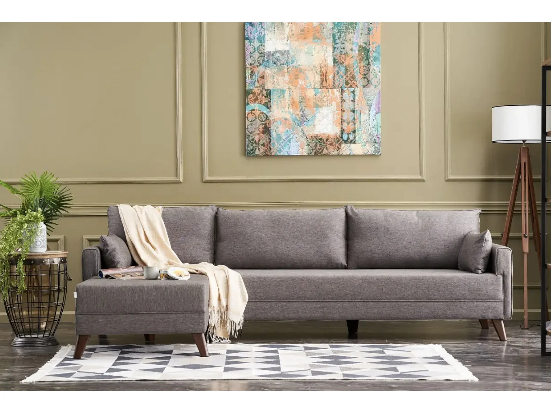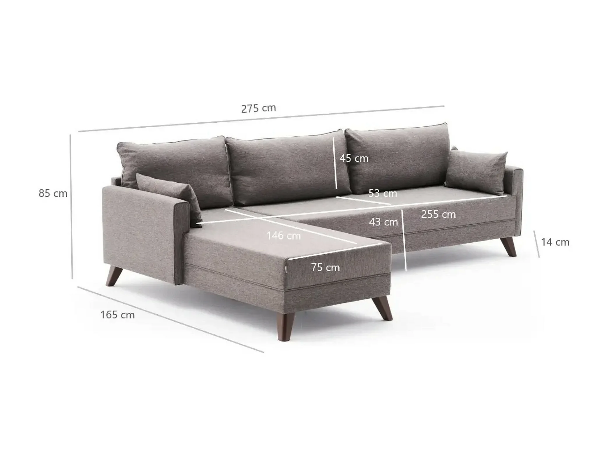 Canapé d'angle gauche 5 places tissu marron clair Kandy 275cm