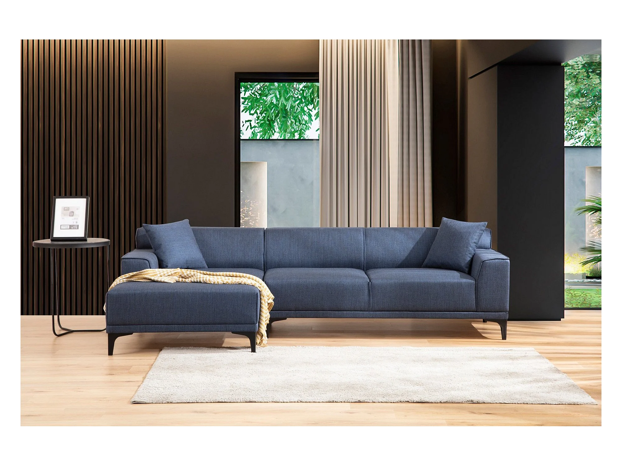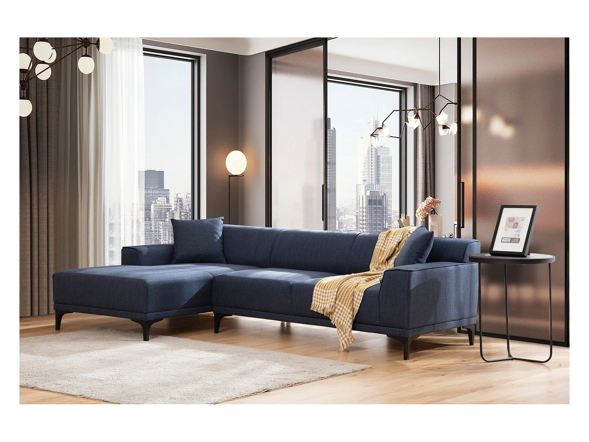 Canapé d'angle gauche avec 2 coussins Navagio Tissu Bleu
