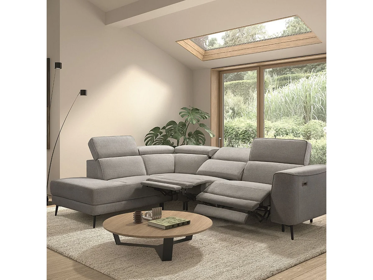 Canapé d'angle gauche avec 2 places relax électrique tissu gris - BAMAKO