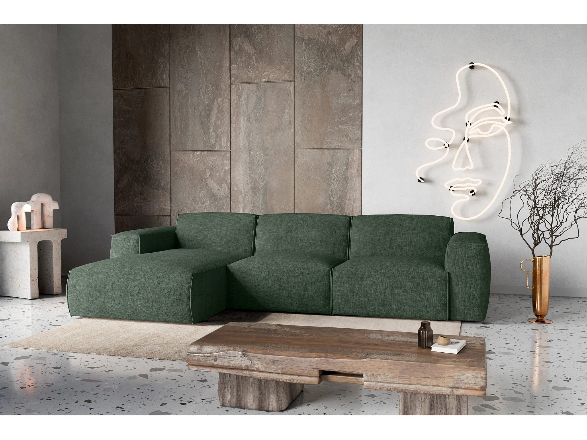 Canapé d'Angle gauche avec fonction de couchage Hudson coffre en vert bouteille du fabricant -VINOTTI