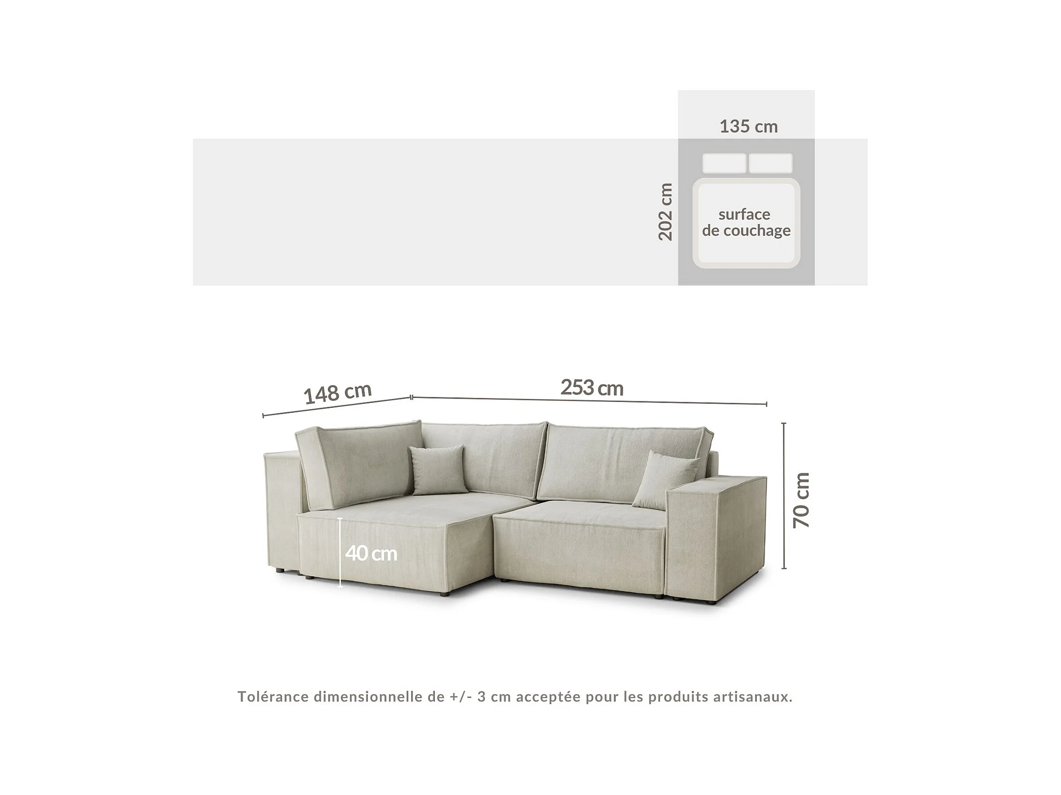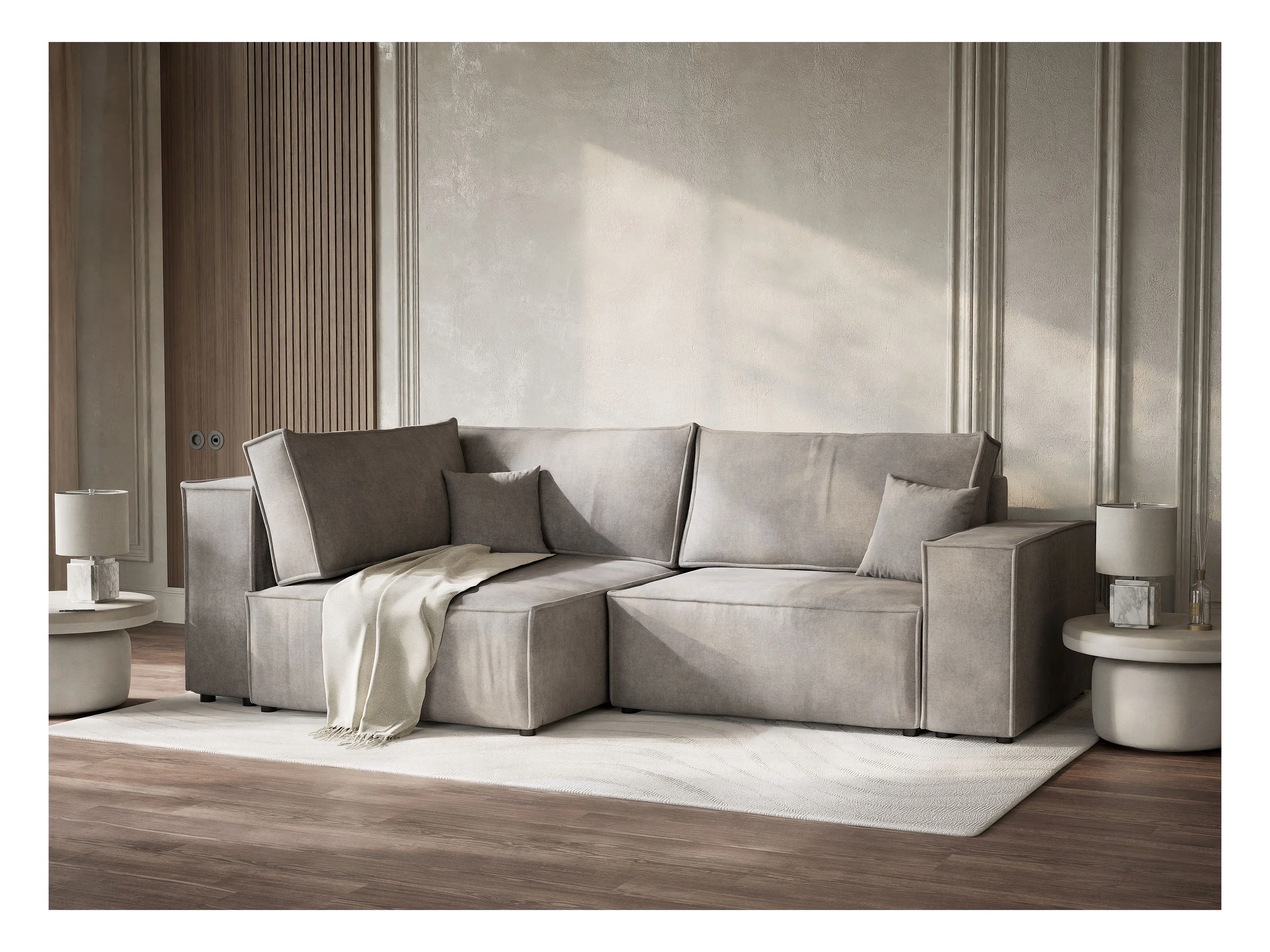 Canapé d'angle gauche avec fonction lit en tissu chenille beige gris TONGA