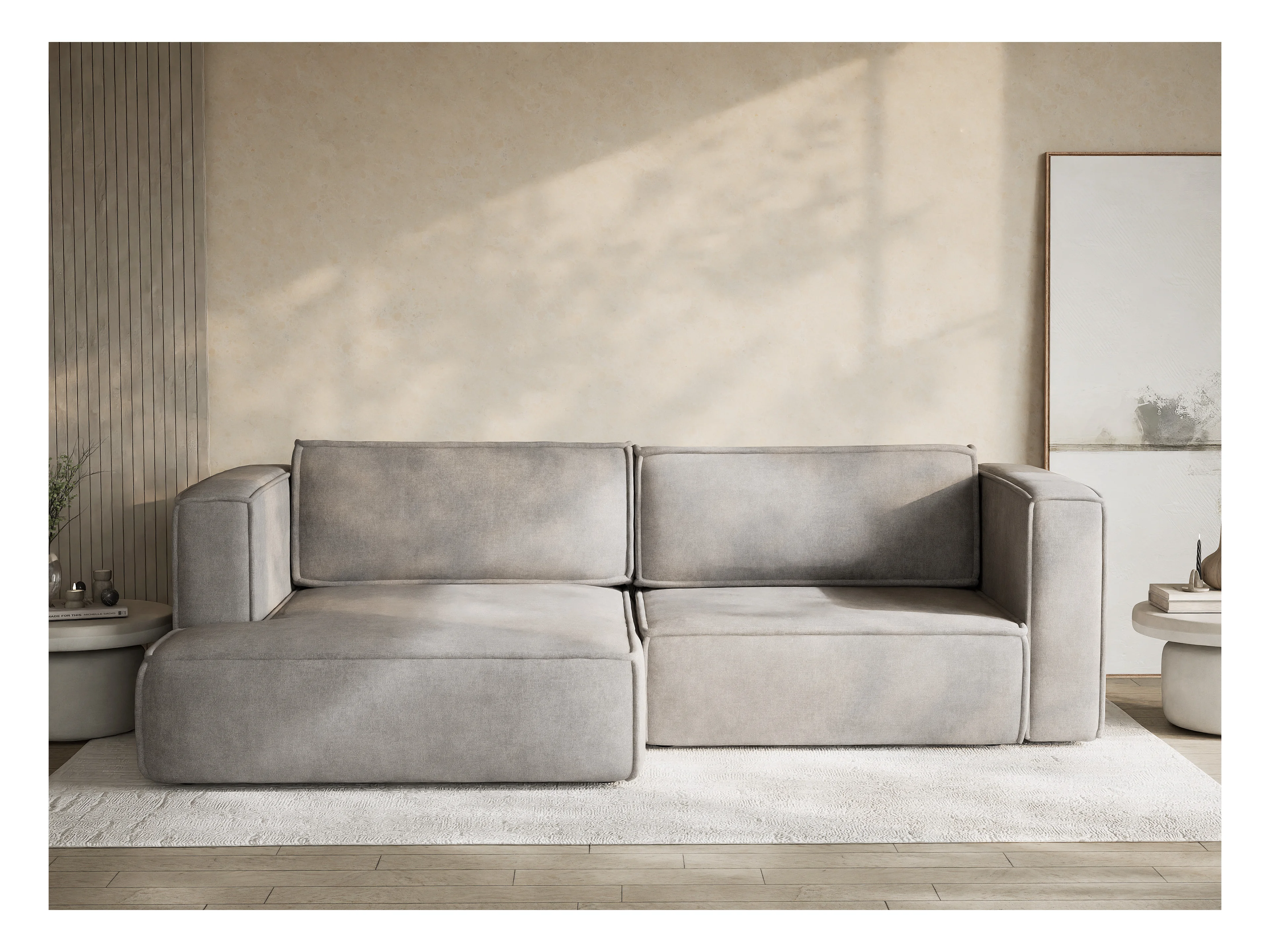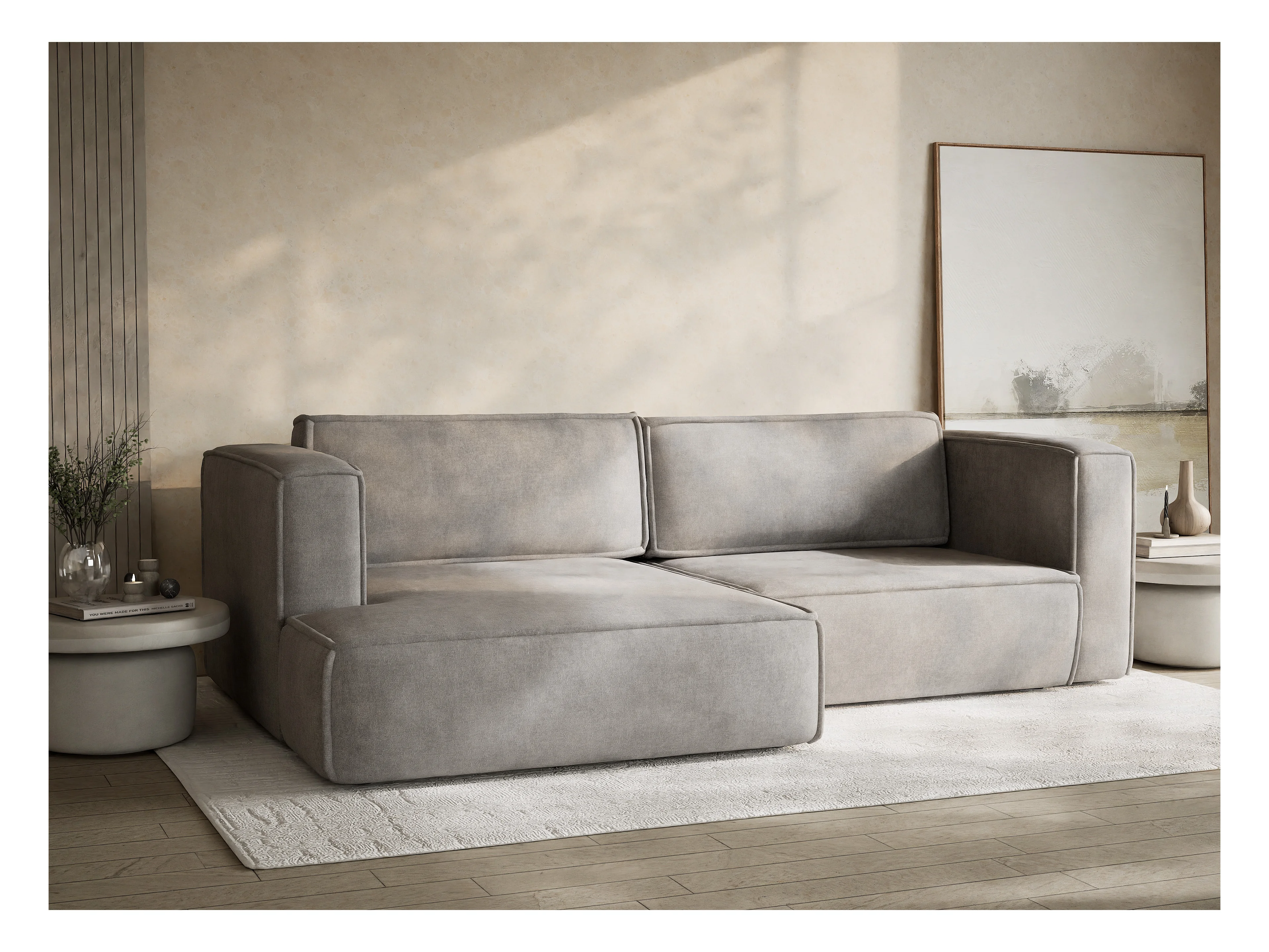 Canapé d'angle gauche avec fonction lit en tissu chenille beige gris VELTO