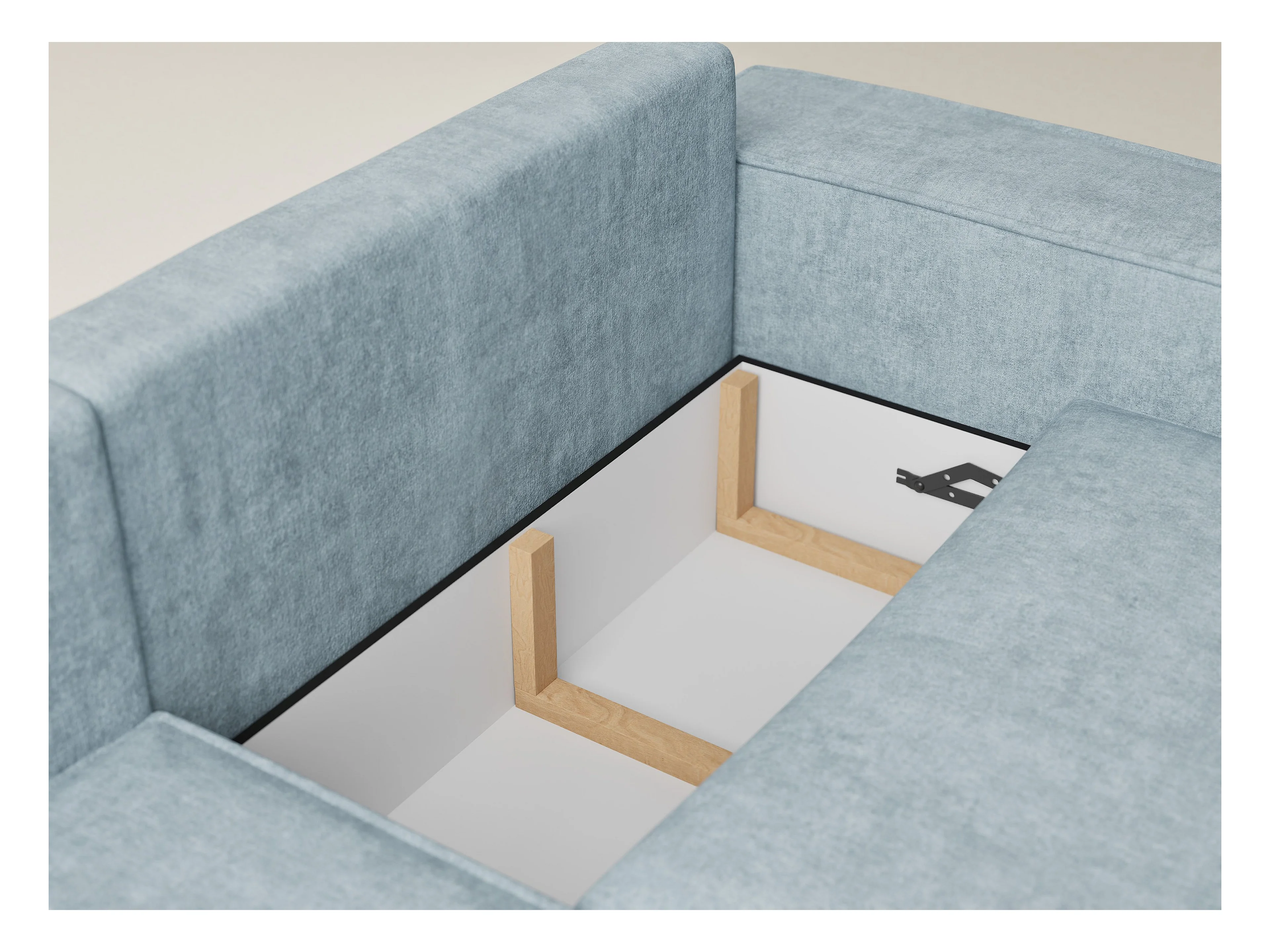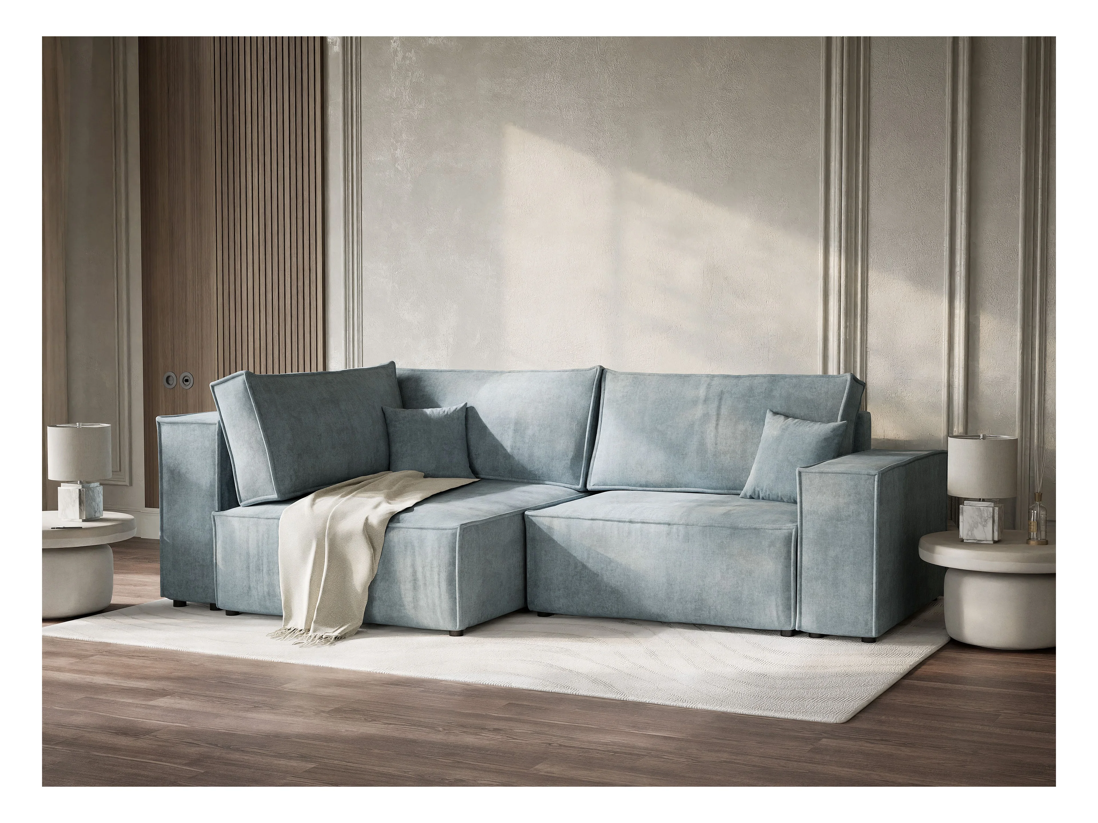 Canapé d'angle gauche avec fonction lit en tissu chenille bleu clair TONGA