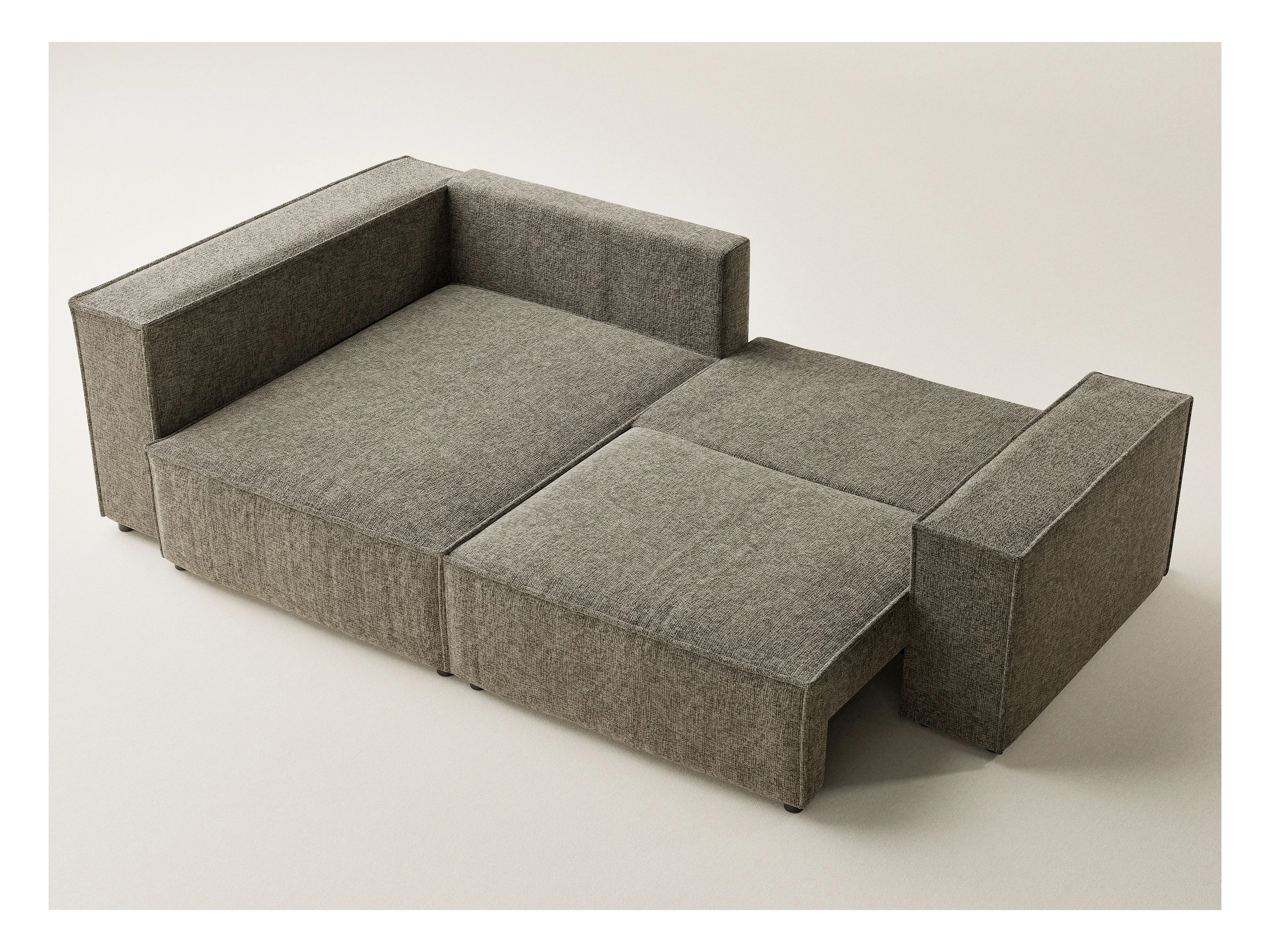 Canapé d'angle gauche avec fonction lit en tissu chenille taupe TONGA