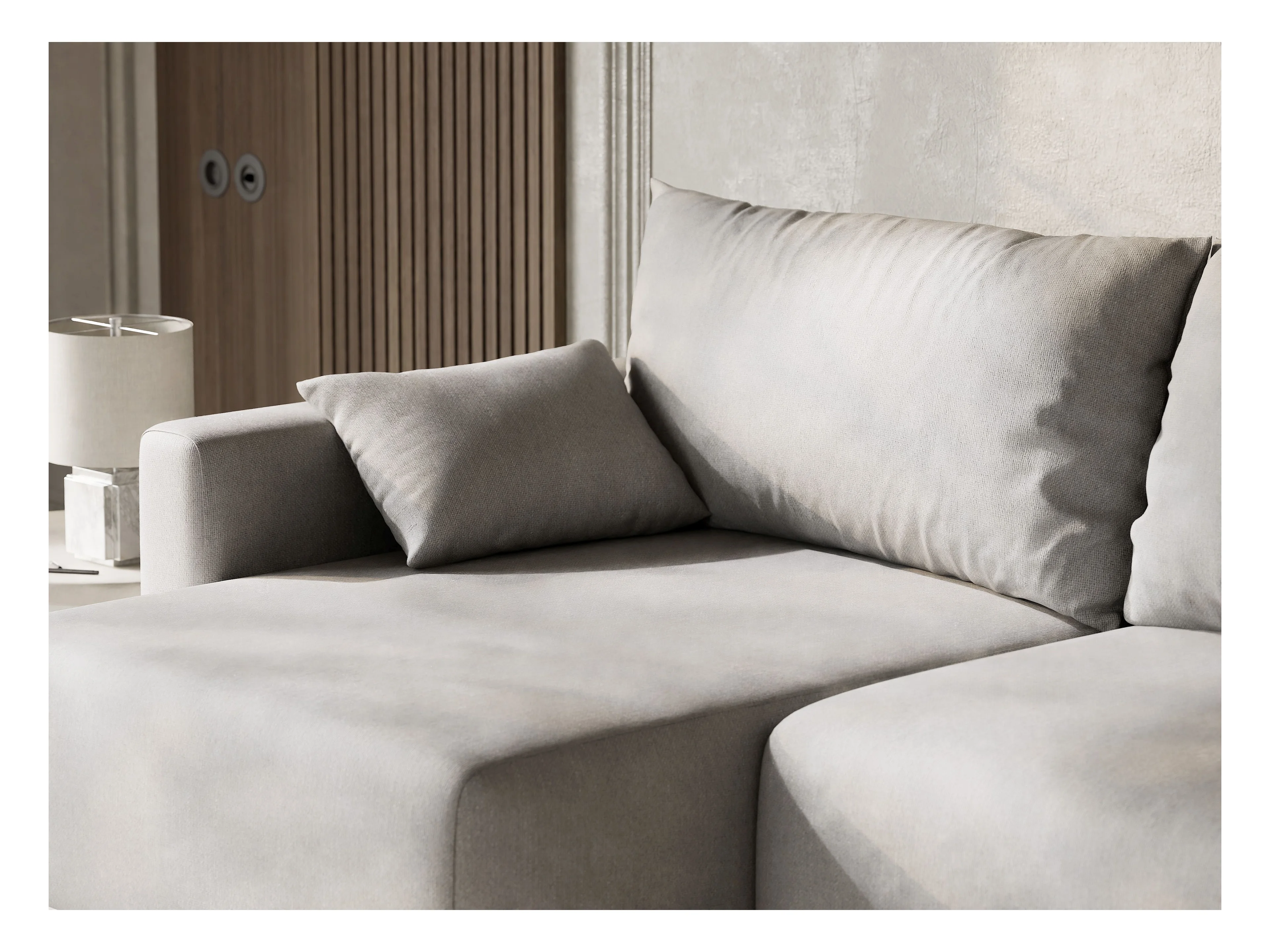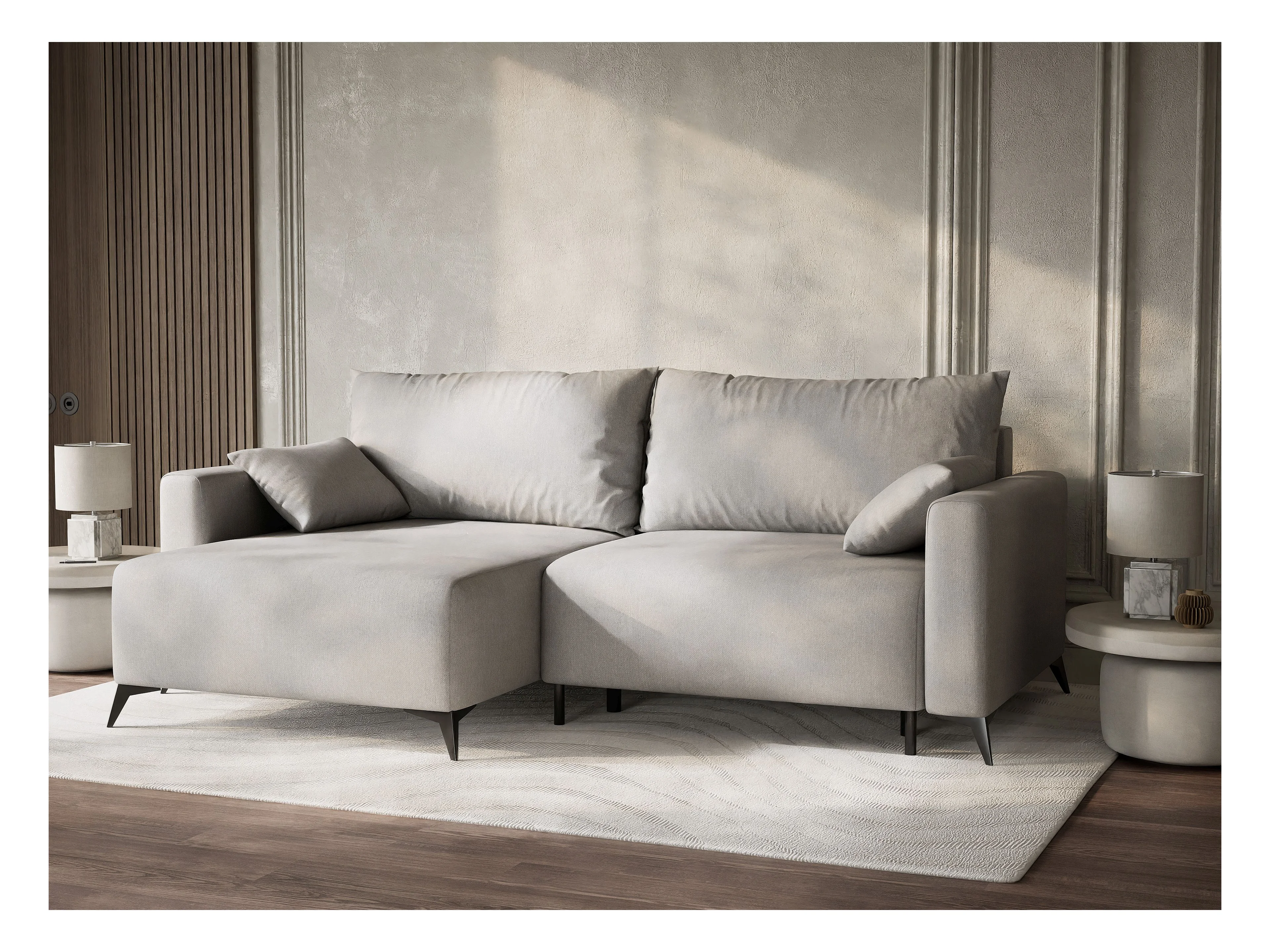 Canapé d'angle gauche avec fonction lit en tissu tressé beige gris LEON