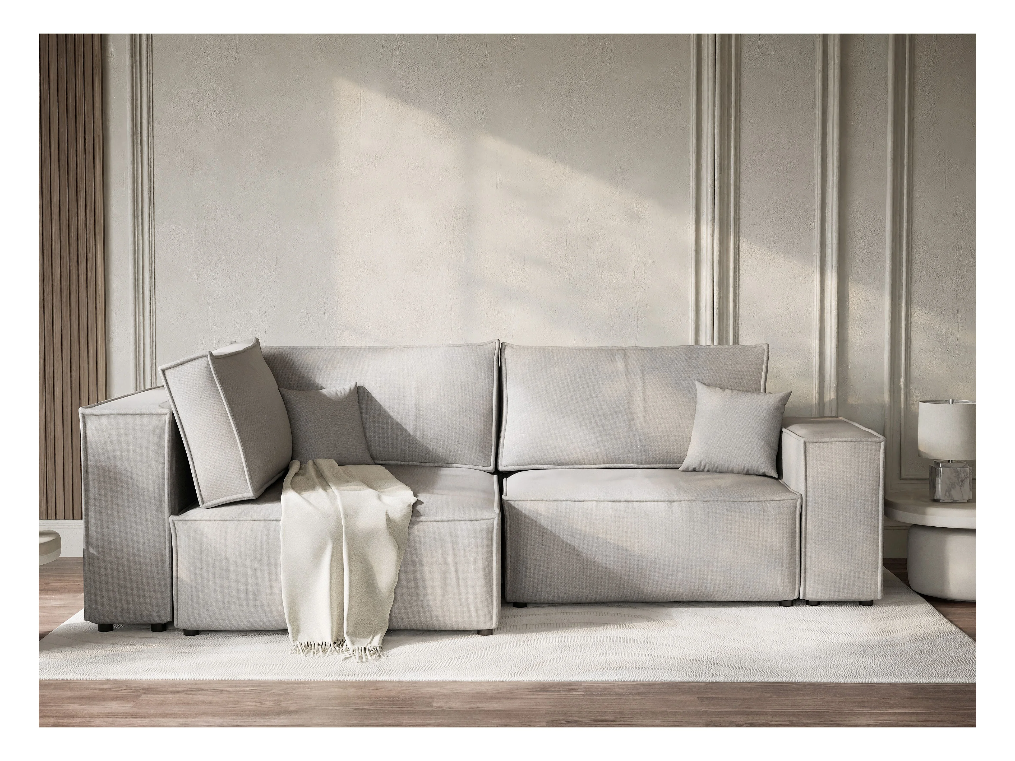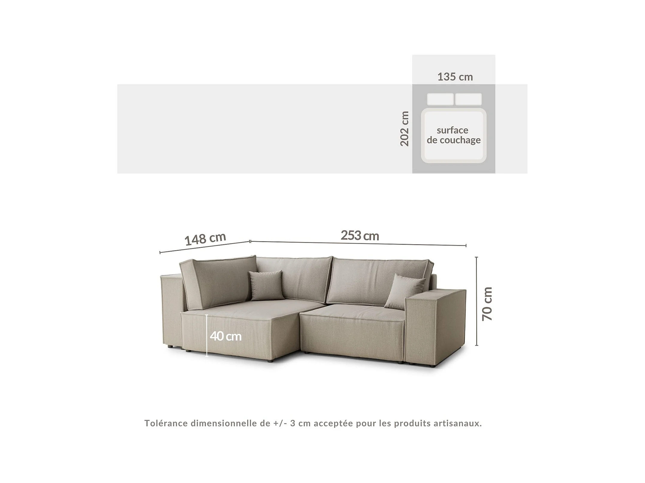Canapé d'angle gauche avec fonction lit en tissu tressé beige gris TONGA
