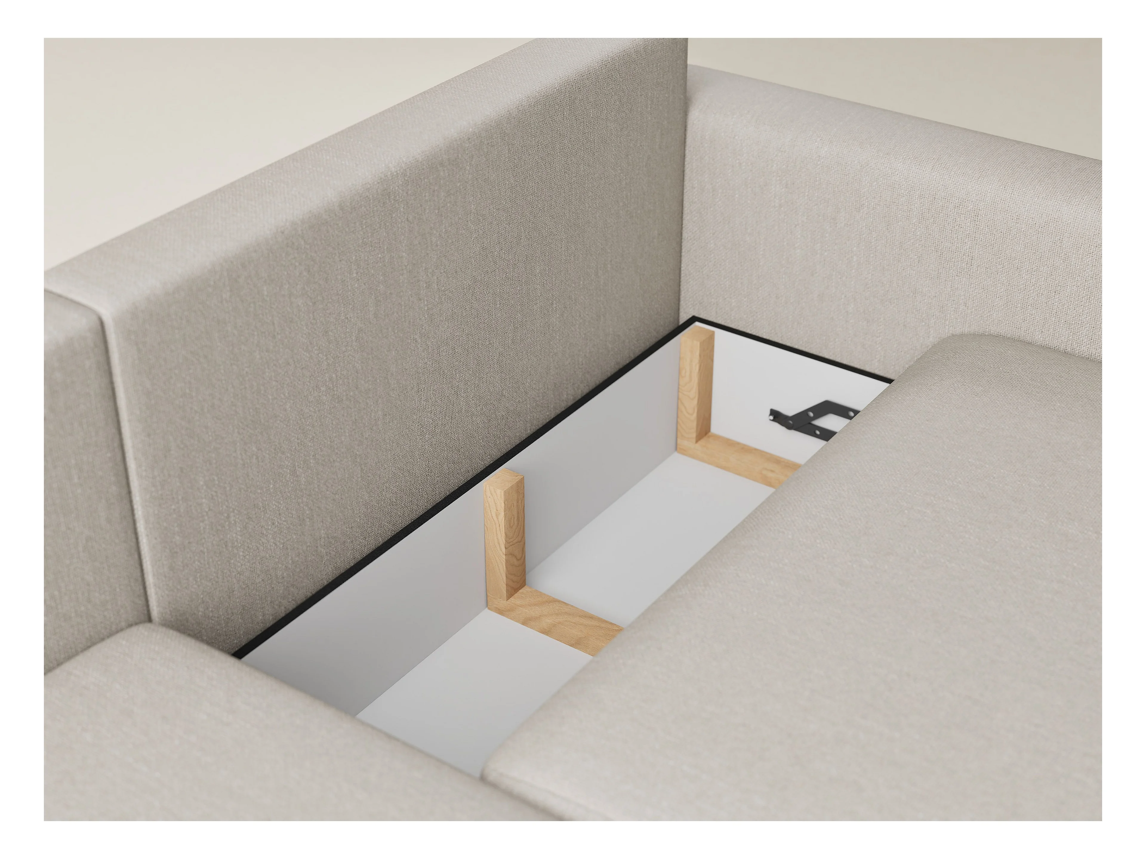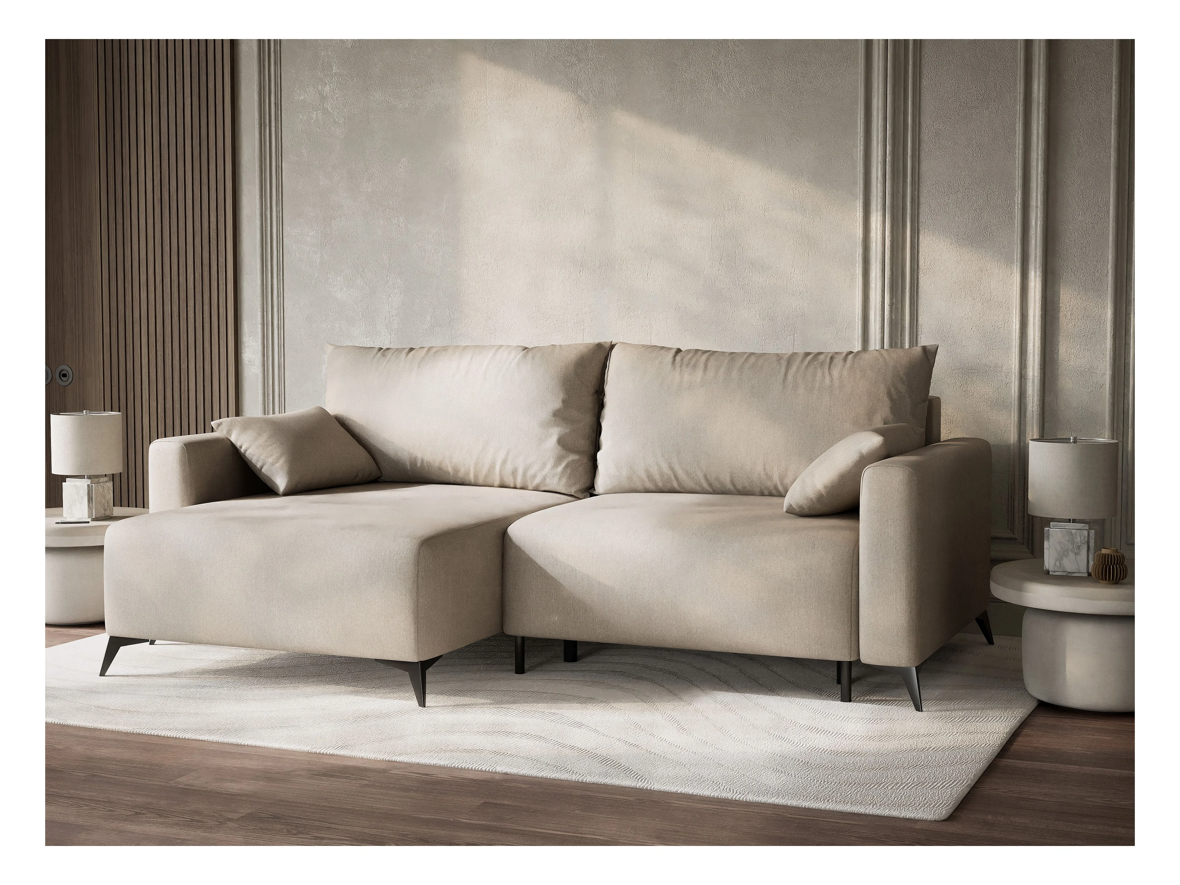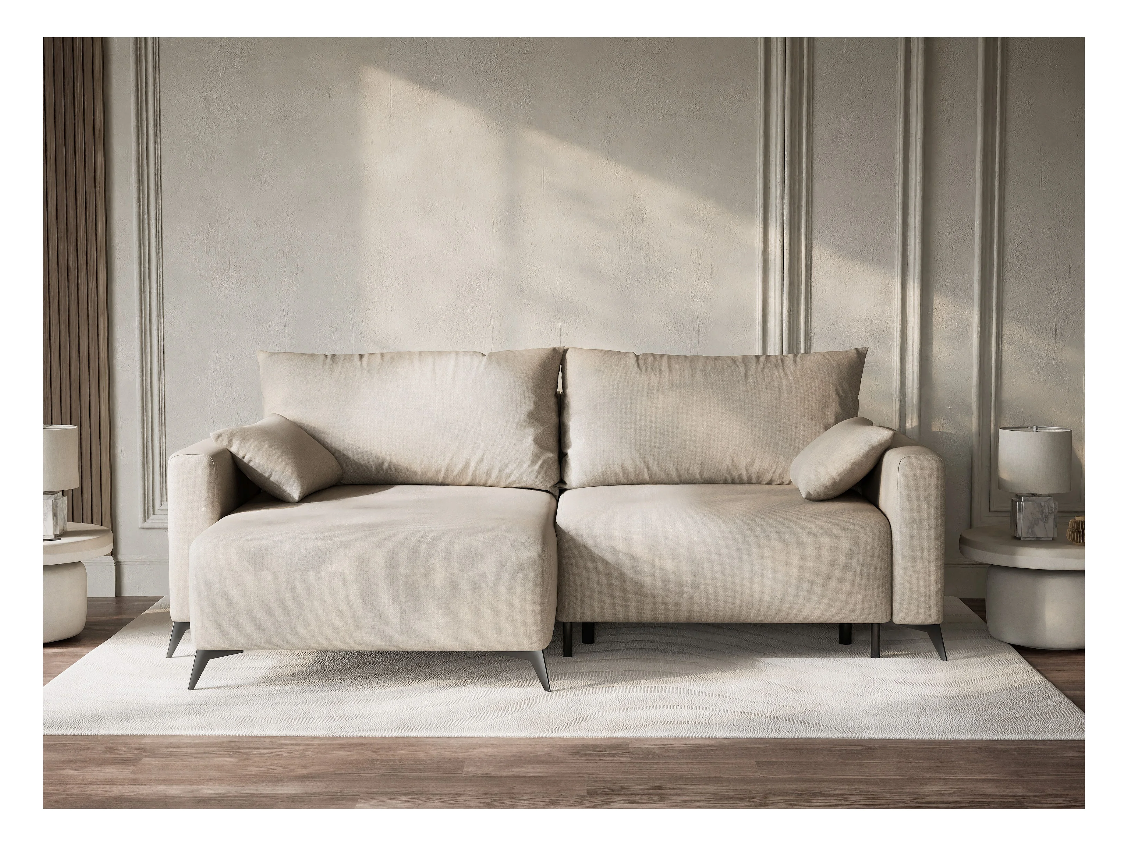 Canapé d'angle gauche avec fonction lit en tissu tressé beige LEON