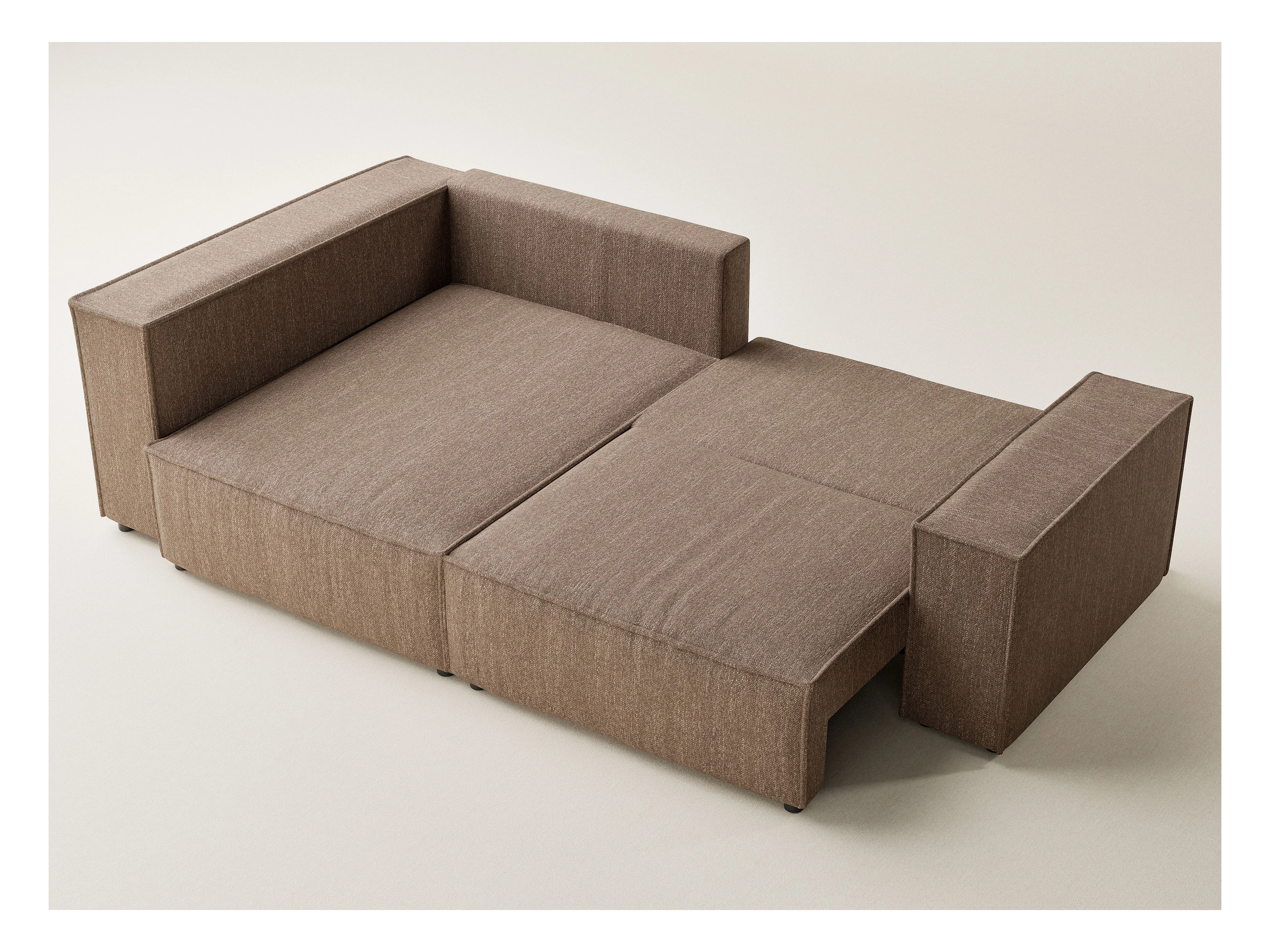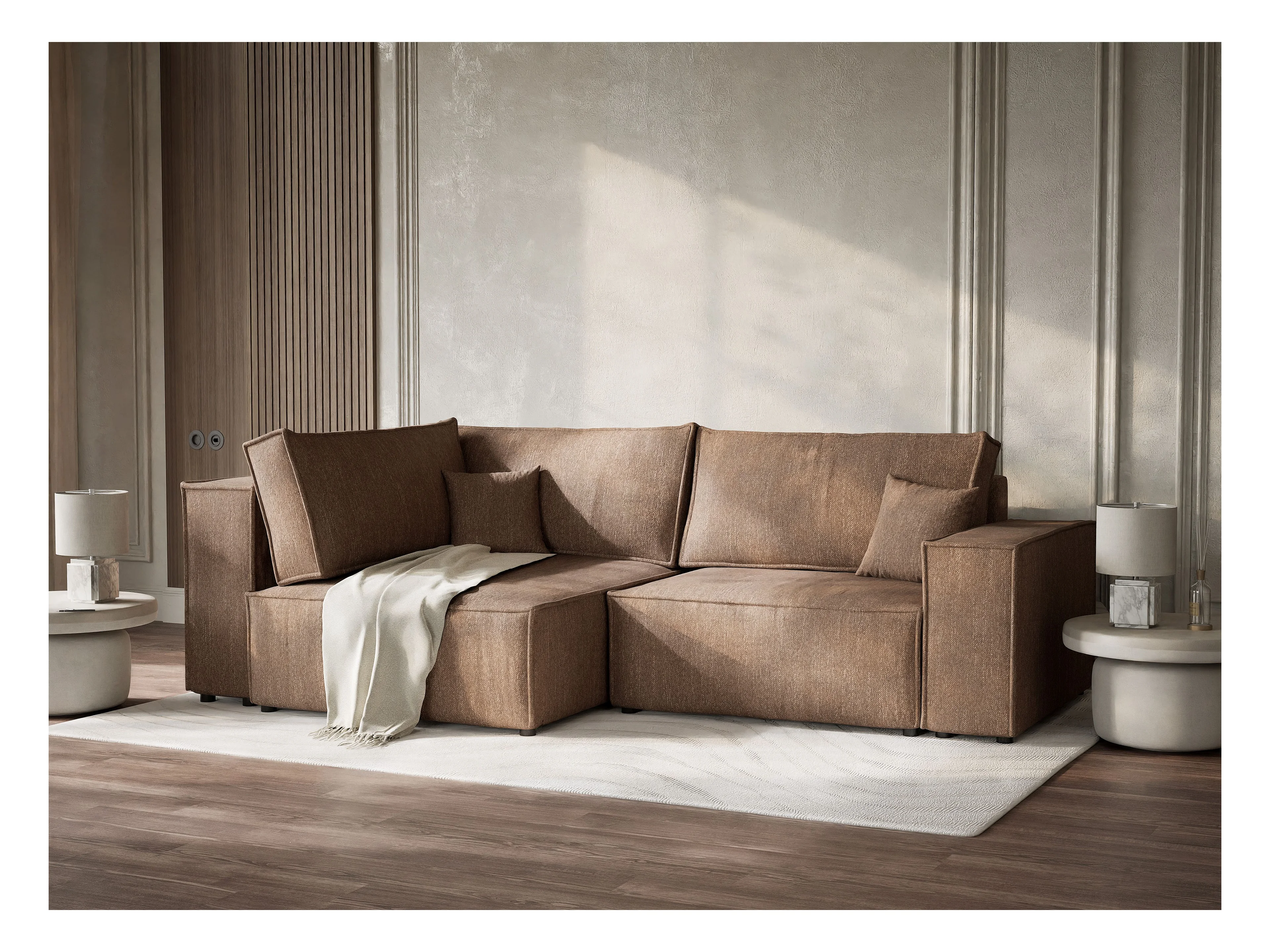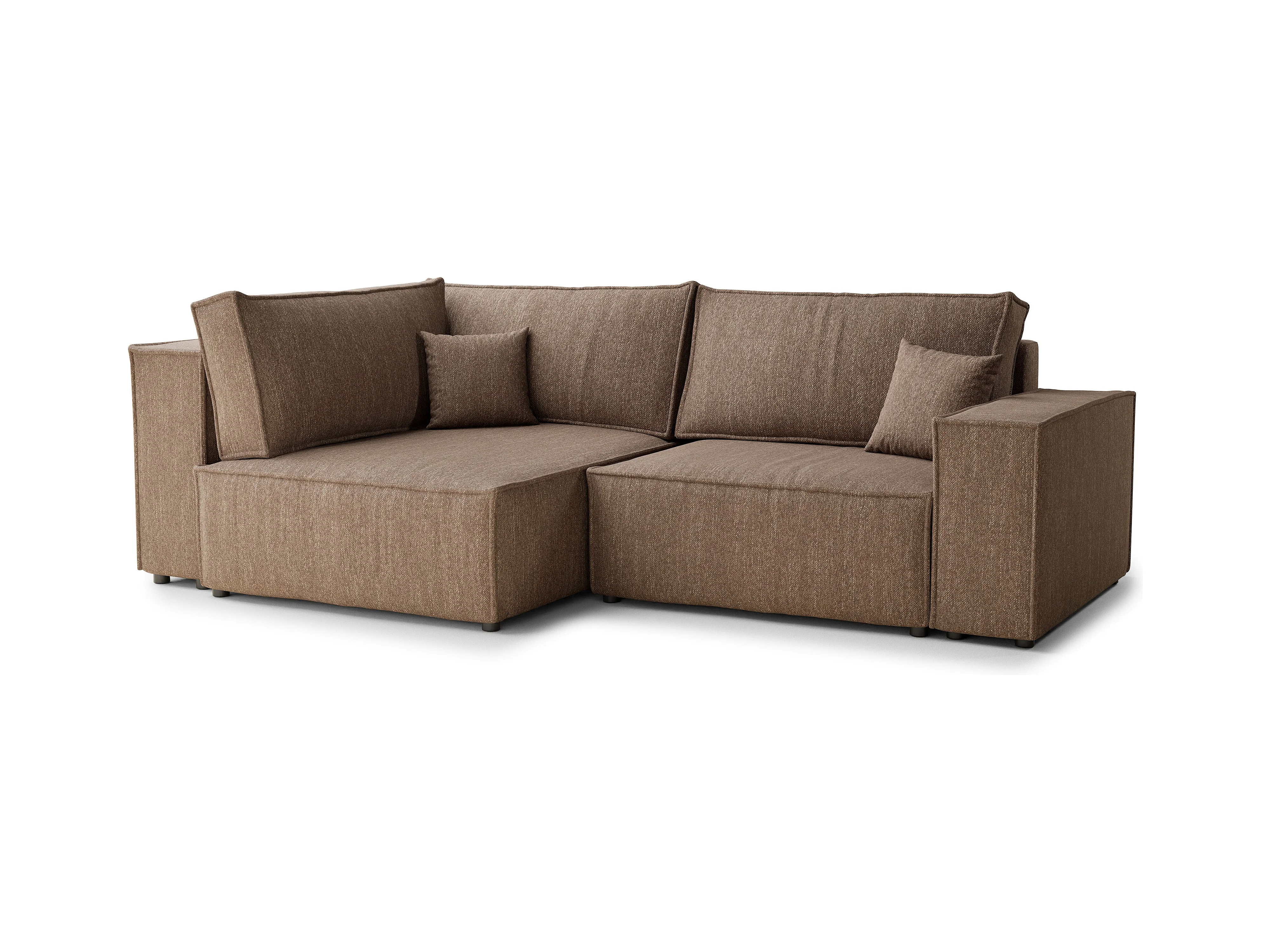 Canapé d'angle gauche avec fonction lit en tissu tressé brun TONGA