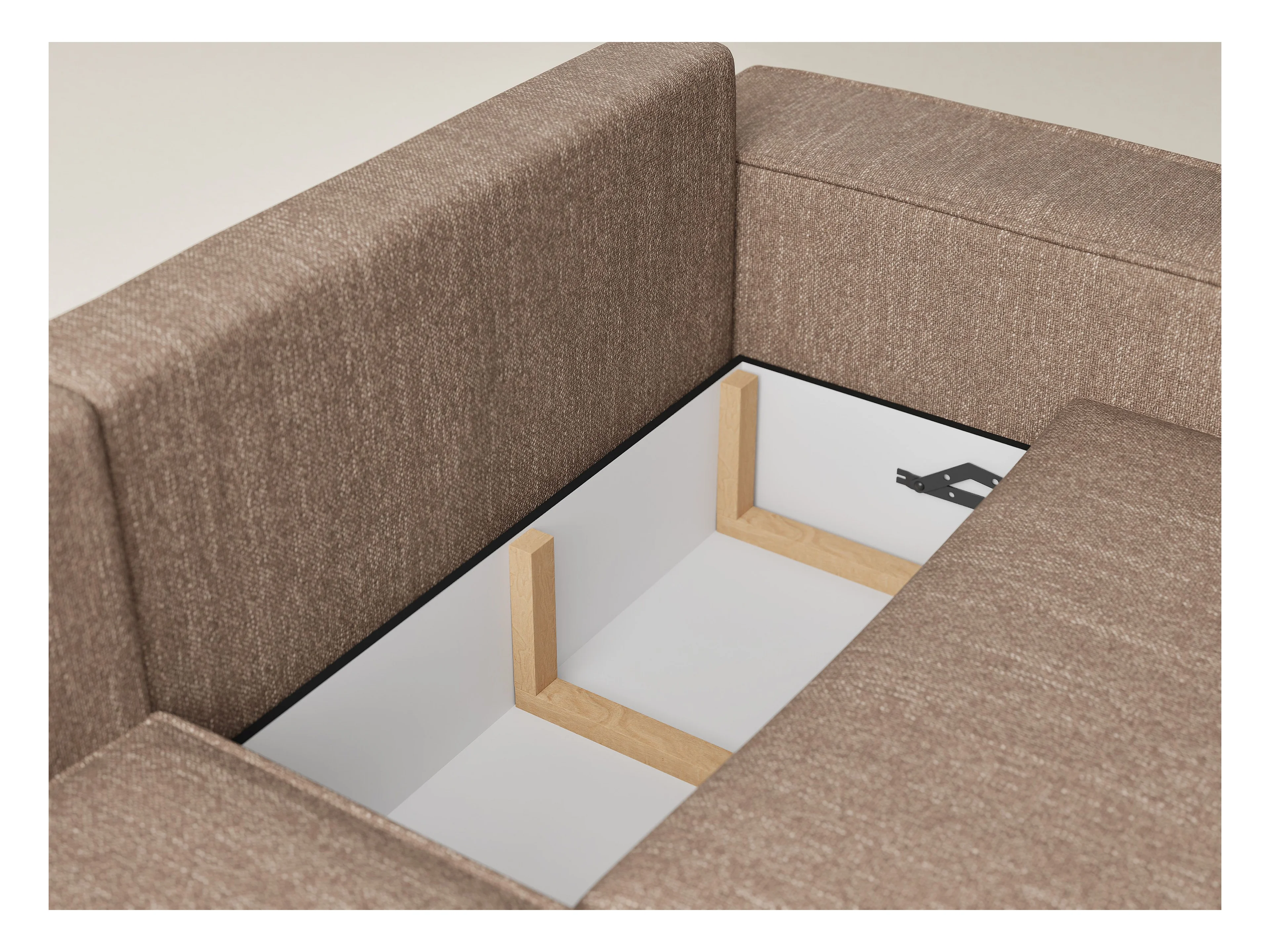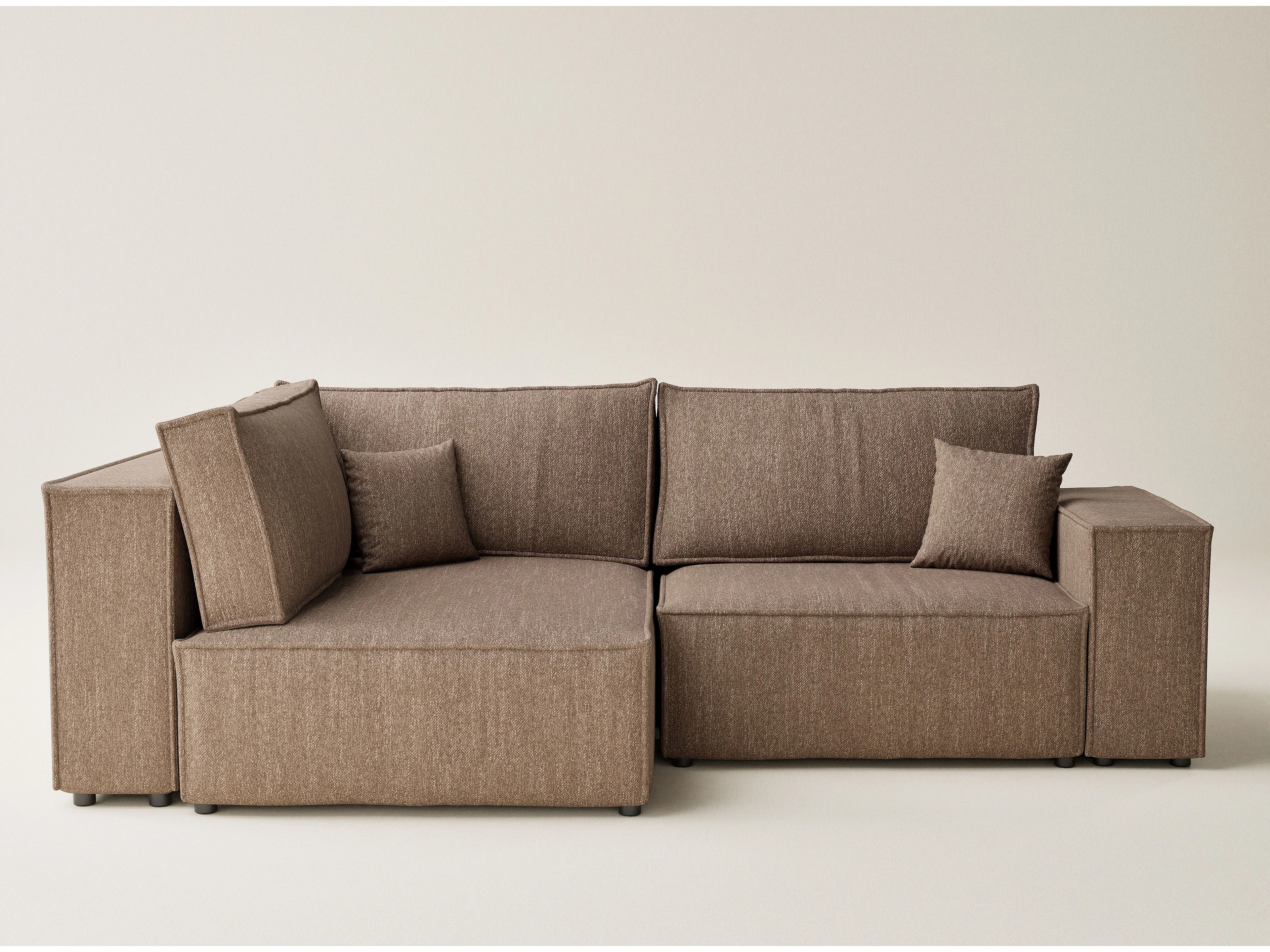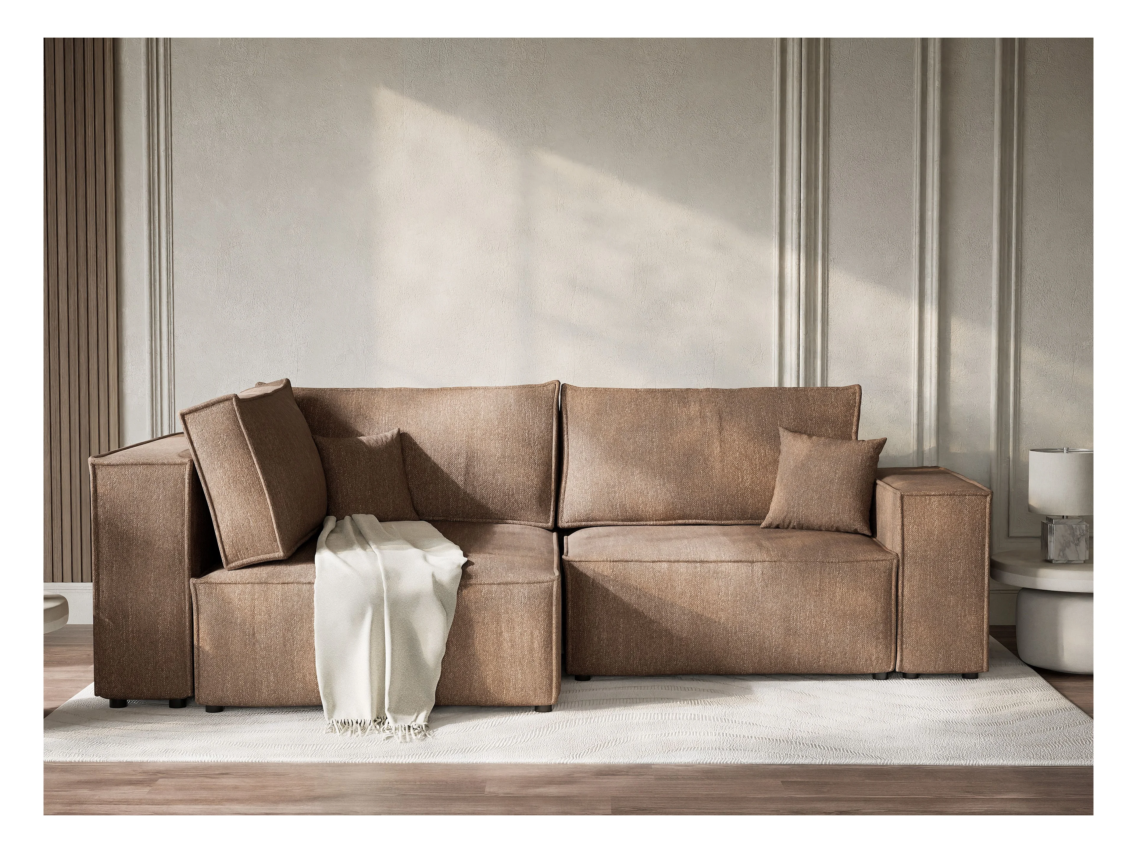 Canapé d'angle gauche avec fonction lit en tissu tressé brun TONGA
