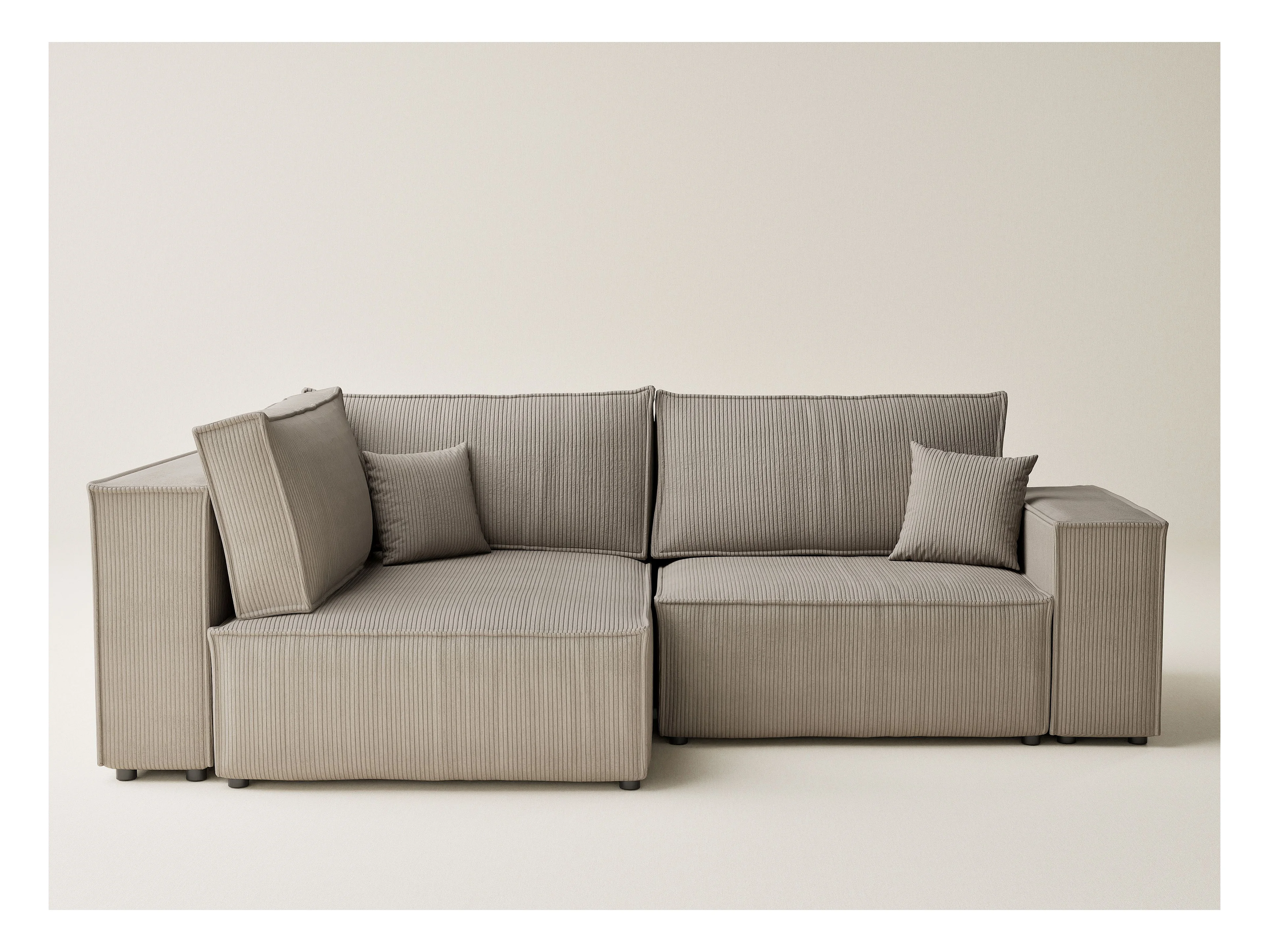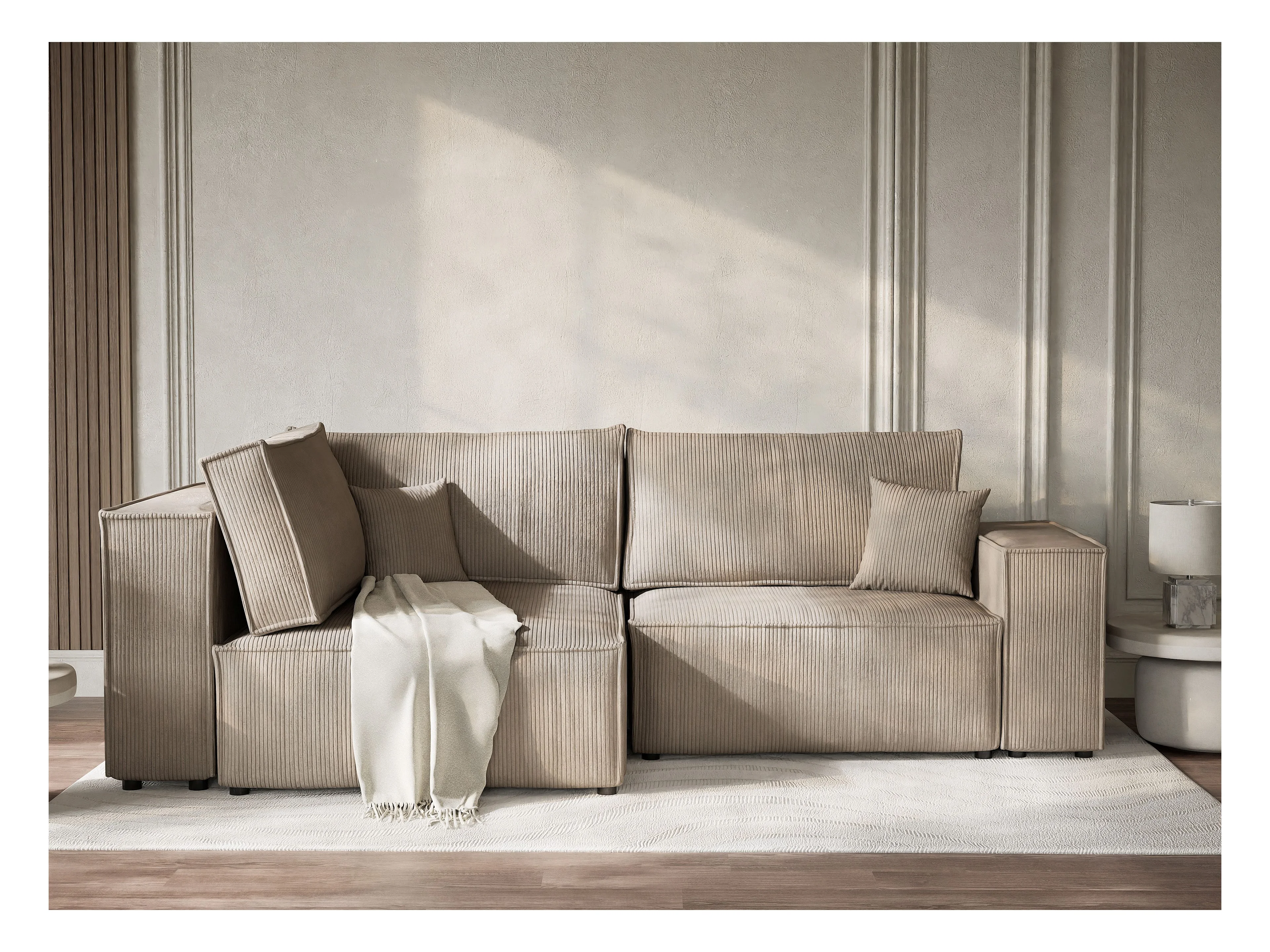 Canapé d'angle gauche avec fonction lit en velours beige foncé TONGA