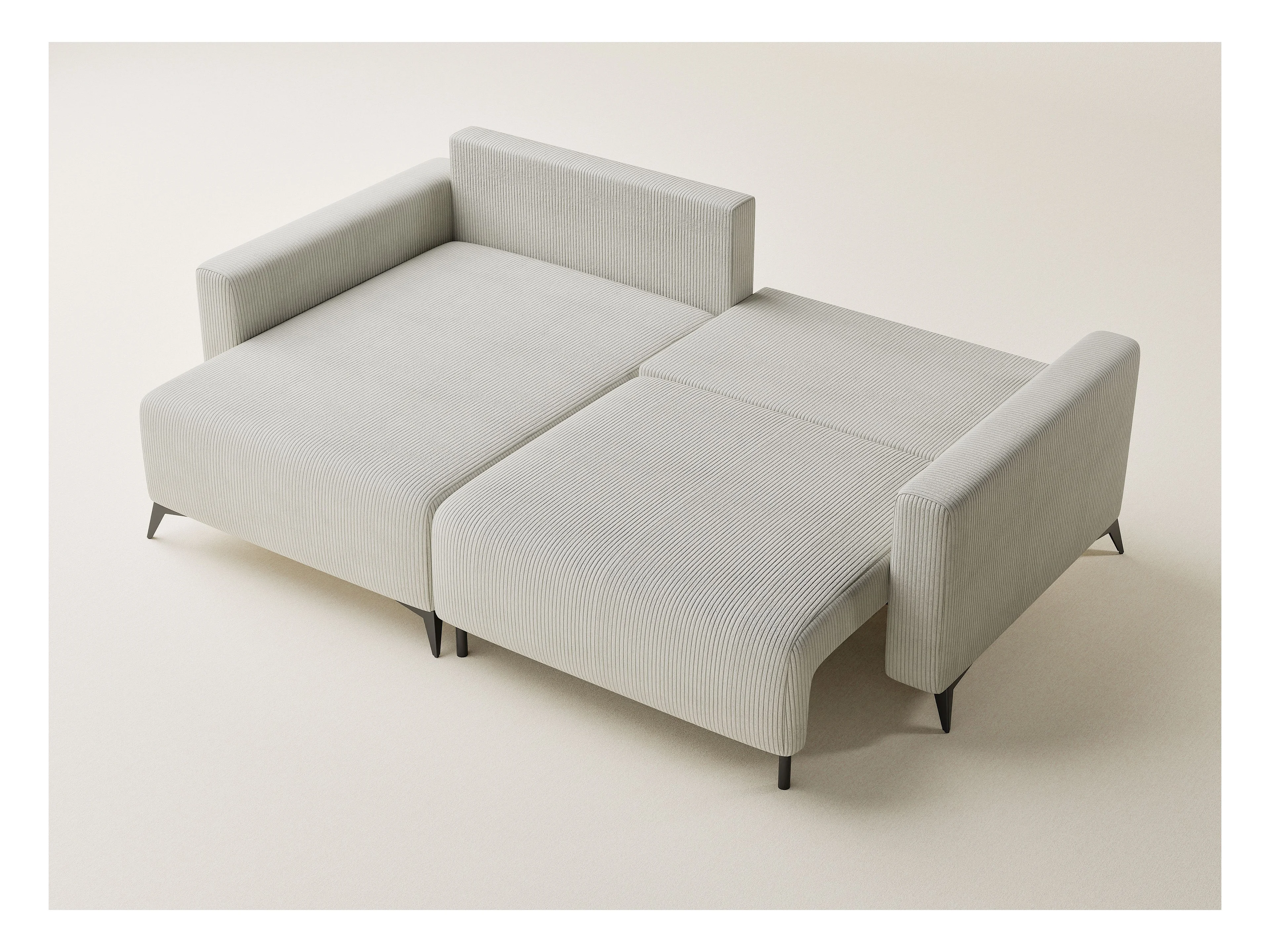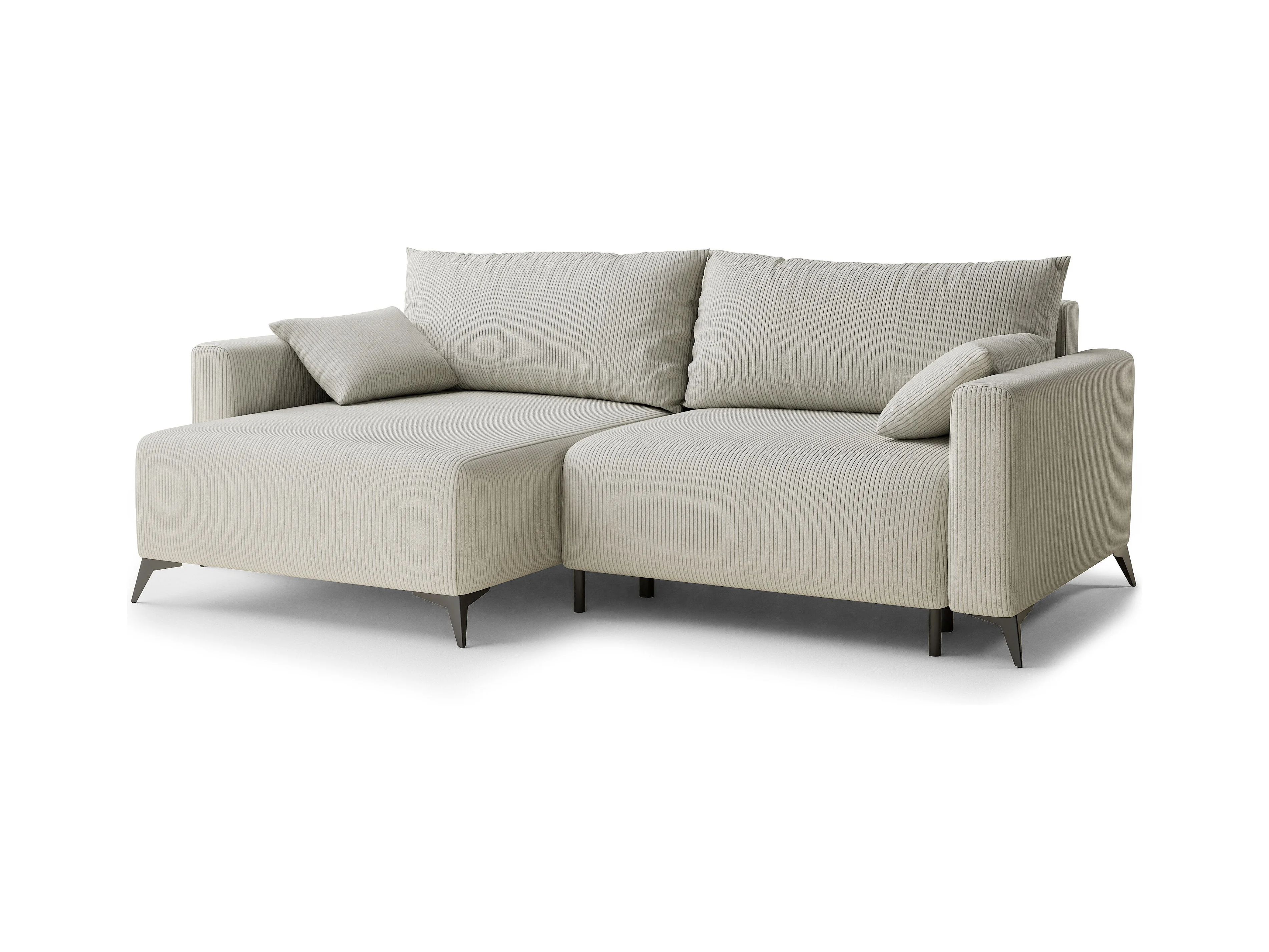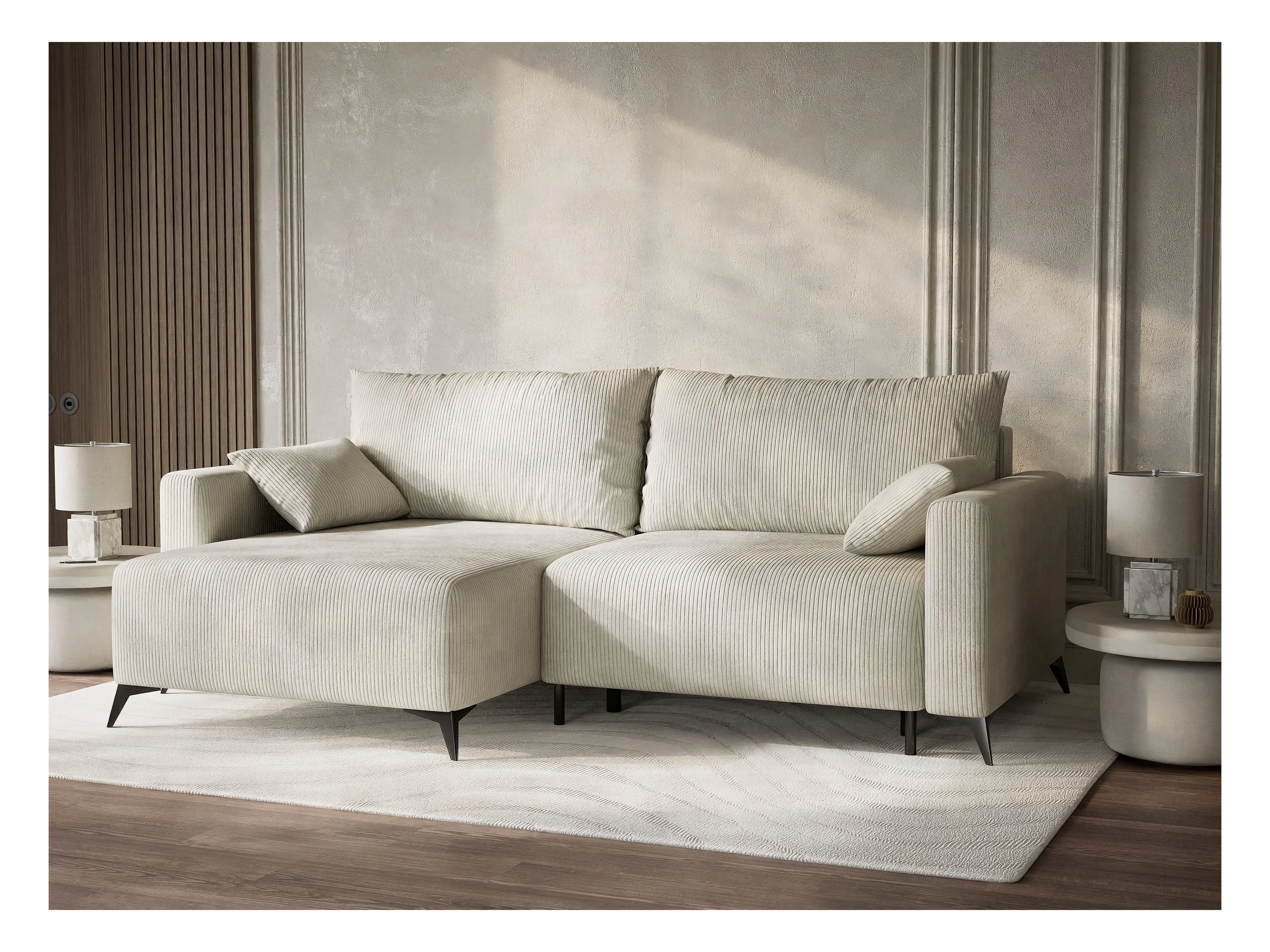 Canapé d'angle gauche avec fonction lit en velours creme LEON
