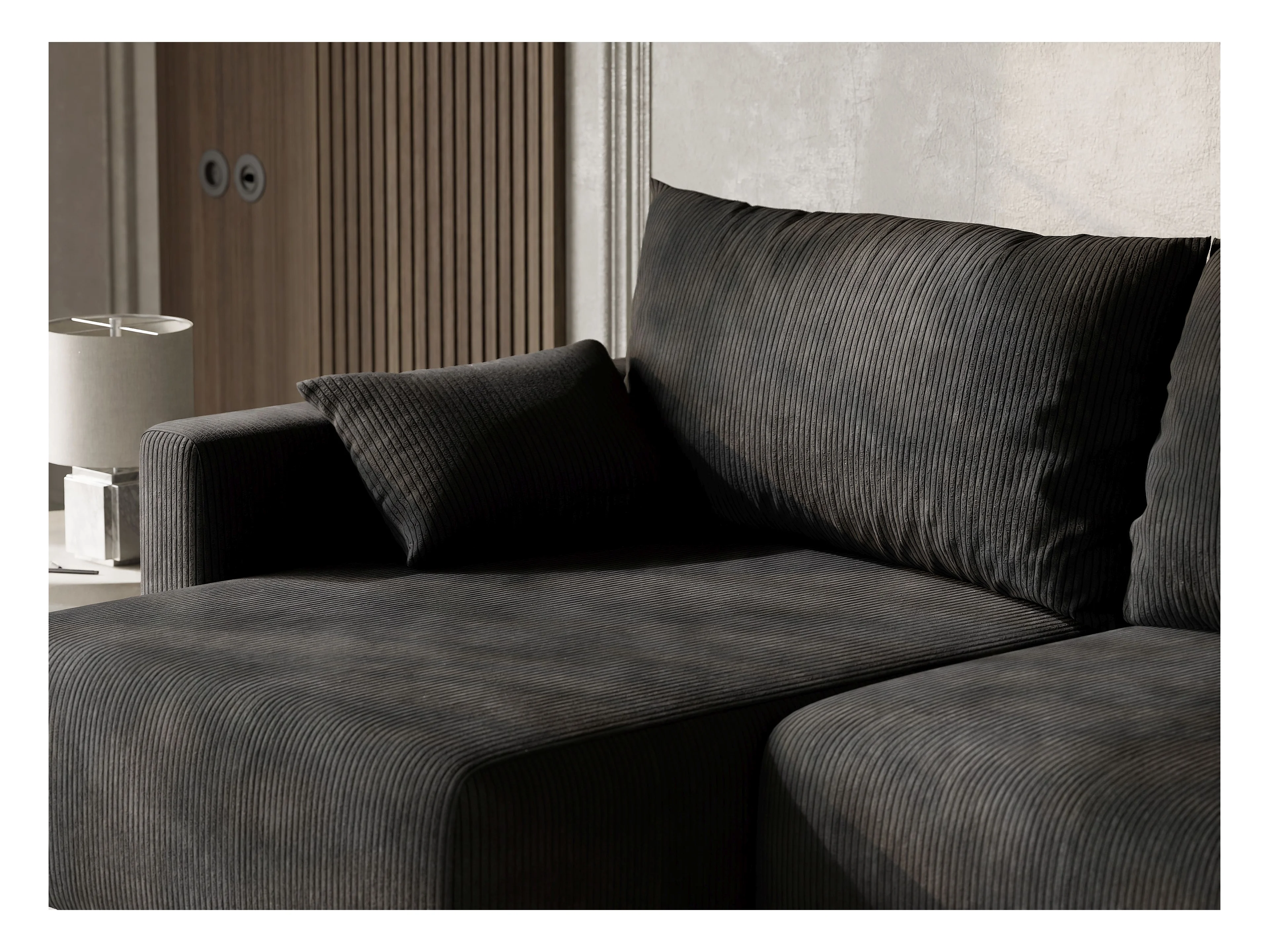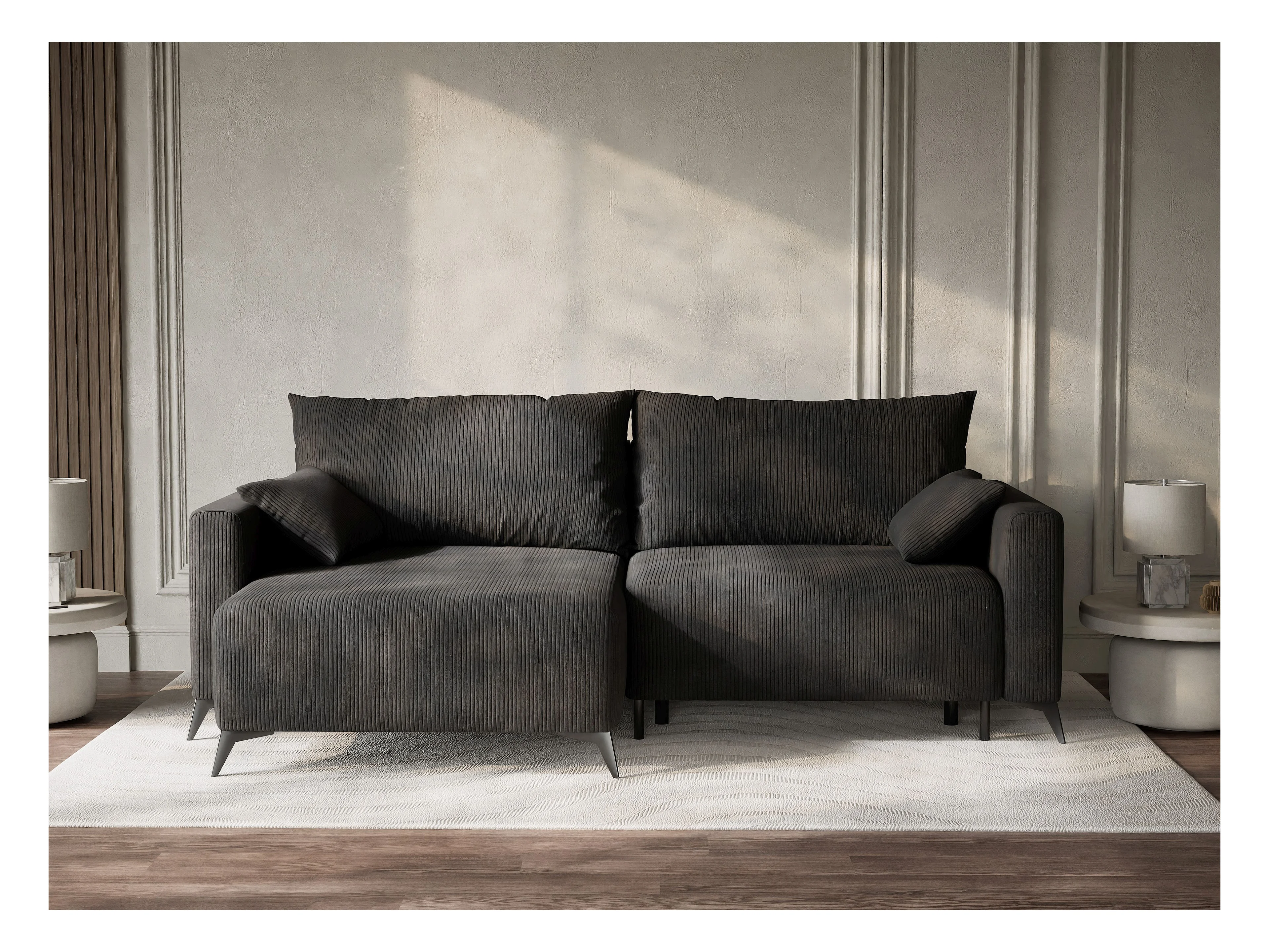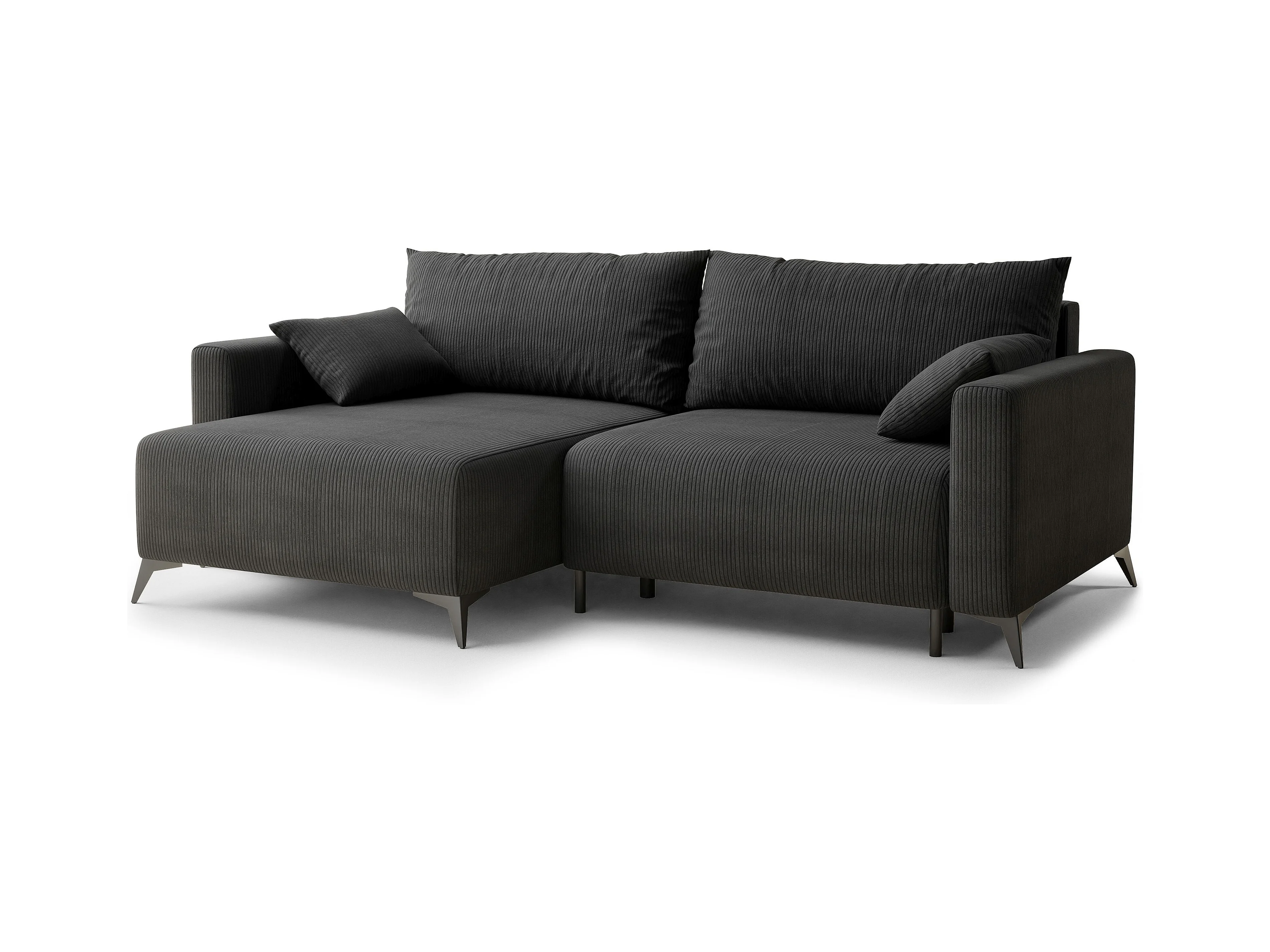 Canapé d'angle gauche avec fonction lit en velours graphite LEON