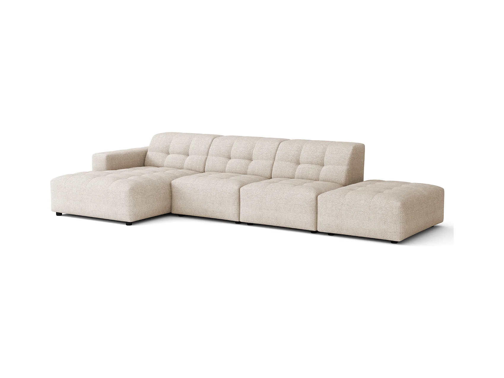 Canapé d’angle gauche avec pouf Bergamo B– tissu Raven 24 crème, 341×166×70 cm