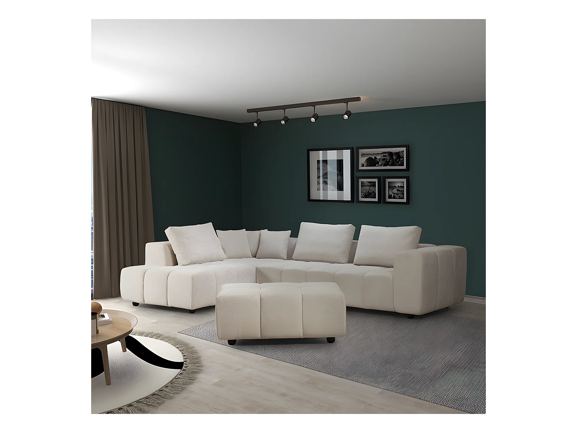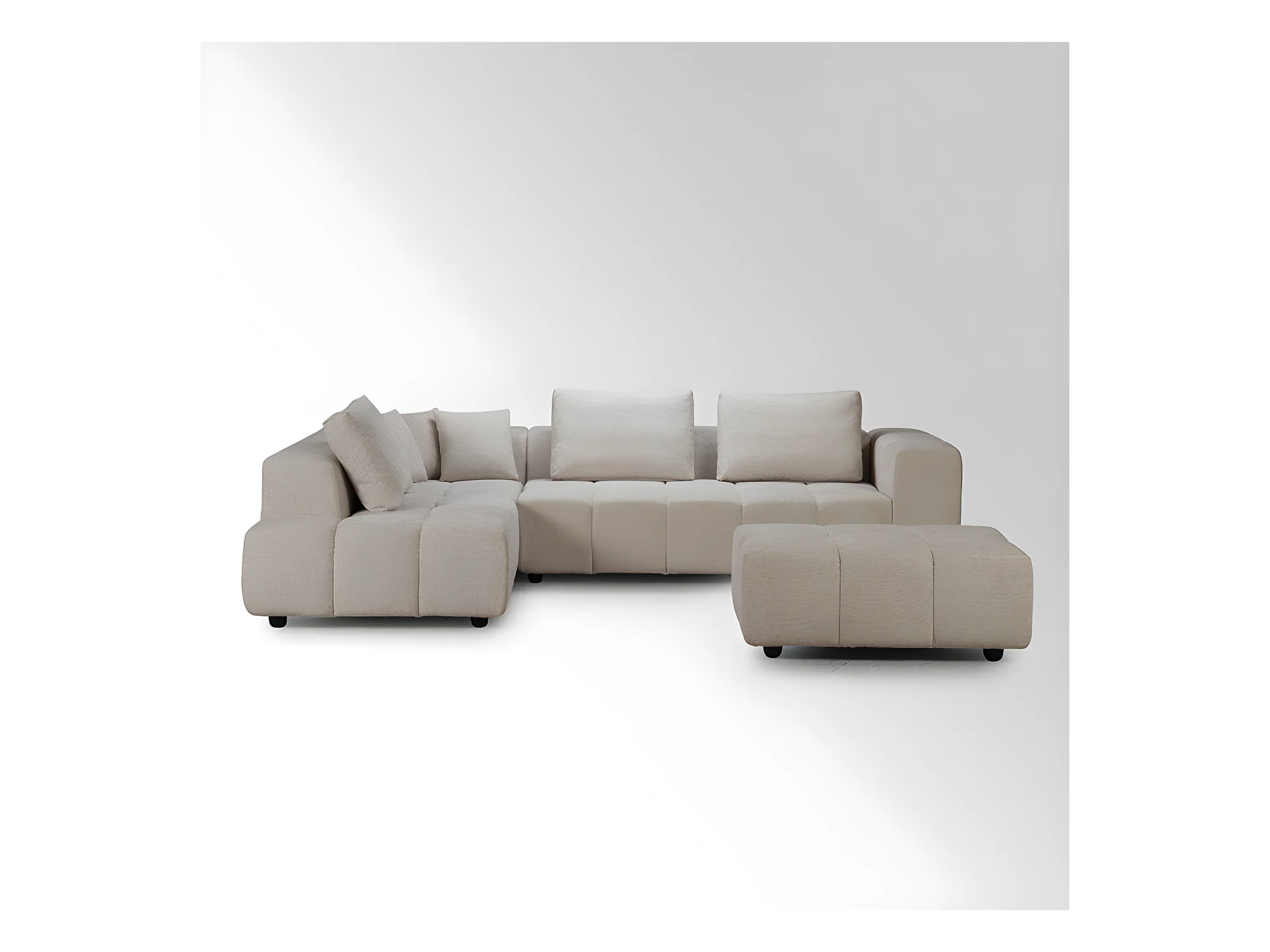 Canapé d'angle gauche avec pouf Champion beige