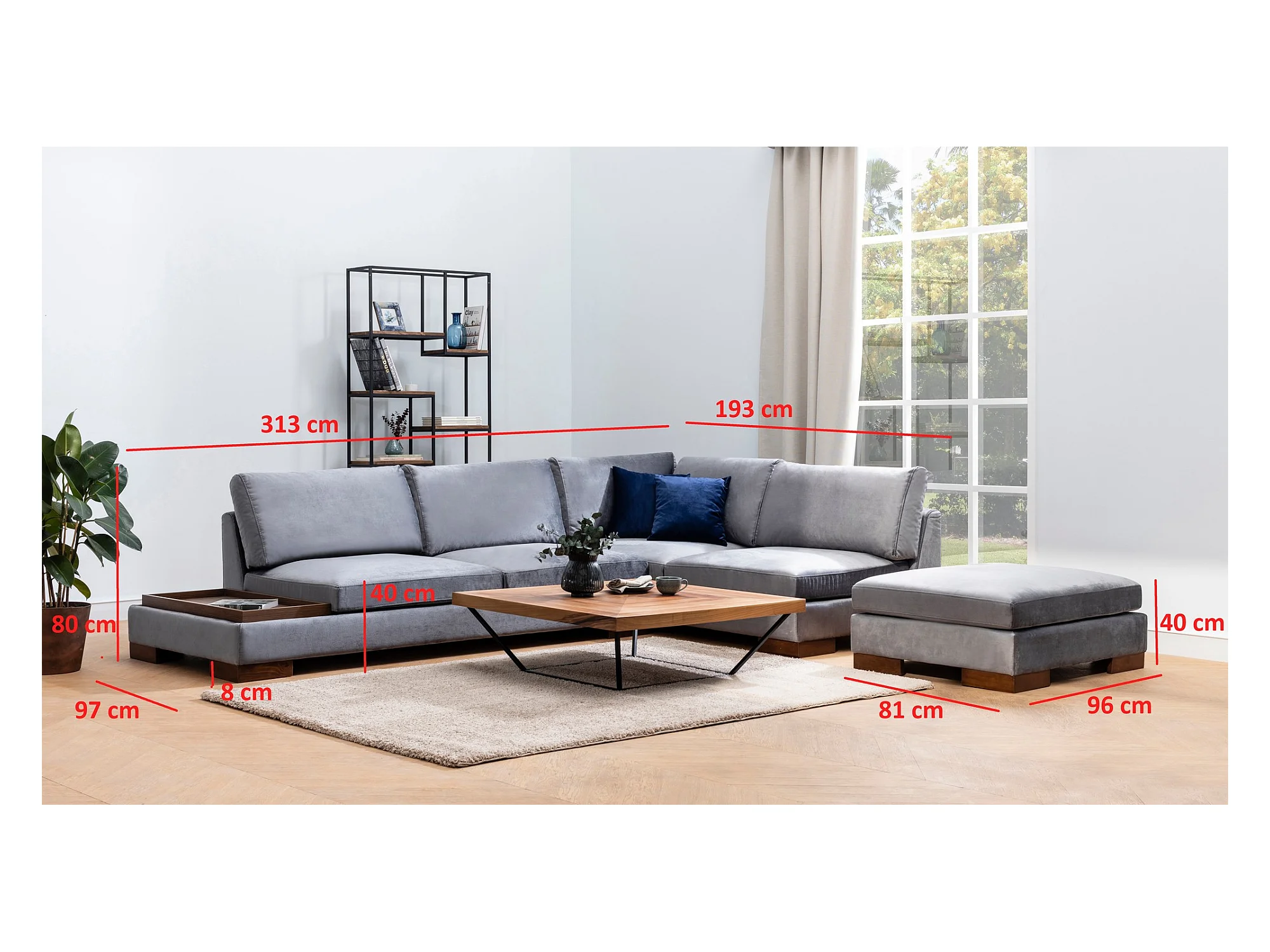 Canapé d'angle gauche avec pouf Perissa Velours Gris foncé