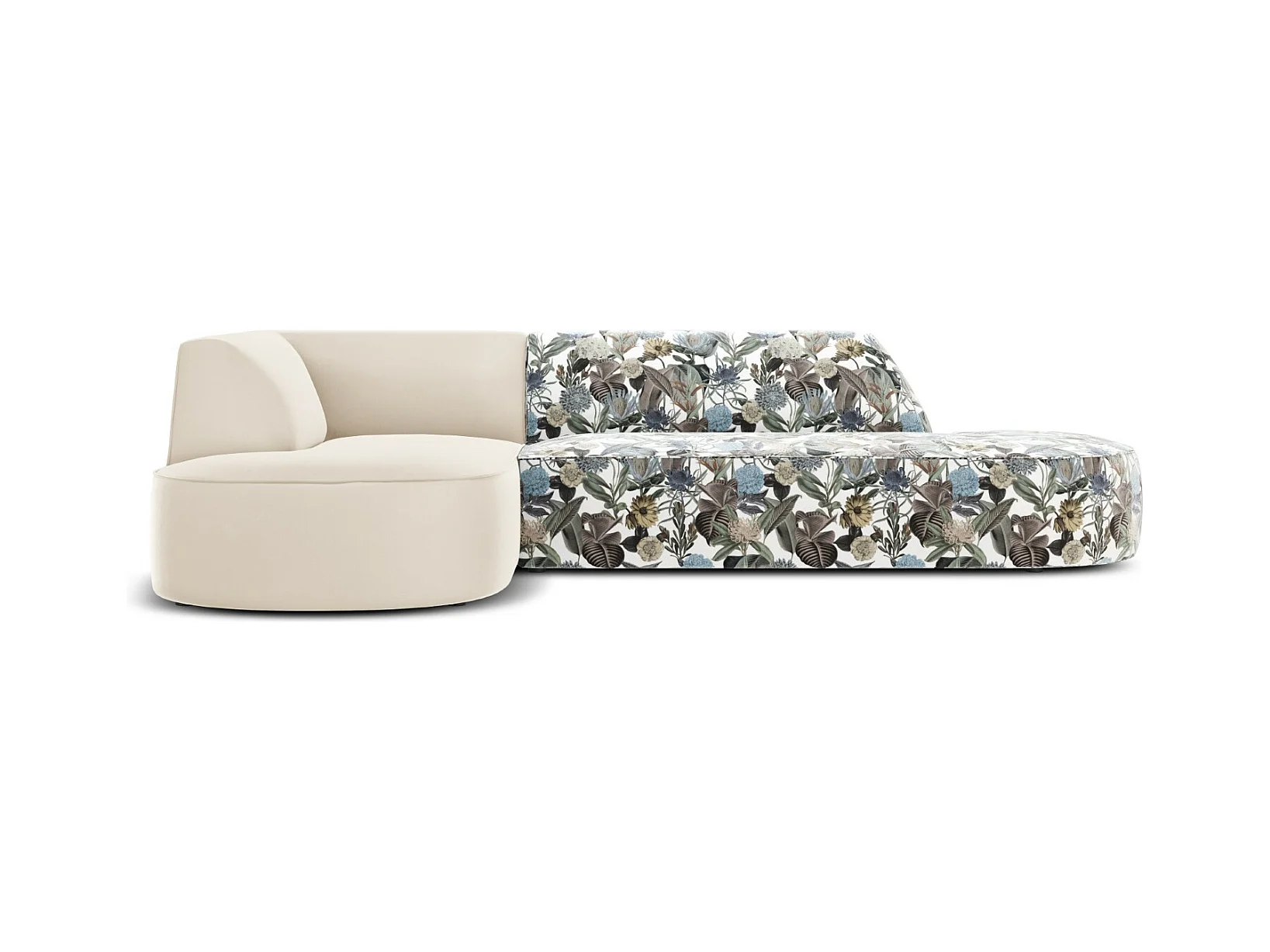 CXL by Christian Lacroix - Canapé d'angle gauche "Charles" 4 places en velours motif de jardin bleu clair,beige - 273x180x69cm