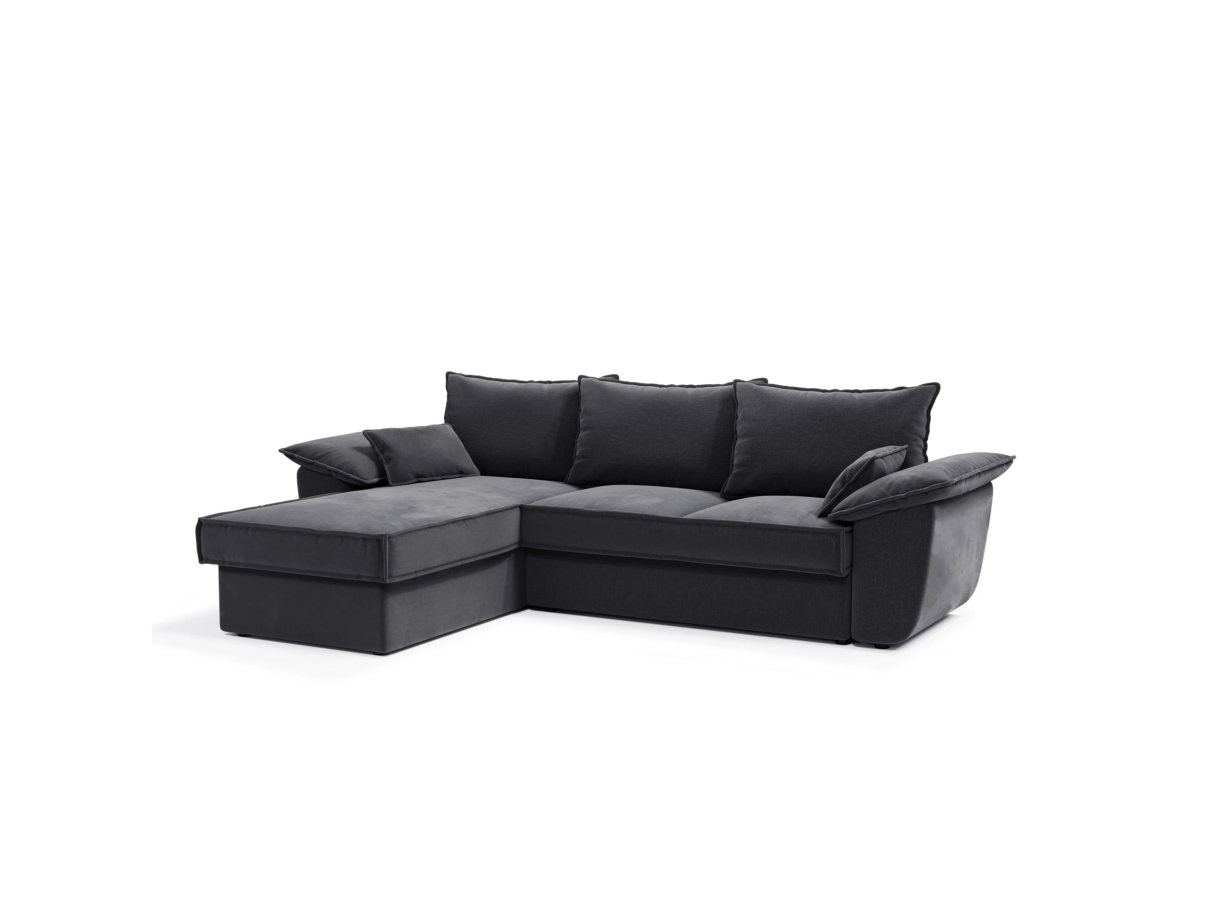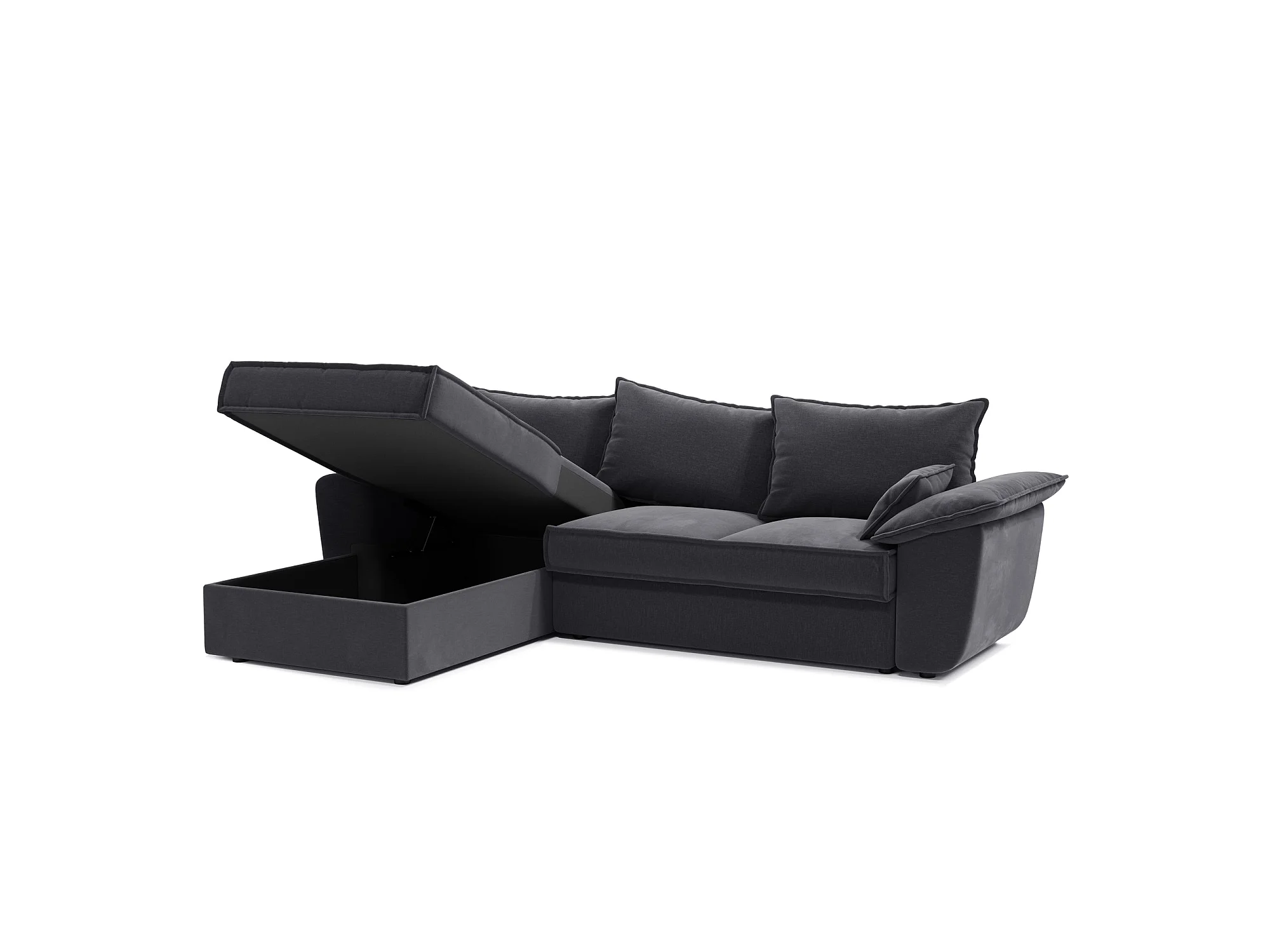 Canapé d'angle gauche coffre convertible velours gris graphite 257cm SASHA
